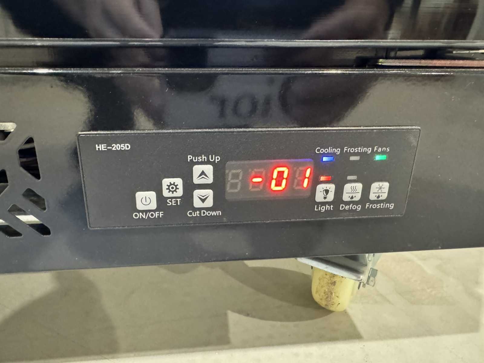 Voorzien van glazen deur; verlichting; zwenkwielen; ongebruikt Merk: VTC Type: HR1 Bouwjaar: 2024 Digitale uitlezing: true Temperatuurbereik max.: -18°c Mobiel: true Temperatuurbereik min.: -22°c Aansluiting: 230V Capaciteit.: 380l Totale afmeting L: 78cm Totale afmeting Breedte: 62cm Totale afmeting Hoogte: 205cm