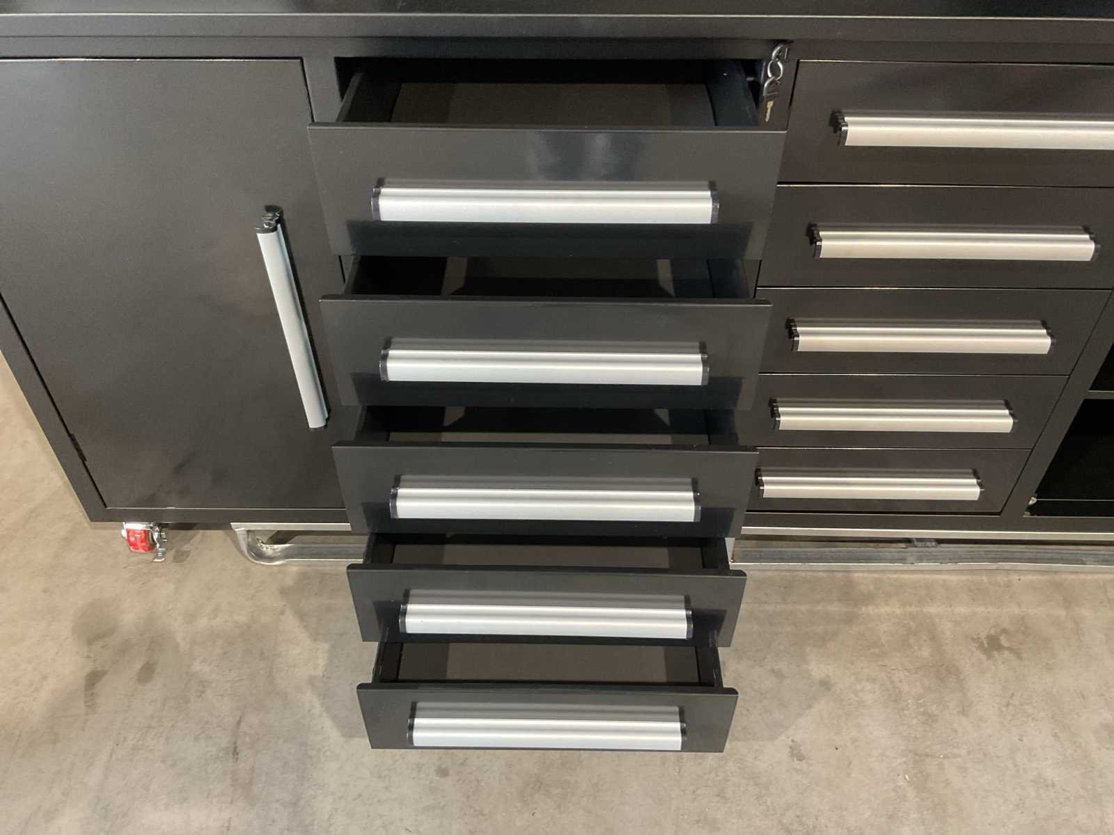 Voorzien van Gepoedercoat staal; 18 lades; 4 staande kasten; Sleutels voor afsluiten; Ongebruikt Merk: STAHLWORKS Type: 7-18-01C Zwart / zilver handvat Bouwjaar: 2025