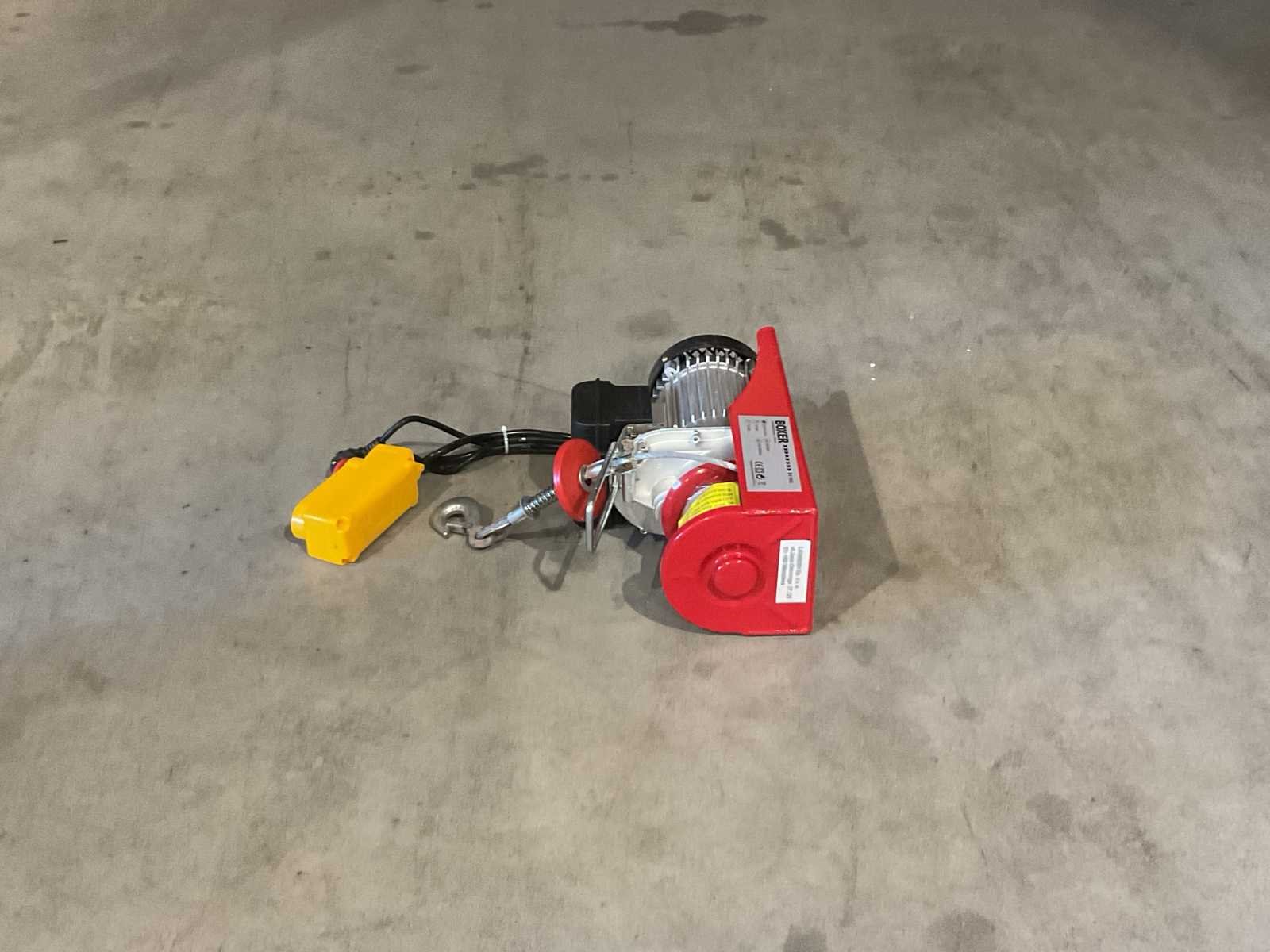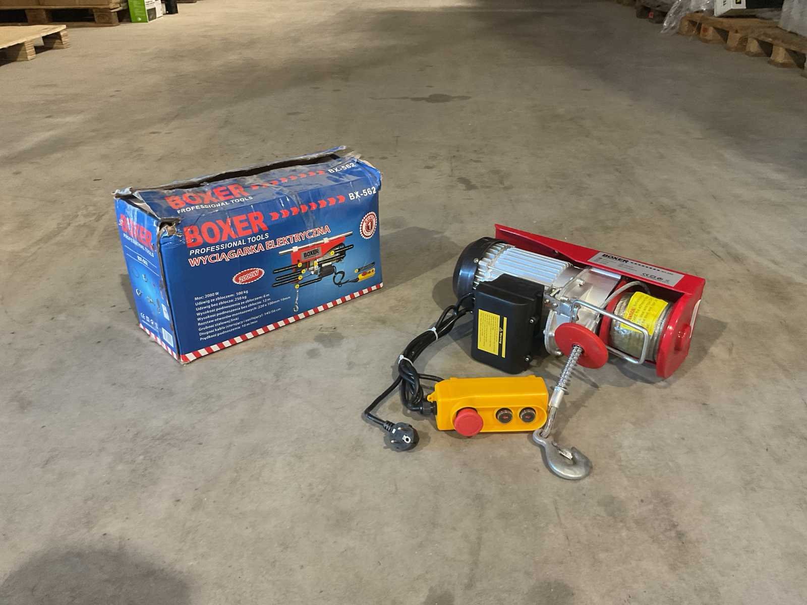 Voorzien van katrol; Motorvermogen: 2000 W; Maximale Laadcapaciteit (enkel / dubbel-kabel): ca. 250kg / 500kg; Maximale Hefhoogte (250kg / 500kg): 12m / 6m; Gem. hijssnelheid: 10 m/min;Aansluiting: 230V; 1 x elektrische lier; 1 x katrol met haak; 1 x montagebeugels; 1 x Bekabelde afstandbediening 1,45; Ongebruikt in doos (Afmeting transport verpakking 430x190x245 mm lxbxh, gewicht 16.44 kg) Merk: Boxer Type: BX-562 500kg Bouwjaar: 2025 Capaciteit.: 500kg Hijshoogte: 12m Afstandsbediening: true Aansluiting: 220V Totale afmeting L: 430mm Totale afmeting Breedte: 190mm Totale afmeting Hoogte: 245mm Eigen gewicht: 16.44kg