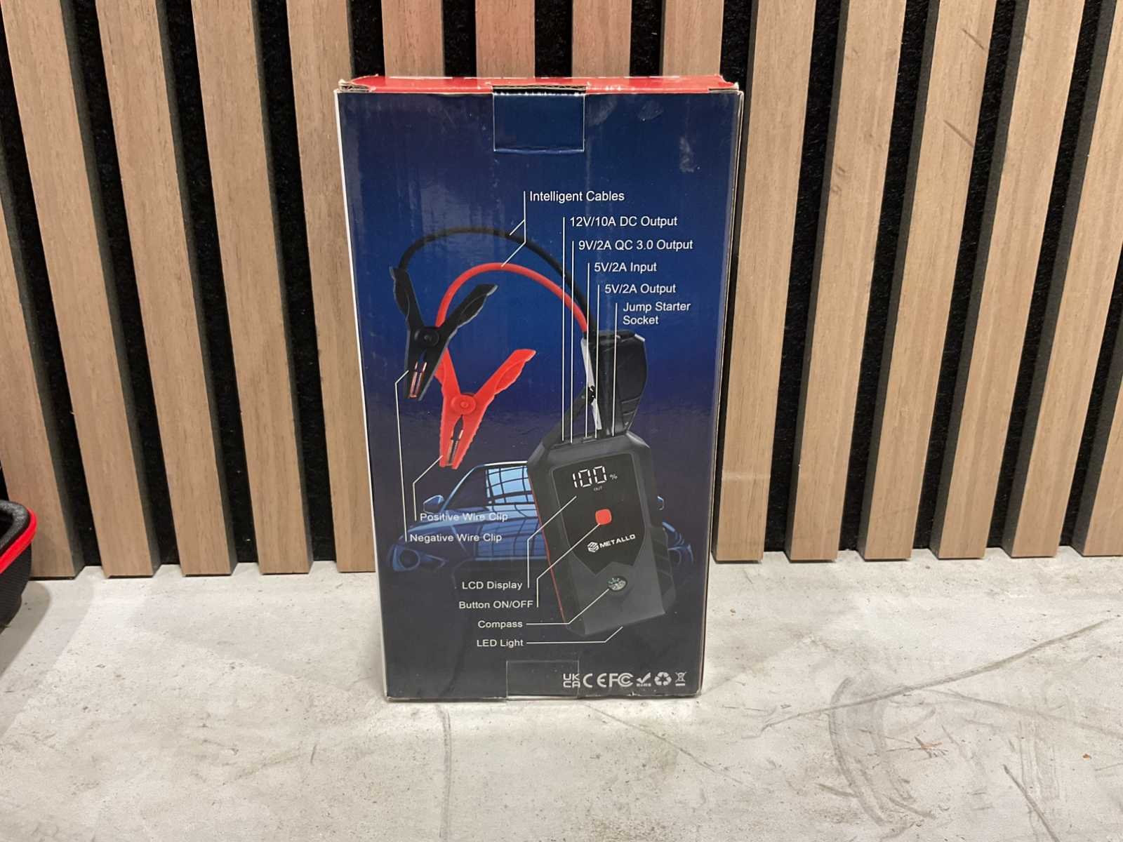 Maximale vermogen: 3000A; Batterij capiciteit: 24000mAh (88.8Wh); Laadtijd: 6 uur; Temperatuur 20-60 graden celcius; 12V/10A DC output; 9V/2A QC 3.0 output; 5V/2A input; 5V/2Aoutput; Positive wire clip; Negative wire clip; LCD Display; Aan/uit knop; Compass; LED licht Merk: Metallo Type: 3000A Bouwjaar: 2024