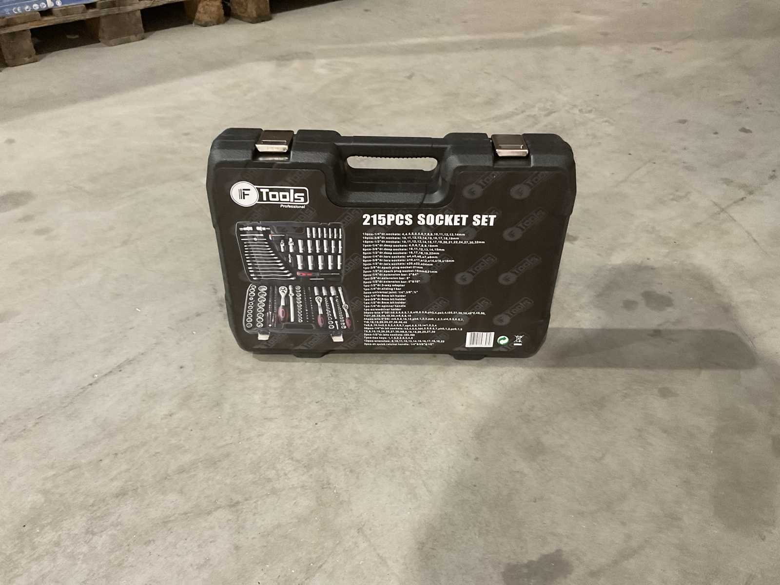 Voorzien van 1/4-3/8-1/2" Doppenset; 1/4-3/8-1/2" Diepen doppenset;1/4-3/8-1/2" Torx doppenset; Bougies sleutels; Ratels; Verlengstukken; Adapters; Koppestukken; 1/4-3/8-1/2" Bitjes set; Inbussleutels; Steek/Ringsleutels; Ongebruikt in doos (Transport afmeting 470 x 100 x 350,Gewicht 10 KG) Merk: F Tools Professional Met koffer: true Delig: 215 Type: 215PCS Socket Set Bouwjaar: 2025
