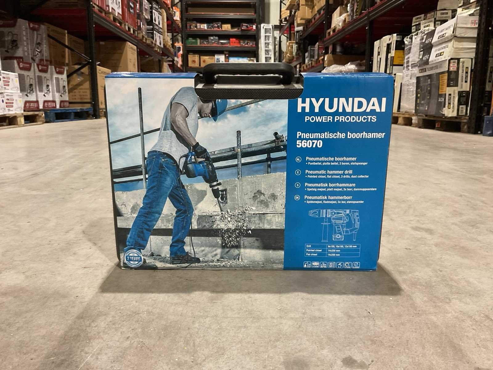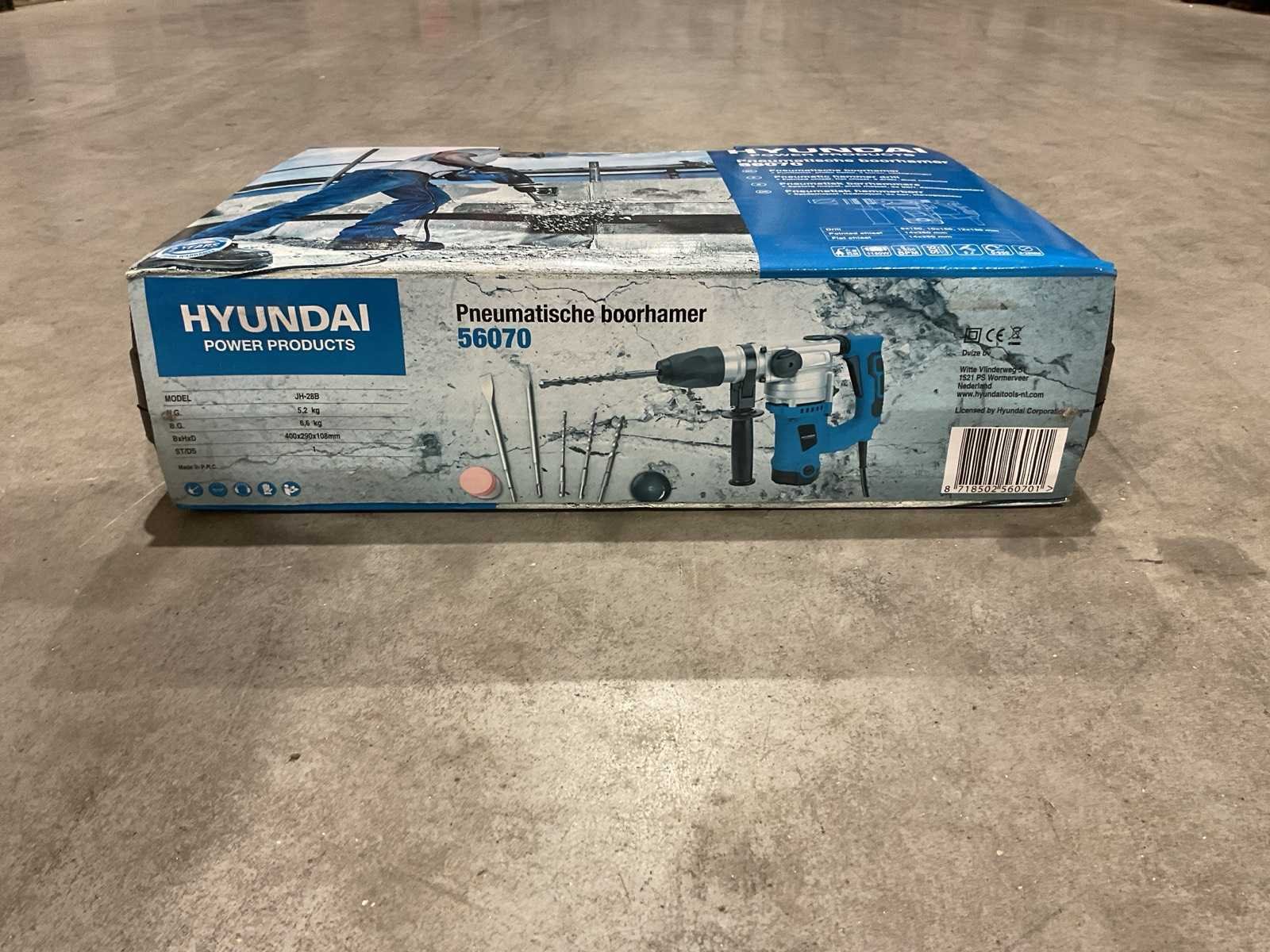 Transport 400x290x108mm 6,6kg Netspanning 220-240 V Frequentie 50 Hz Vermogen 1.150 W Toerental 950 min-1 Slagen per minuut 3.800 min-1 Boorcapaciteit in beton 28 mm Boorcapaciteit in staal 13 mm Boorcapaciteit in hout 40 mm Slagkracht 5 Joule Beitel-houder SDS-MAX Gewicht zonder boor/beitel 4,4 kg Geluidsdrukniveau (LpA) 93 dB(A) Geluidsvermogens-niveau (LwA) 104 dB(A) Inhoud verpakking: Hyundai Boorhamer 1.150 W - diepteaanslag - hulphandgreep - 3 x SDS boren (Ø8, 10 & 12 x 150 mm) - 1 x SDS puntbeitel: 250 mm - 1 x SDS platte beitel: 22 x 250 mm - 1 x Steeksleutel - 1 x Potje vet - stofvanger - gebruiksaanwijzing - veiligheidsvoorschriften - garantie en service - BMC-opbergkoffer Merk: Hyundai Type: JH-28B Bouwjaar: 2025 Met koffer: true