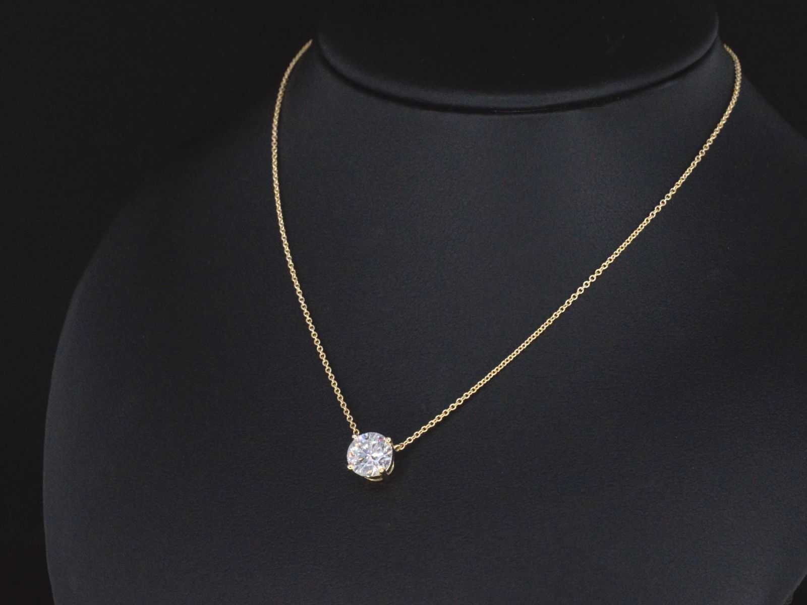 Samenvatting van gegevens Gouden halsketting met echte briljanten van 1.00 carat Edelsteen: Moissaniet; Aantal: 1 stuk; Slijpvorm: Briljant geslepen; Gewicht (carat): 1.00 carat; Kleur: D; Zuiverheid: Zuiver; Juweel: Hanger; Gewicht: 2 gram; Afmetingen/lengte: 42 cm; Materiaal: 18K goud (750); Conditie: Nieuw; Verpakking: Luxe sieradendoos; Toelichting: De kwaliteit is overgenomen van het rapport behorend bij item. De waardebepaling is een beoordeling van een gecertificeerde diamantair, gebaseerd op consumentenprijzen.; Extra informatie: Het gemeten gewicht van de edelstenen is volgens diamant maten; Consumentenprijs: € 4.200,- Within 14 days Materiaal: Goud Edelsteen: Moissaniet Kleur edelsteen: D Slijpvorm edelsteen: Briljant geslepen Zuiverheidsgraad edelsteen: Zuiver Totaal gewicht: 2g Keurmerk: 750