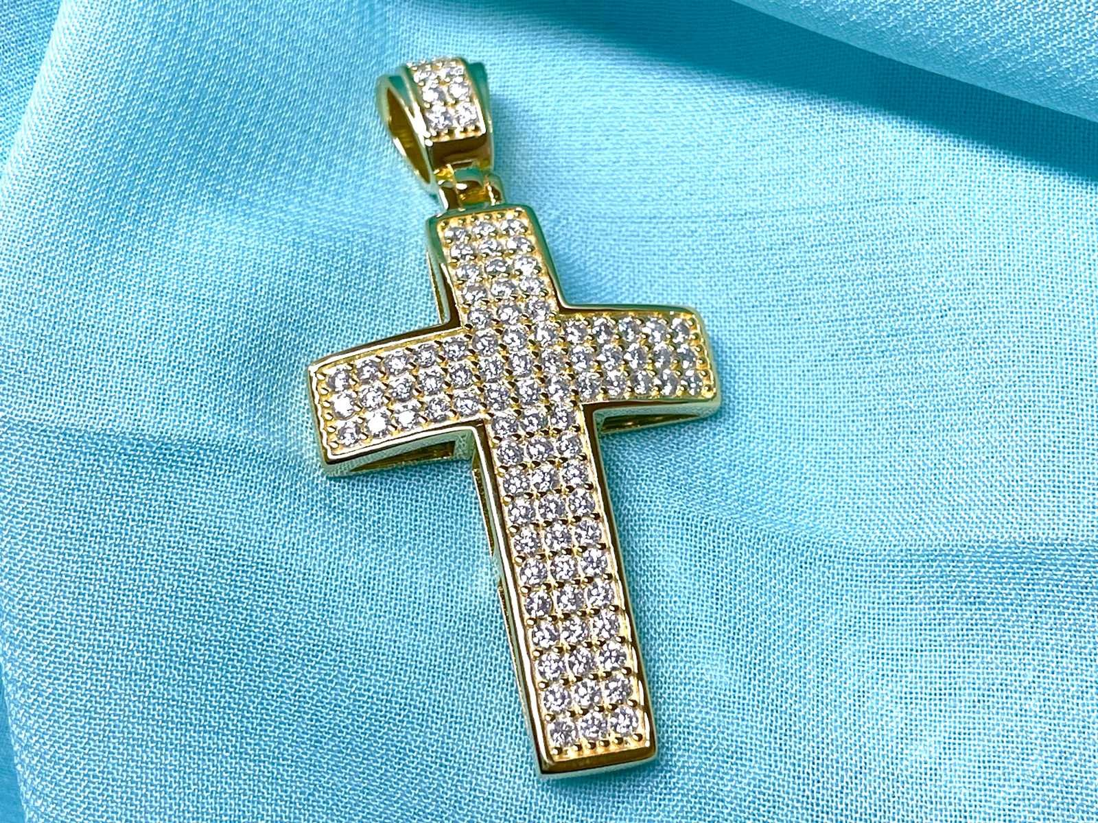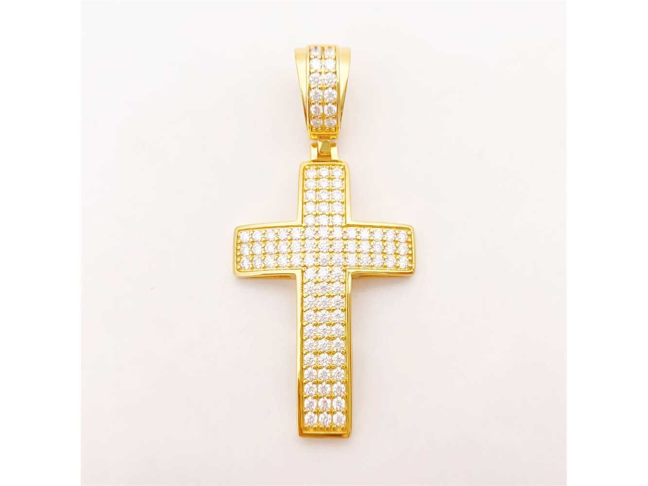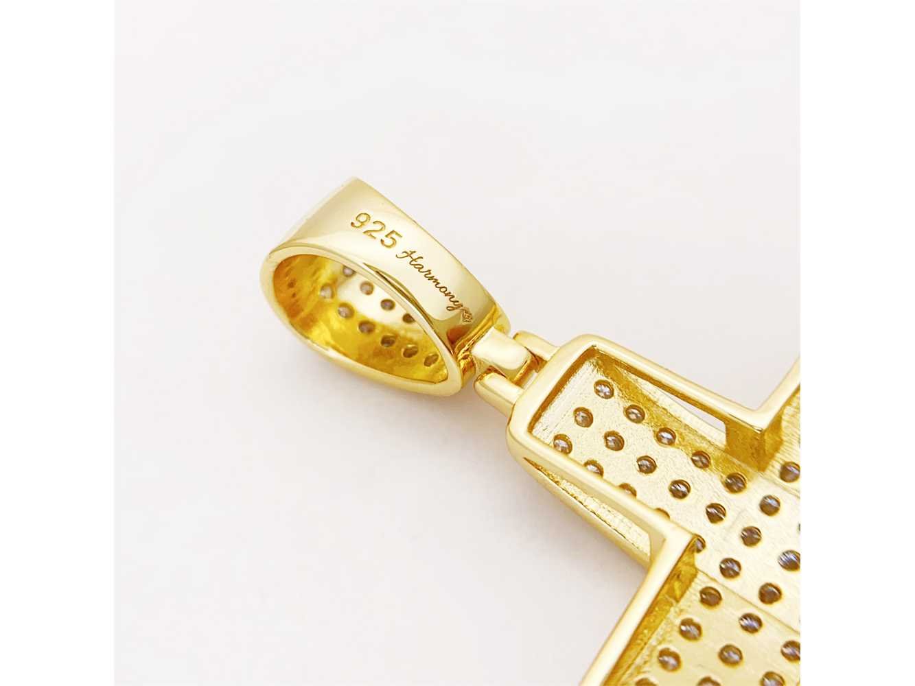 Samenvatting van gegevens Kruishanger met gezette briljanten van hoge kwaliteit Edelsteen: Moissaniet; Aantal: 97 stuks; Slijpvorm: Briljant geslepen; Gewicht (carat): 2.35 carat; Kleur: F; Zuiverheid: VVS; Slijpkwaliteit: Very good; Juweel: Hanger; Merk: Harmony; Gewicht: 7 gram; Afmetingen/lengte: 5.2 x 2.7 cm; Materiaal: Vermeil hoog gehalte sterling zilver (925); Conditie: Nieuw; Verpakking: Sieradendoos of fluwelen etui; Toelichting: De kwaliteit is overgenomen van het rapport behorend bij item. De waardebepaling is een beoordeling van een gecertificeerde diamantair, gebaseerd op consumentenprijzen.; Extra informatie: Het gemeten gewicht van de edelstenen is volgens diamant maten; Consumentenprijs: € 1.200,- Within 14 days Materiaal: Zilver Edelsteen: Moissaniet Kleur edelsteen: F Slijpvorm edelsteen: Briljant geslepen Slijpkwaliteit edelsteen: Very good Zuiverheidsgraad edelsteen: VVS Totaal gewicht: 7g Keurmerk: 925