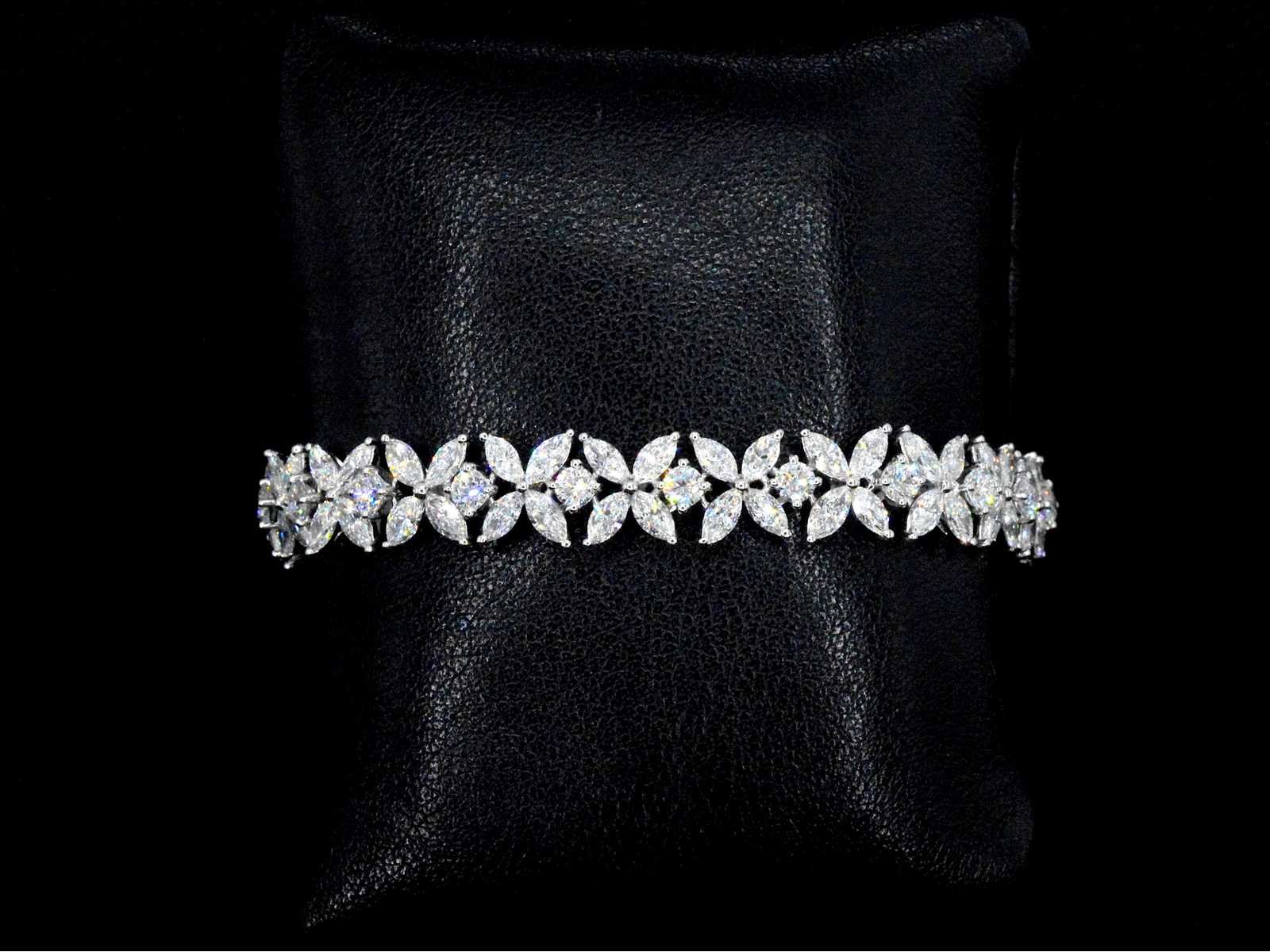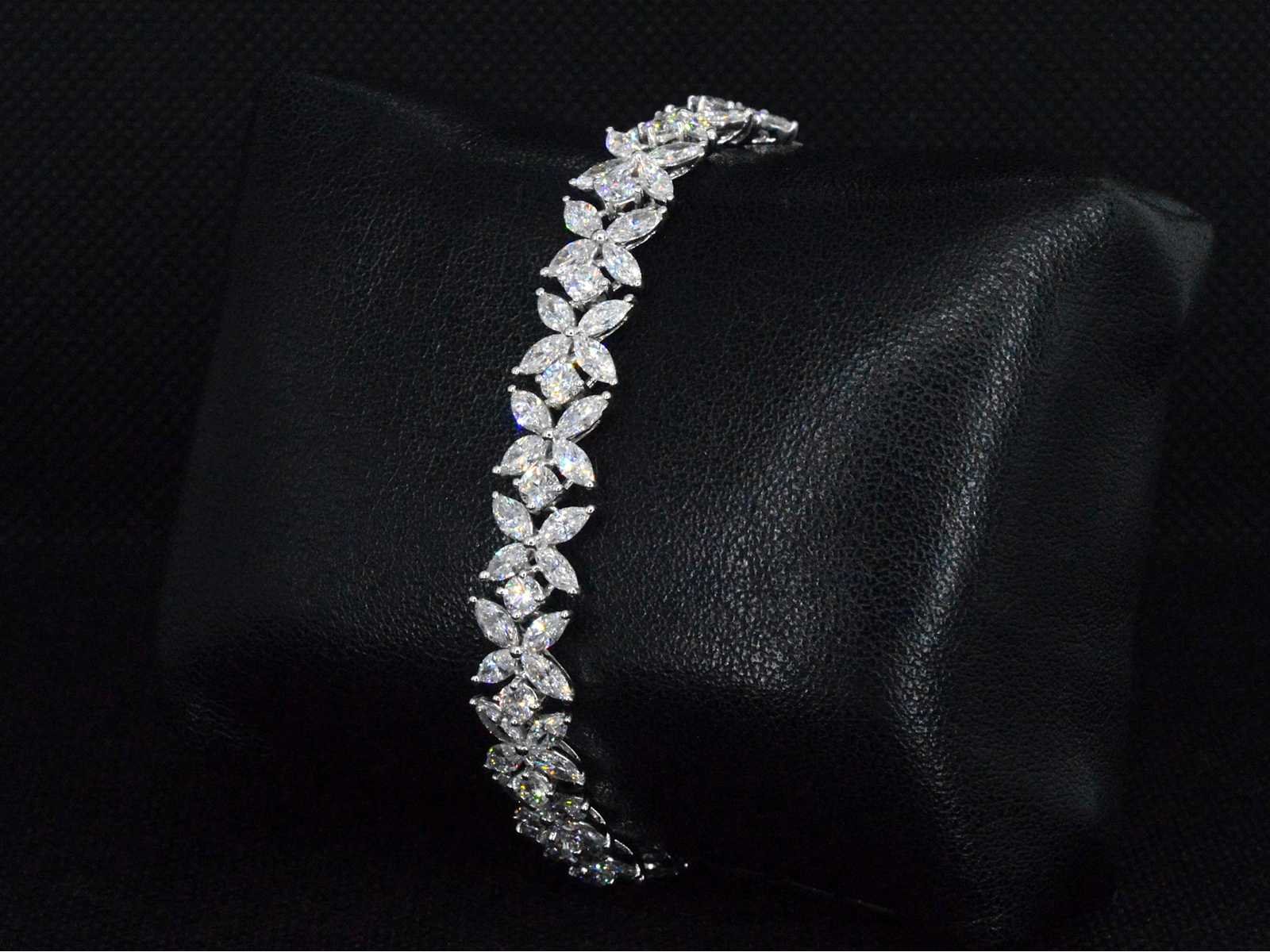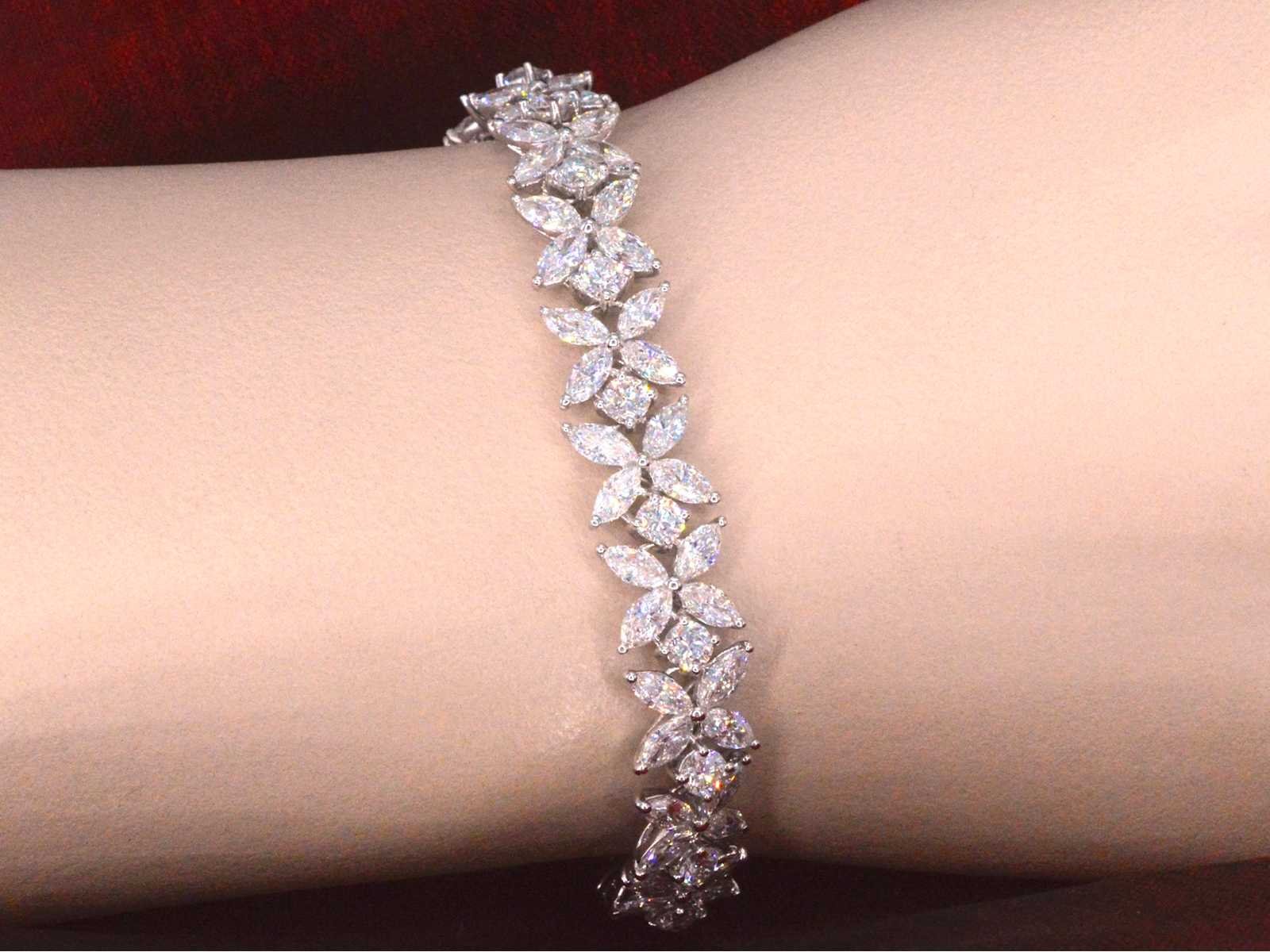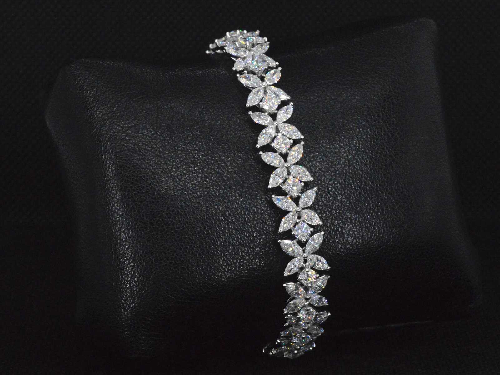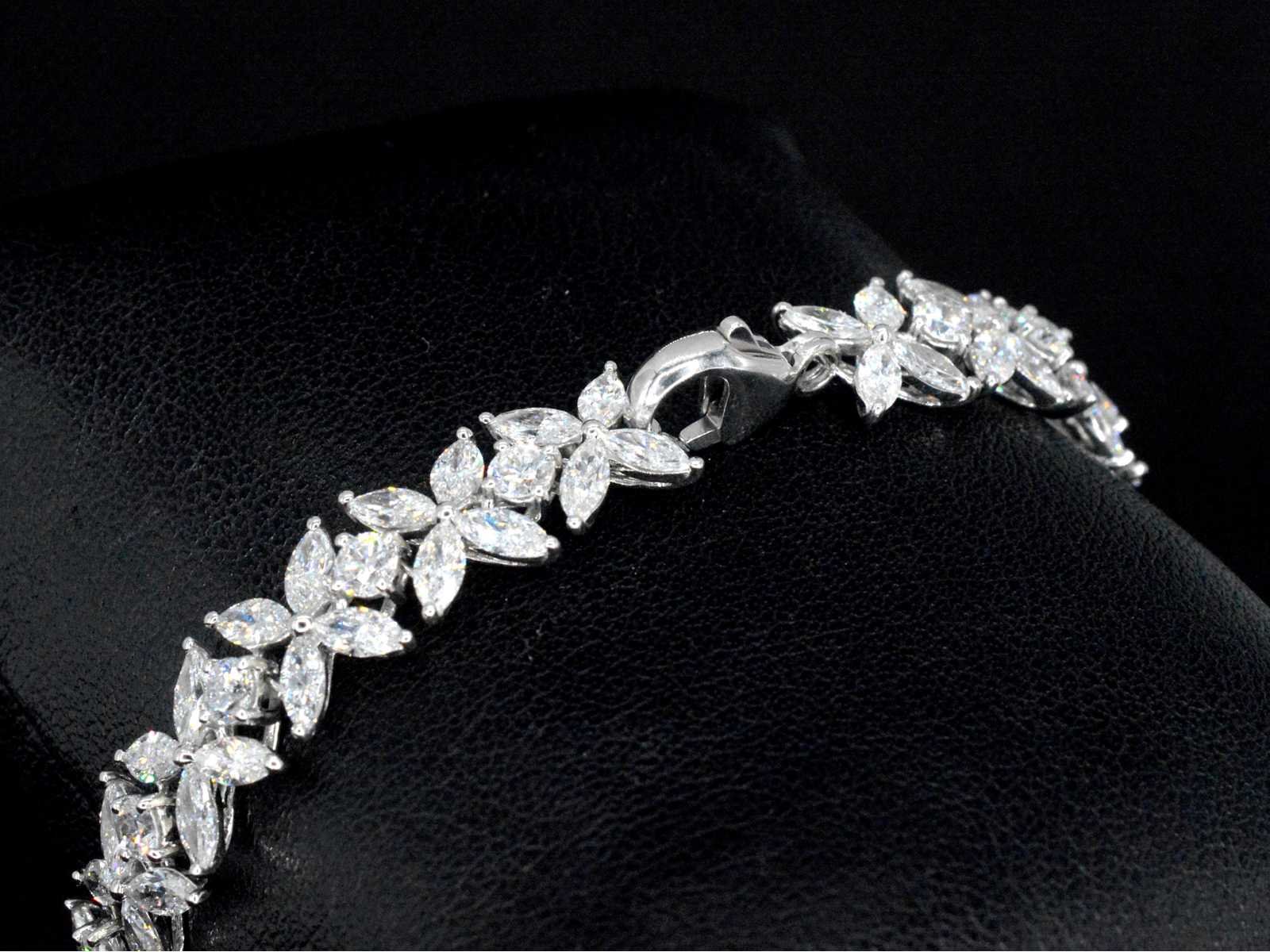 Samenvatting van gegevens Witgouden exclusieve armband met 12.08 carat aan marquise en briljant geslepen diamanten Diamant: Eco (lab-grown); Aantal: 104 stuks; Slijpvorm: Marquise en Briljant geslepen; Gewicht (carat): 12.08 carat; Kleur: E-F; Zuiverheid: VVS; Juweel: Armband; Gewicht: 17.2 gram; Afmetingen/lengte: 18.5 cm; Materiaal: 18K goud (750); Conditie: Nieuw; Verpakking: Luxe sieradendoos; Toelichting: De kwaliteit is overgenomen van het rapport behorend bij item. De waardebepaling is een beoordeling van een gecertificeerde diamantair, gebaseerd op consumentenprijzen.; Consumentenprijs: € 48600,- Within 14 days Materiaal: Goud Voornaamste diamant: Eco (lab-grown) Kleur diamant: E-F Gewicht diamant: 12.08ct Slijpvorm diamant: Marquise en Briljant geslepen Zuiverheidsgraad diamant: VVS Totaal gewicht: 17.2g Keurmerk: 750