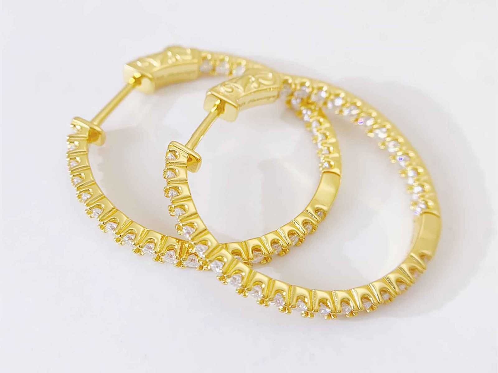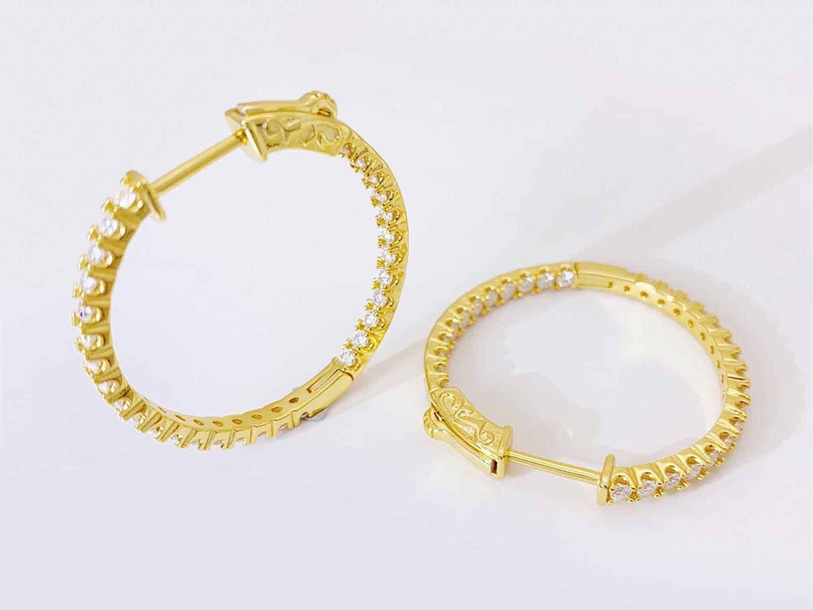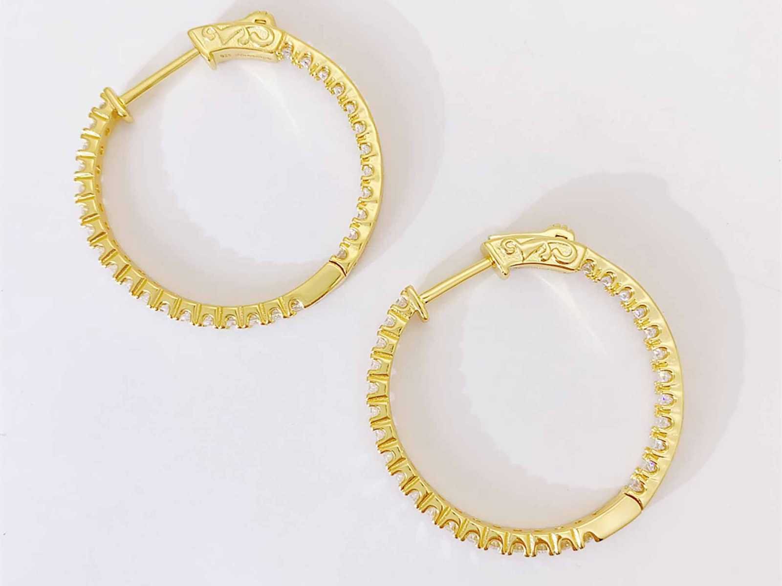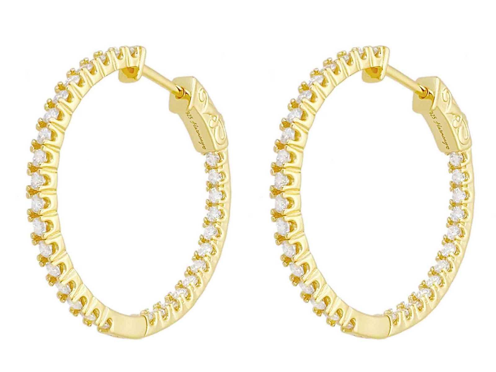 Samenvatting van gegevens Gele exclusieve creolen volledig gezet met briljanten Edelsteen: Moissaniet; Aantal: 60 stuks; Slijpvorm: Briljant geslepen; Gewicht (carat): 1.80 carat; Kleur: D; Zuiverheid: VVS; Slijpkwaliteit: Zeer mooi; Juweel: Oorbellen; Merk: Harmony; Gewicht: 8 gram; Afmetingen/lengte: 3.4 cm; Materiaal: Vermeil hoog gehalte sterling zilver (925); Conditie: Nieuw; Verpakking: Sieradendoos of fluwelen etui; Toelichting: De kwaliteit is overgenomen van het rapport behorend bij item. De waardebepaling is een beoordeling van een gecertificeerde diamantair, gebaseerd op consumentenprijzen..; Extra informatie: Het gemeten gewicht van de edelstenen is volgens diamant maten; Consumentenprijs: € 1.000,- Within 14 days Materiaal: Zilver Edelsteen: Moissaniet Kleur edelsteen: D Slijpvorm edelsteen: Briljant geslepen Slijpkwaliteit edelsteen: Zeer mooi Zuiverheidsgraad edelsteen: VVS Totaal gewicht: 8g Keurmerk: 925