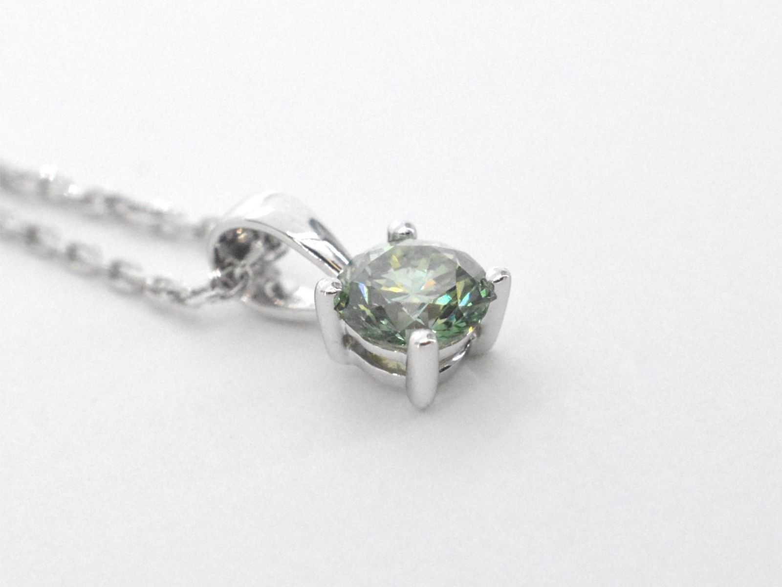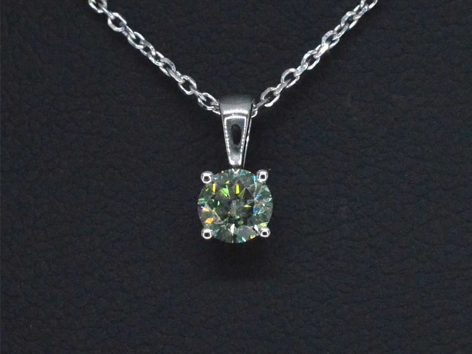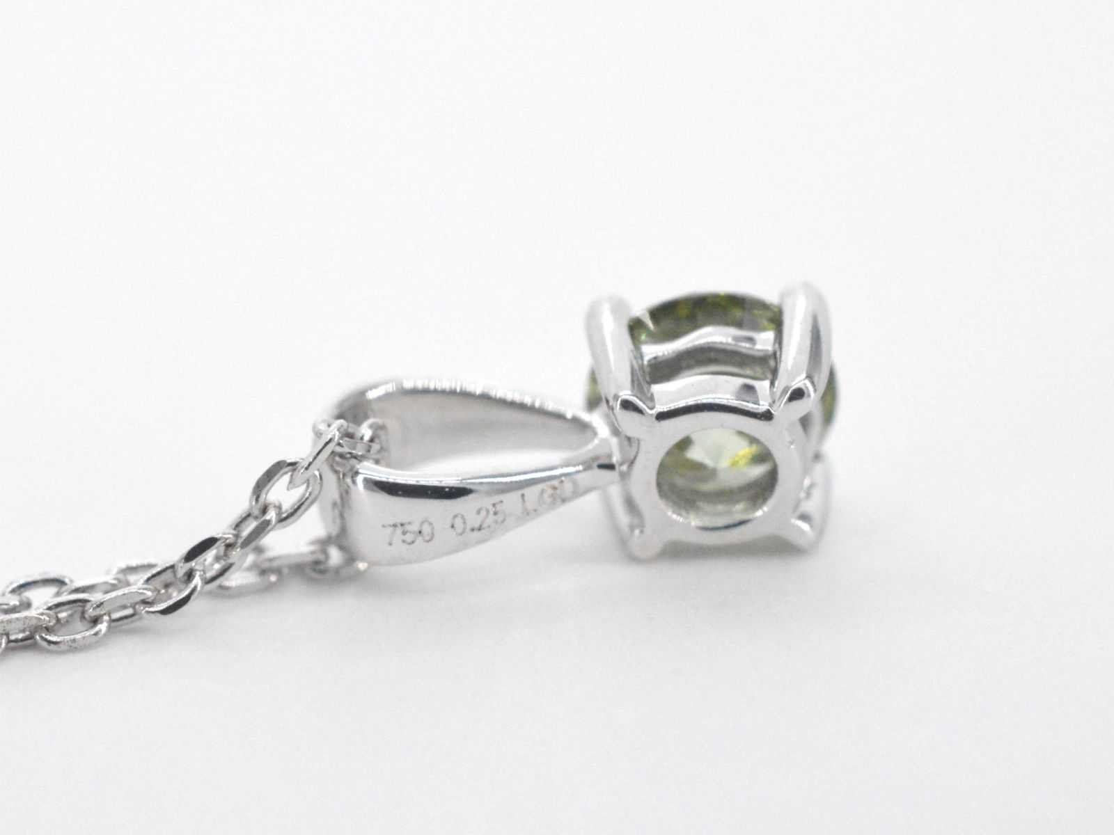 Samenvatting van gegevens Witgouden halsketting met een groene diamant 0.25 carat Diamant: Eco (lab-grown); Aantal: 1 stuk; Slijpvorm: Briljant geslepen; Gewicht (carat): 0.25 carat; Kleur: Fancy groen; Zuiverheid: VS; Certificaat: IGI; Juweel: Halsketting; Gewicht: 1.6 gram; Afmetingen/lengte: 45.5 cm; Materiaal: 18K goud (750); Conditie: Nieuw; Verpakking: Luxe sieradendoos; Toelichting: De kwaliteit is overgenomen van het rapport behorend bij item. De waardebepaling is een beoordeling van een gecertificeerde diamantair, gebaseerd op consumentenprijzen.; Consumentenprijs: € 2.625,- Within 14 days Materiaal: Goud Voornaamste diamant: Eco (lab-grown) Kleur diamant: Fancy groen Gewicht diamant: 0.25ct Slijpvorm diamant: Briljant geslepen Zuiverheidsgraad diamant: VS Totaal gewicht: 1.6g Keurmerk: 750 Certificaat: IGI