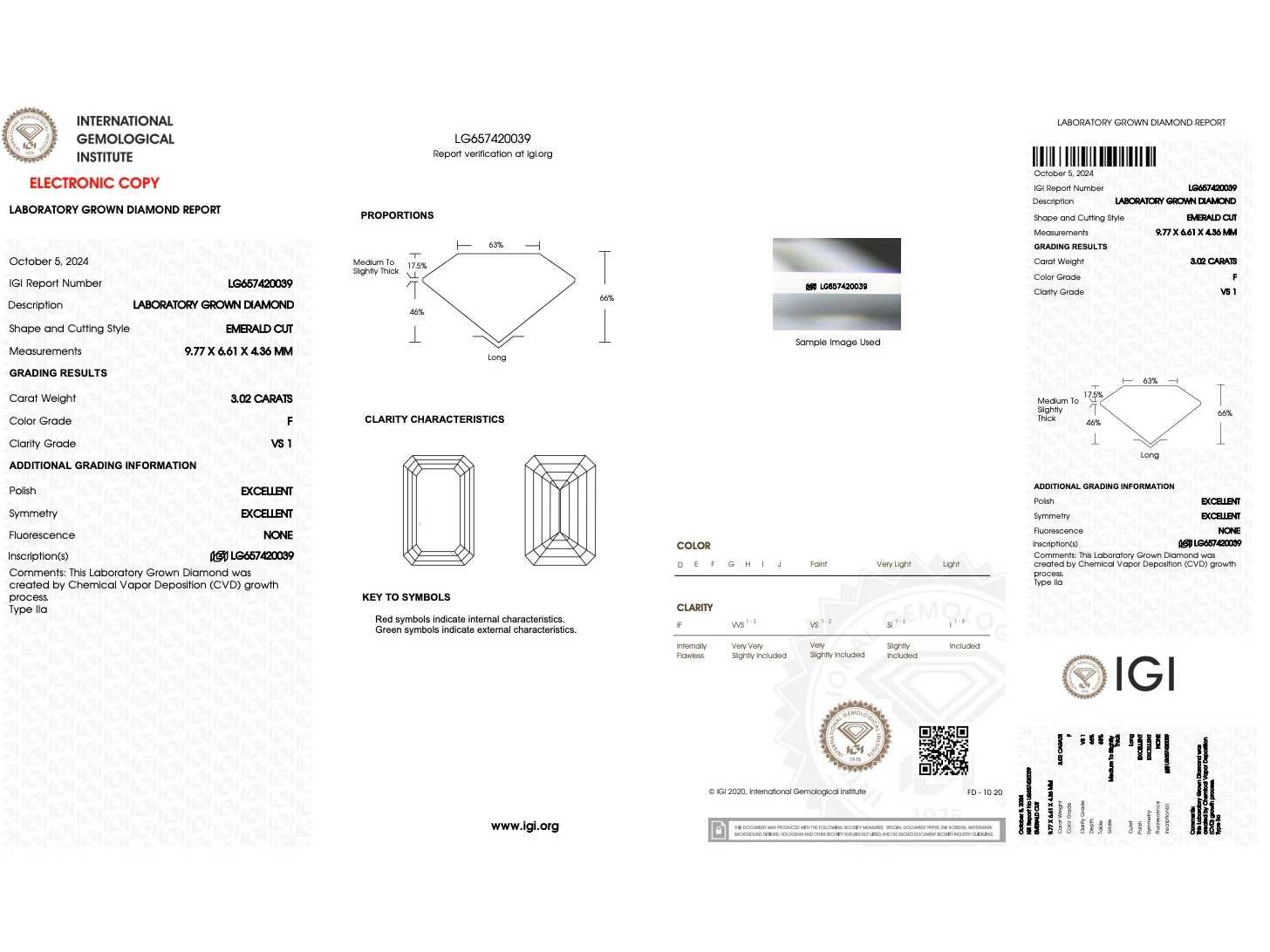 Samenvatting van gegevens Diamant - 3.02 carat Emerald geslepen diamant (gecertificeerd) Diamant: ECO (lab-grown); Aantal: 1 stuk; Slijpvorm: Emerald geslepen; Gewicht (carat): 3.02 carat; Kleur: F; Zuiverheid: VS1; Slijpkwaliteit: Excellent; Certificaat: IGI; Certificaat nummer: LG657420039; Conditie: Nieuw; Verpakking: Luxe sieradendoos; Toelichting: De kwaliteit is overgenomen van het rapport behorend bij item. De waardebepaling is een beoordeling van een gecertificeerde diamantair, gebaseerd op consumentenprijzen.; Consumentenprijs: € 10.125,- Within 14 days Voornaamste diamant: ECO (lab-grown) Kleur diamant: F Gewicht diamant: 3.02ct Slijpvorm diamant: Emerald geslepen Slijpkwaliteit diamant: Excellent Zuiverheidsgraad diamant: VS1 Certificaat: IGI
