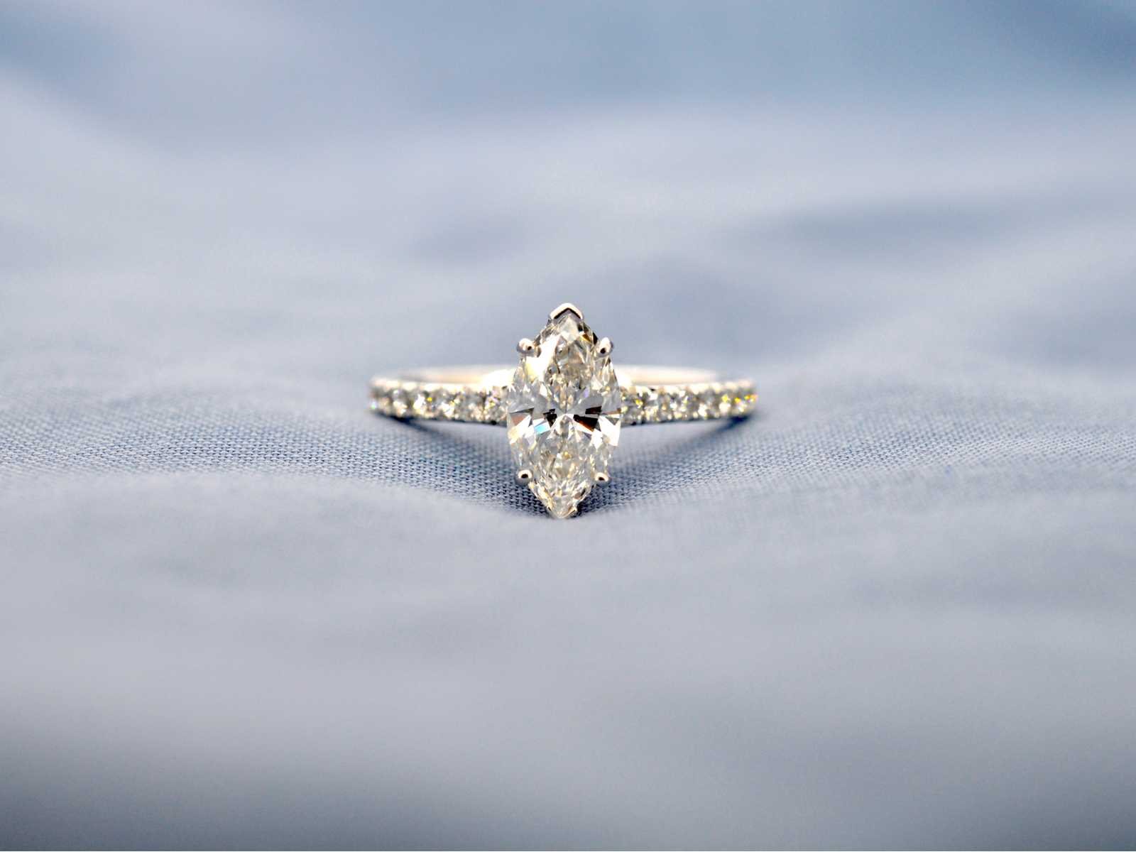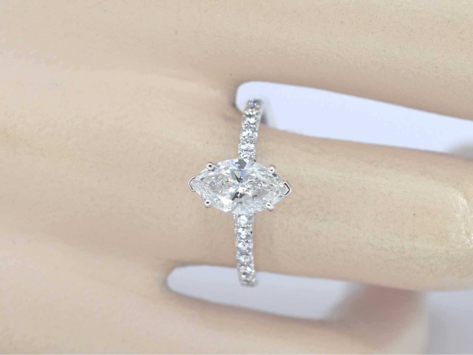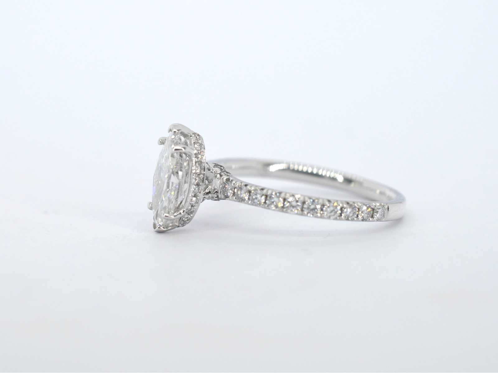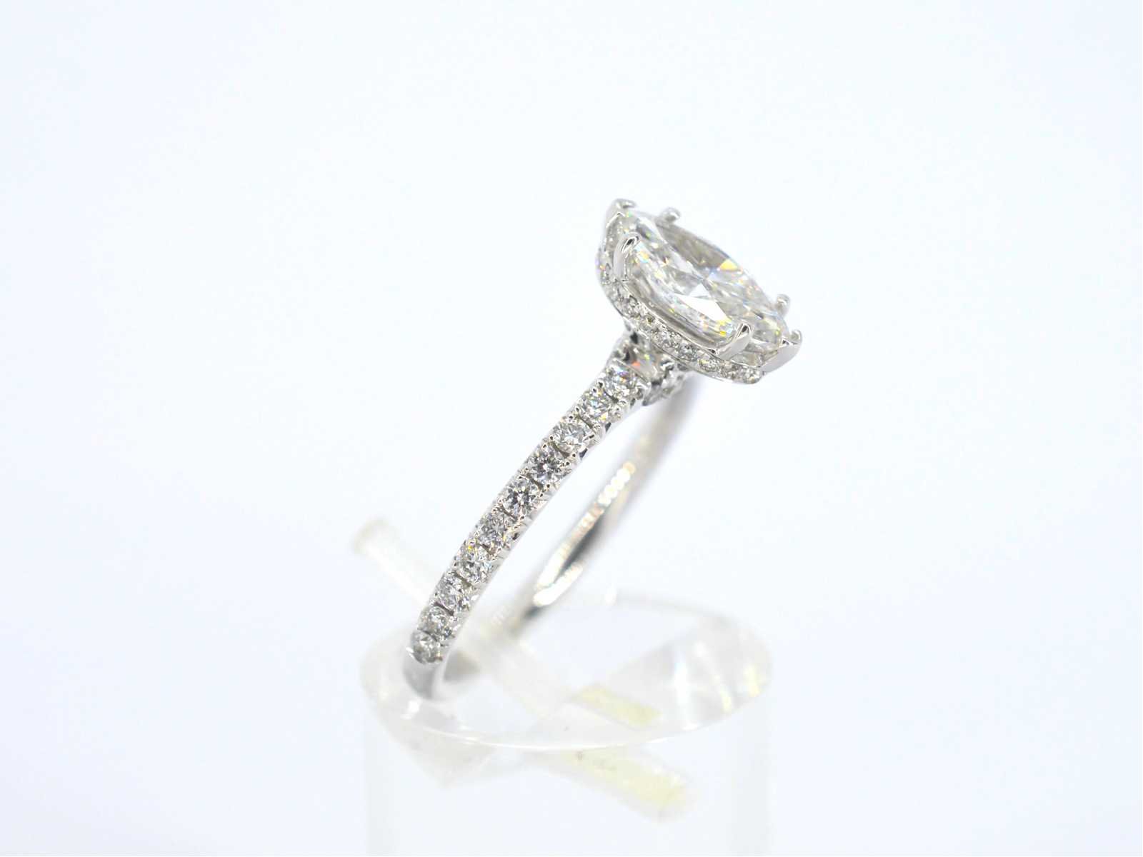 Samenvatting van gegevens Witgouden solitaire ring met een marquise diamant van 1.00 carat met hidden Halo Diamant: Eco (Lab-grown); Aantal: 1 stuk; Slijpvorm: Marquise geslepen; Gewicht (carat): 1.00 carat; Kleur: E-F-G; Zuiverheid: VVS-VS; Slijpkwaliteit: Excellent / Very good; Certificaat: IGI; Diamant (secundair): Natuurlijk; Aantal diamanten: 52 stuks; Slijpvorm: Briljant geslepen; Gewicht (carat): 0.50 carat; Kleur: F; Zuiverheid: VS; Slijpkwaliteit: Zeer mooi; Juweel: Ring; Gewicht: 2 gram; Ringmaat (op maat gemaakt*): 53 (17 mm); Materiaal: 18K goud (750); Conditie: Nieuw; Verpakking: Luxe sieradendoos; Toelichting: De kwaliteit is overgenomen van het rapport behorend bij item. De waardebepaling is een beoordeling van een gecertificeerde diamantair, gebaseerd op consumentenprijzen.; Consumentenprijs: € 7.925,- Within 14 days Materiaal: Goud Voornaamste diamant: Eco (Lab-grown) Gewicht diamant: 1.00ct Totaal gewicht: 2g Keurmerk: 750 Certificaat: IGI Kleur diamant: E-F-G Slijpvorm diamant: Marquise geslepen Slijpkwaliteit diamant: Excellent / Very good Zuiverheidsgraad diamant: VVS-VS