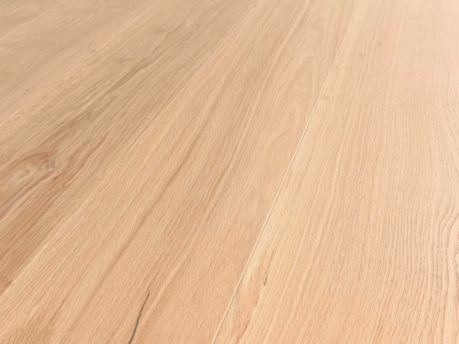 Gemakkelijk te leggen wegens 5G clicksysteem, geschikt voor alle soorten vloer en koelverwarmingen, kwaliteits parketvloer, vloer is van hoogwaardig Europees eiken hout, kant en klaar behandeld, dikte 14 mm, toplaag 3 mm, 39 pakken a 2,77 m2 Merk: Ambiance Product type: Parket Oppervlakte: 108m² Geschikt voor vloerverwarming: Ja V-groef: Ja Afwerking: Geolied, geoxideerd, geborsteld, met v-groef Aantal m² per verpakking: 2.77m² Kleur: Raw effect 828 Gewicht: 895kg Lengte: 2200mm Breedte: 180mm Materiaal: Eiken multiplank