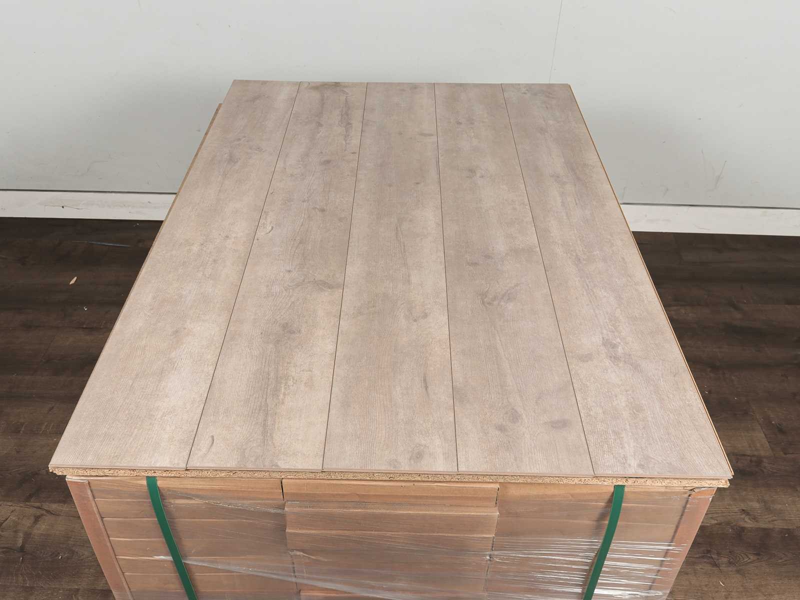 Kwaliteits laminaat vloer, dikte 8 mm, voorzien van clicksysteem, goed te combineren met vloerverwarming, kras en slijtvast, anti slip, gemakkelijk schoon te maken, warm en comfortabel, 34 pakken a 2,40 m2 Merk: Krono flooring Product type: Laminaat Oppervlakte: 81m² Geschikt voor vloerverwarming: Ja V-groef: Ja Afwerking: Voelbaar structuur, anti slip, met v-groef Aantal m² per verpakking: 2.4m² Kleur: Concrete fossil Gewicht: 510kg Lengte: 1383mm Breedte: 193mm Materiaal: HDF/MDF