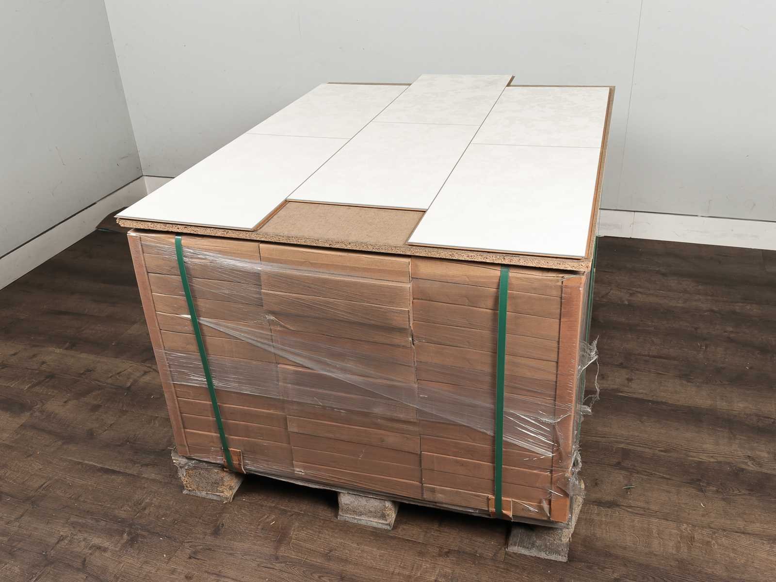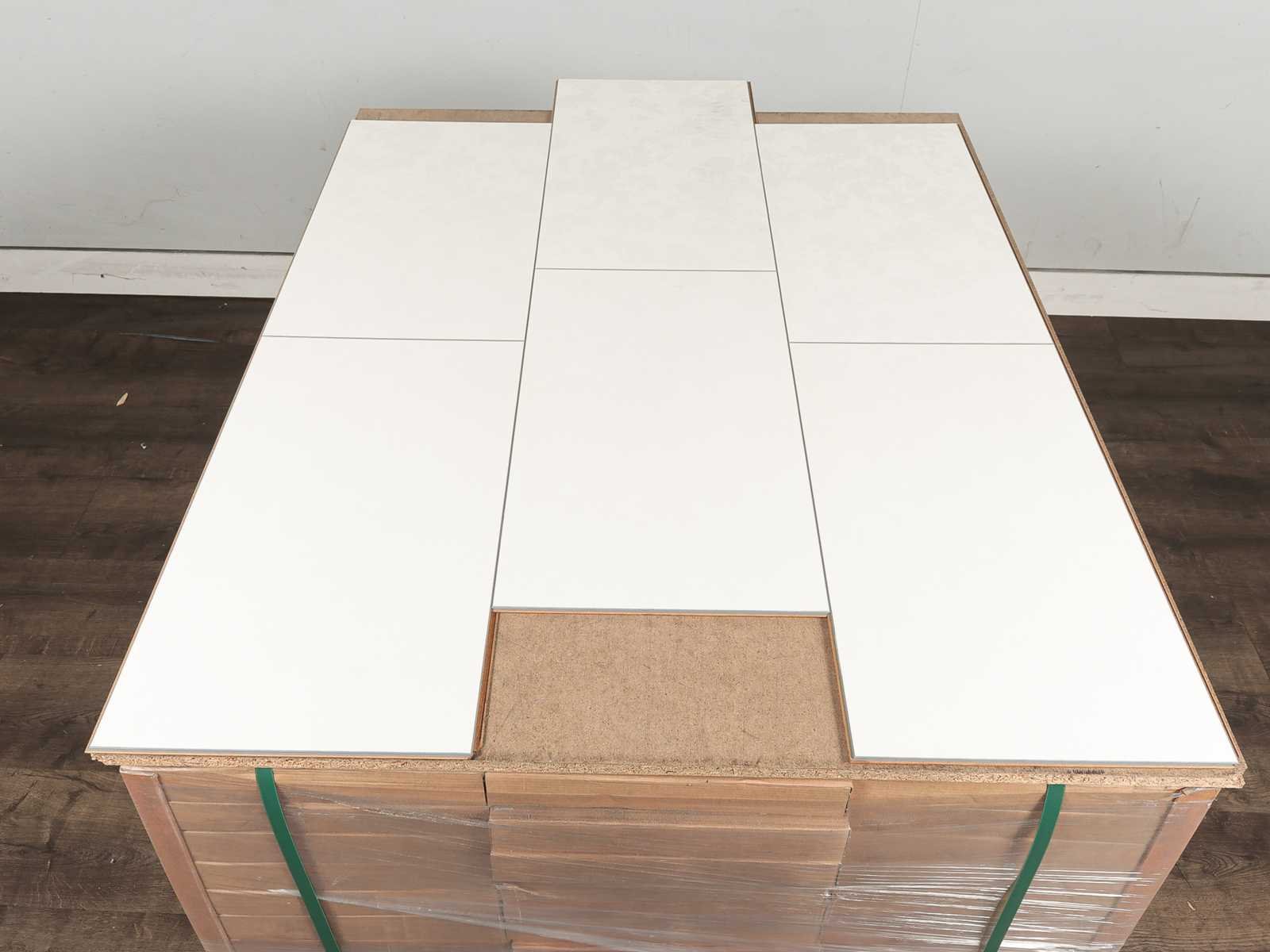 Kwaliteits laminaat vloer, dikte 7,7 mm, voorzien van clicksysteem, goed te combineren met vloerverwarming, kras en slijtvast, anti slip, gemakkelijk schoon te maken, warm en comfortabel, 34 pakken a 2,27 m2 Merk: Elesgo Product type: Laminaat Oppervlakte: 77m² Geschikt voor vloerverwarming: Ja V-groef: Ja Afwerking: Voelbaar structuur, anti slip, met v-groef Aantal m² per verpakking: 2.27m² Kleur: Double finish white Gewicht: 510kg Lengte: 1184mm Breedte: 320mm Materiaal: HDF/MDF