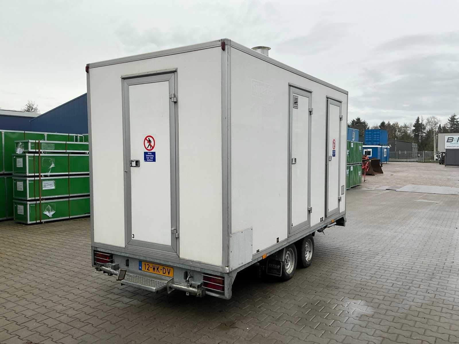 Unit ingedeeld in 3 compartimenten: een uitkleedruimte, een doucheruimte en een aankleedruimte (schone ruimte). Merk: Peters Aantal assen: 2 Ledig gewicht: 1350kg Laadvermogen: 650kg Gesloten opbouw: true Datum eerste toelating: 2013-05-13 Datum eerste toelating (NL): 2013-05-13 Kenteken: 12-WK-DV Kentekenpapieren compleet?: true Nationaliteit documenten: Nederlands Zelf rijdend exporteren: Mogelijk