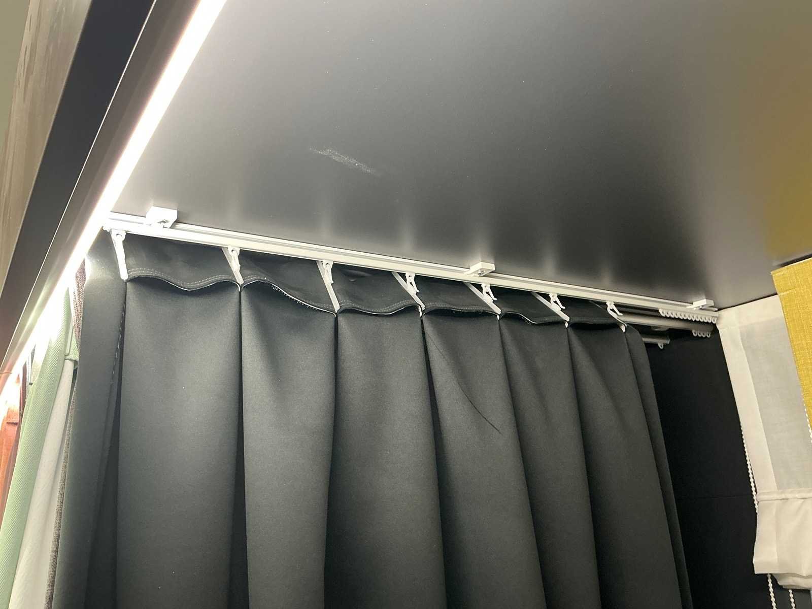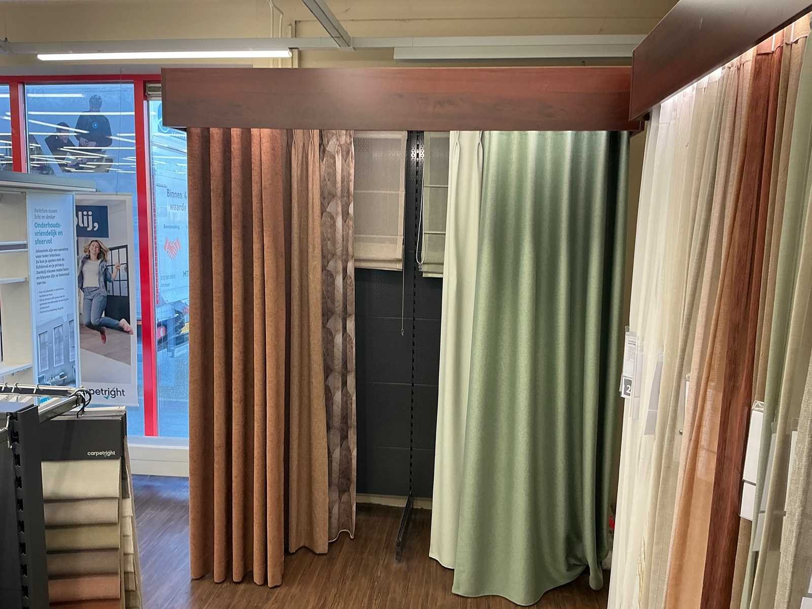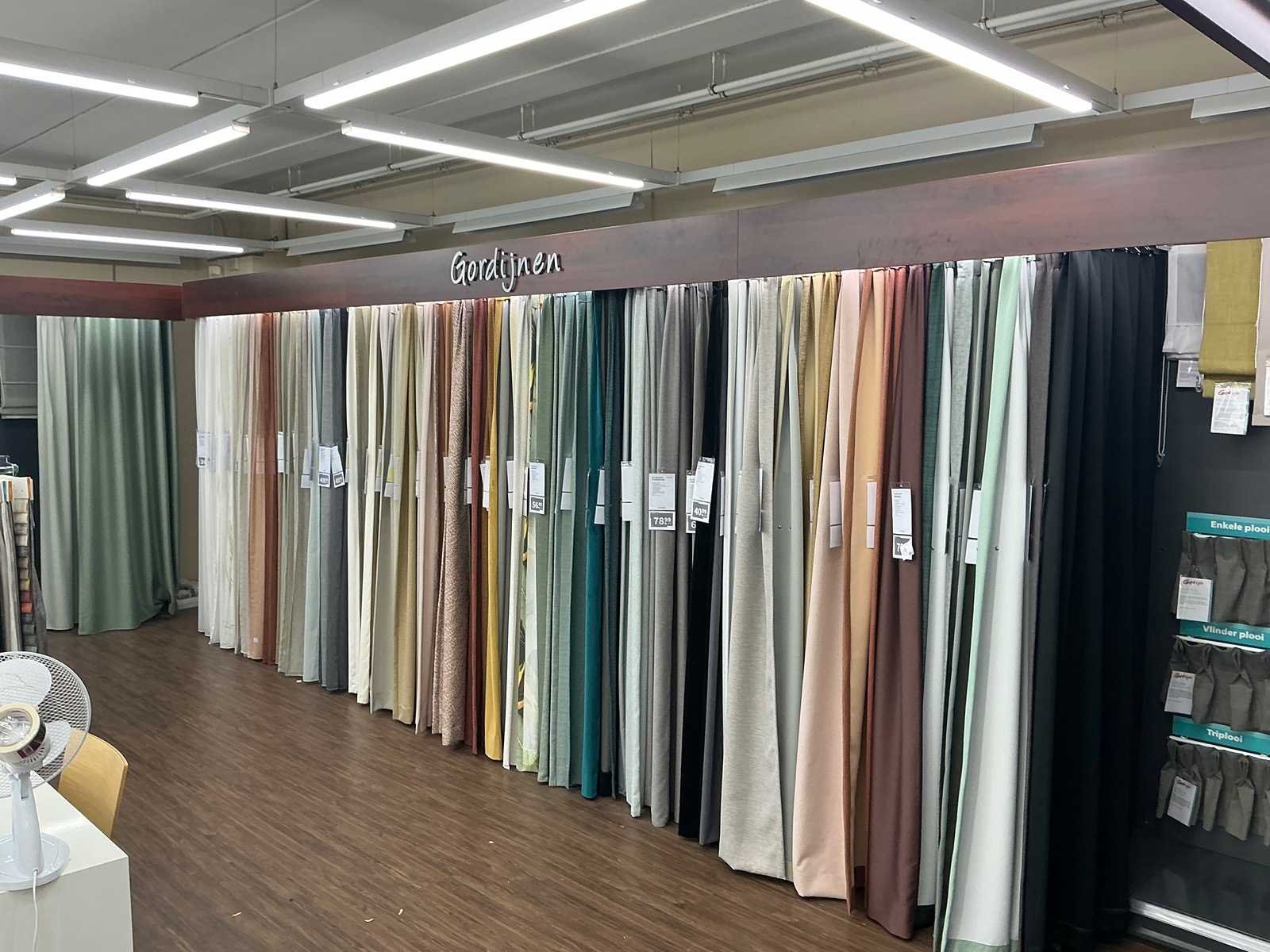 Gordijn samples niet meegeleverd. Dit kavel dient door de koper professioneel gedemonteerd te worden. Totale afmeting L: 14000mm Totale afmeting Breedte: 700mm Totale afmeting Hoogte: 2500mm