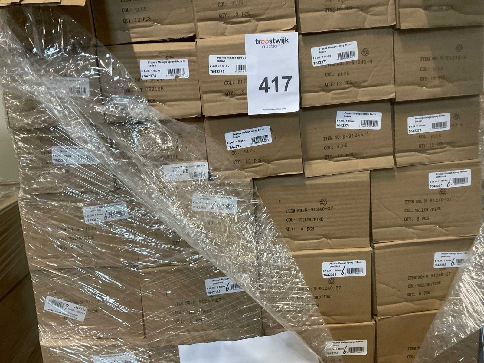 1 pallet, kunstbloemen o.a. prunus bloesemtakken, diverse kleuren, inclusief pallet
