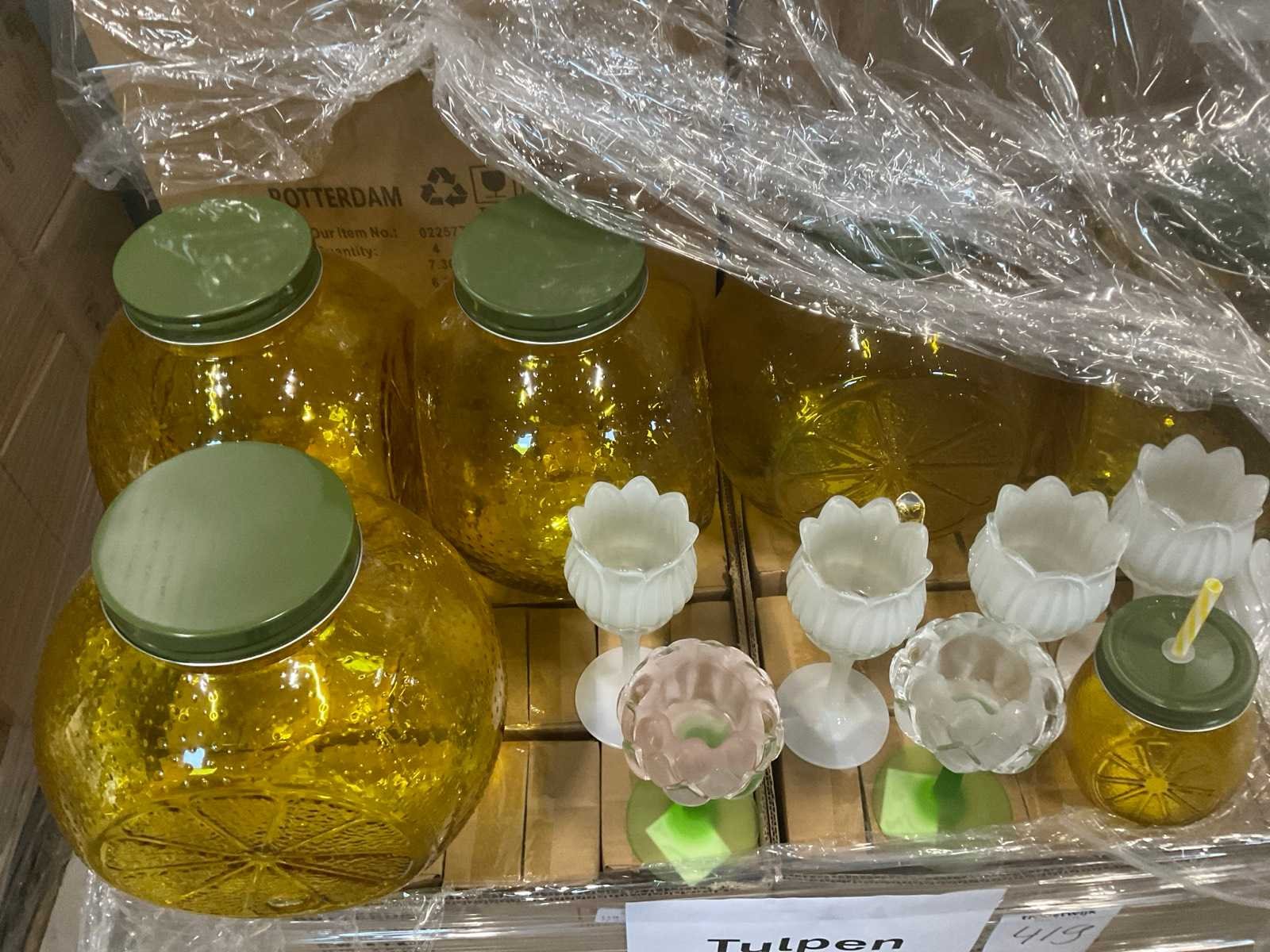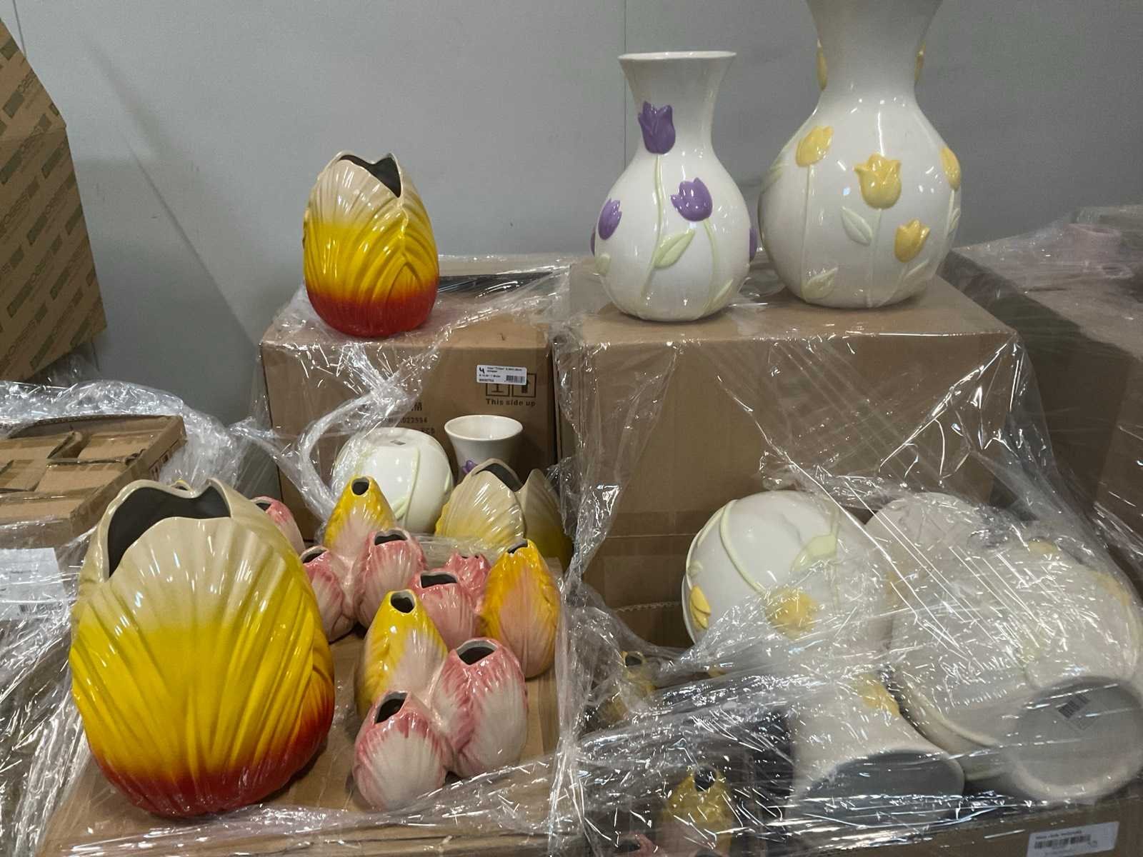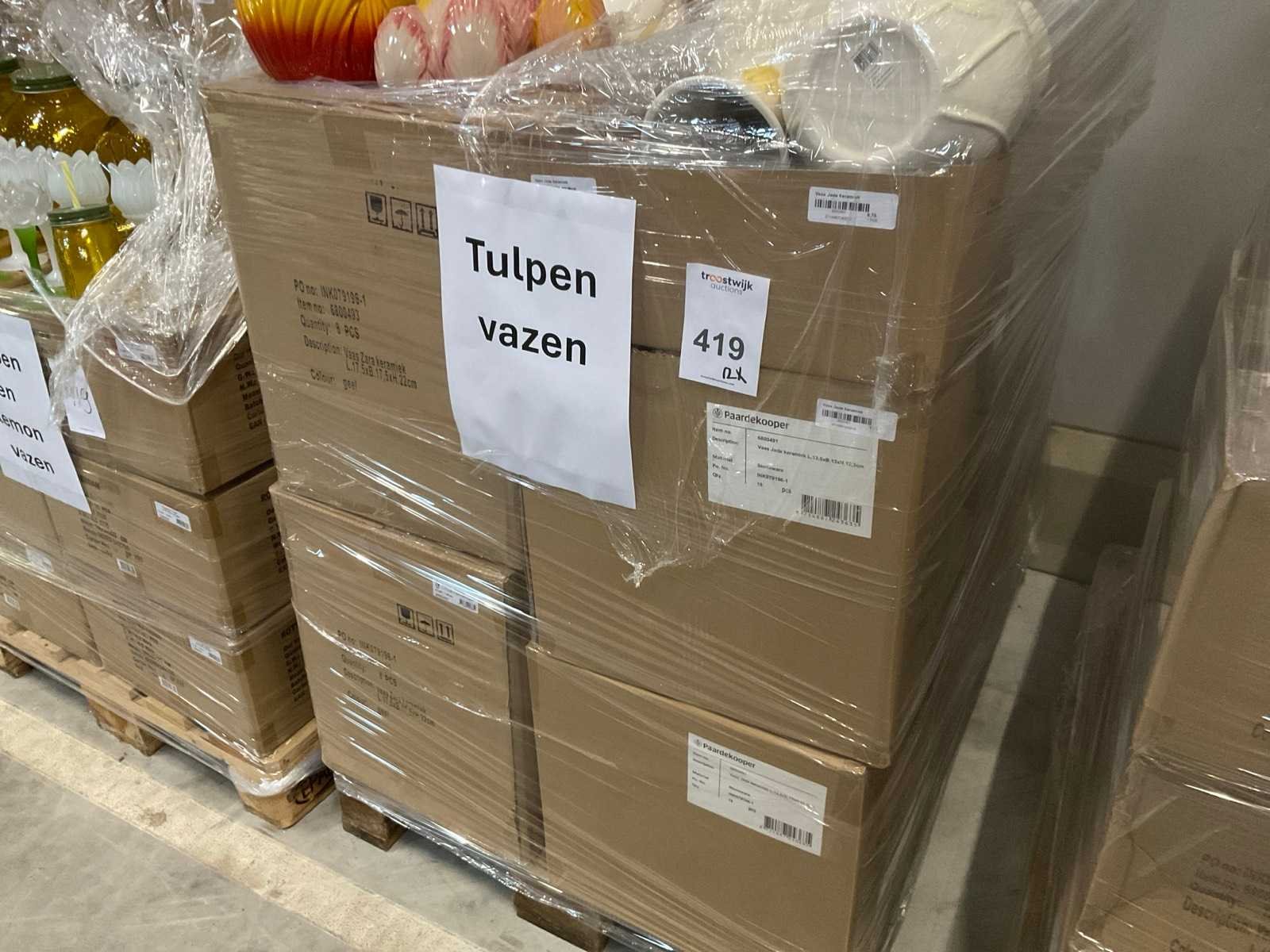 2 pallets, o.a. vazen, diverse afmetingen en kleuren, decoratie potten, inclusief pallets