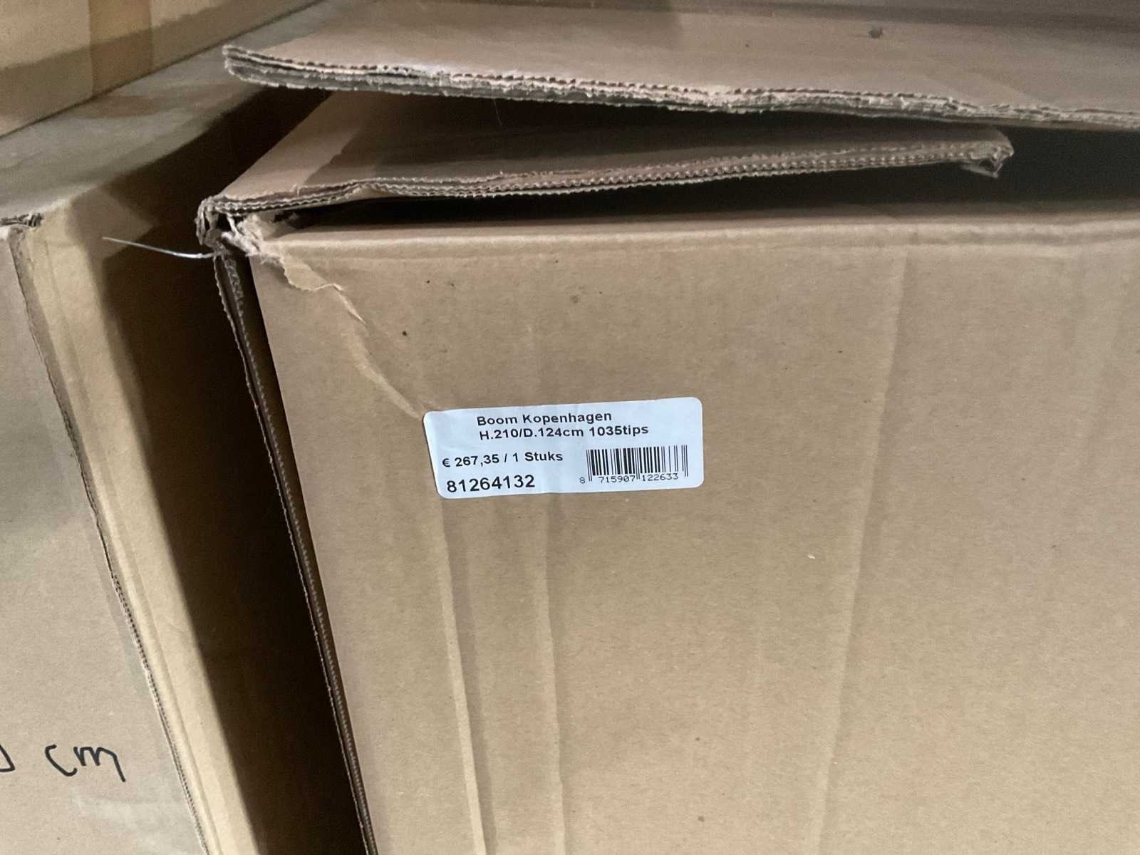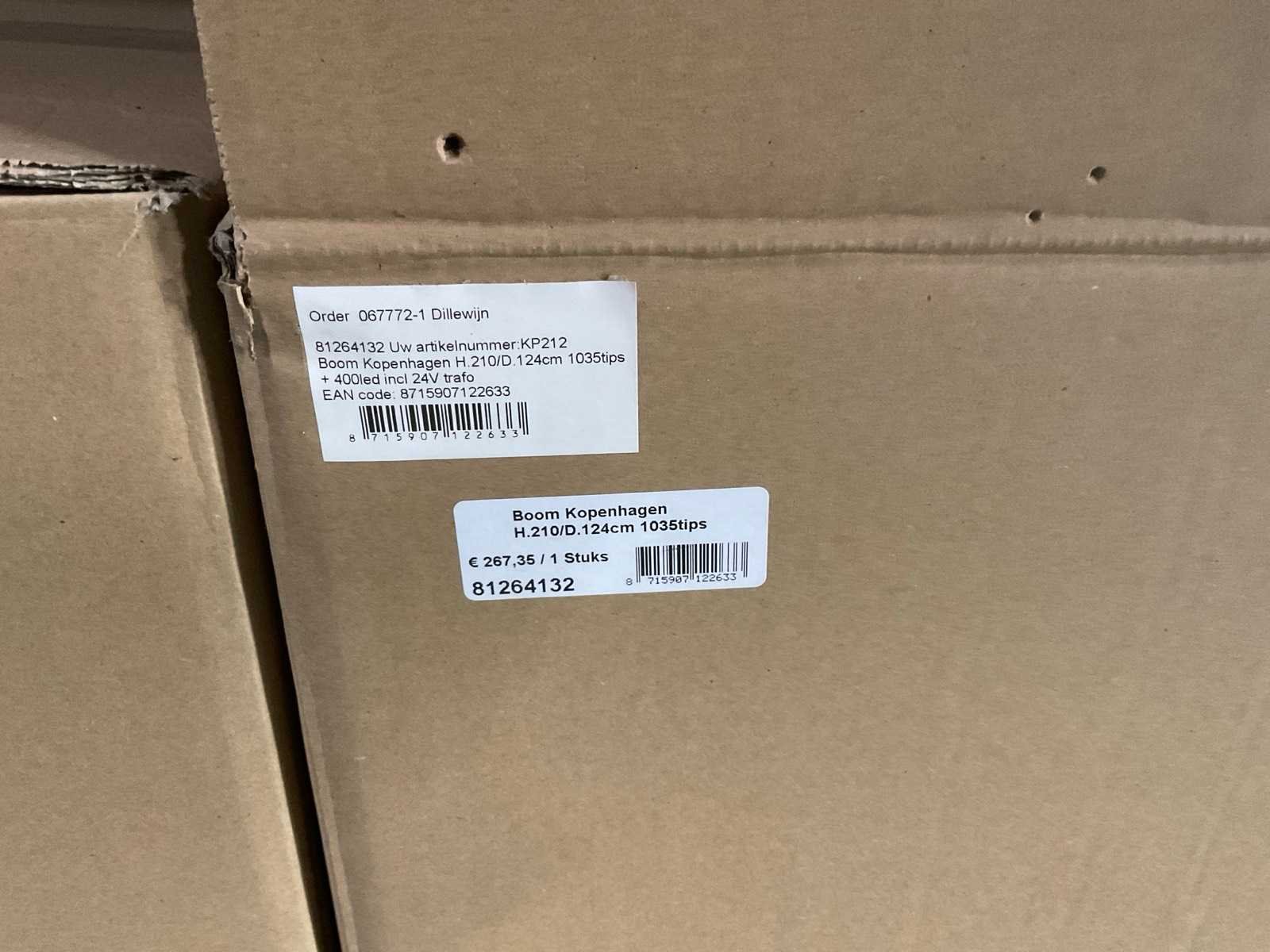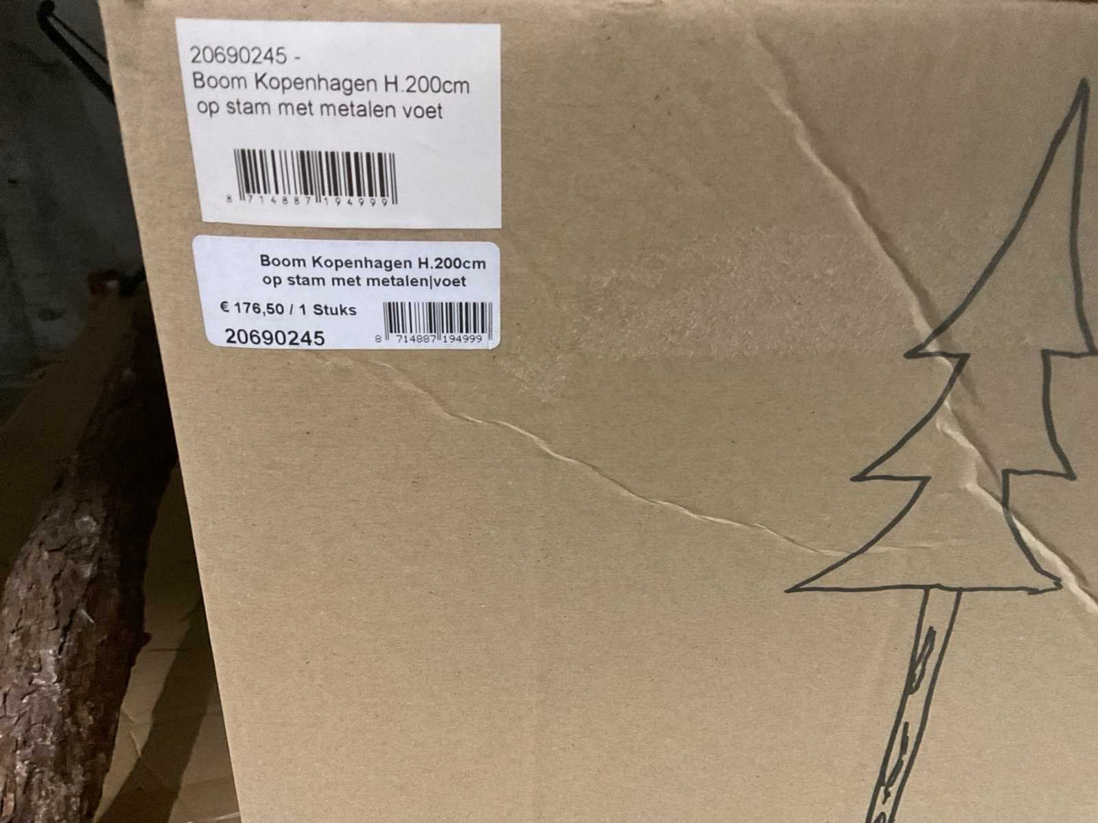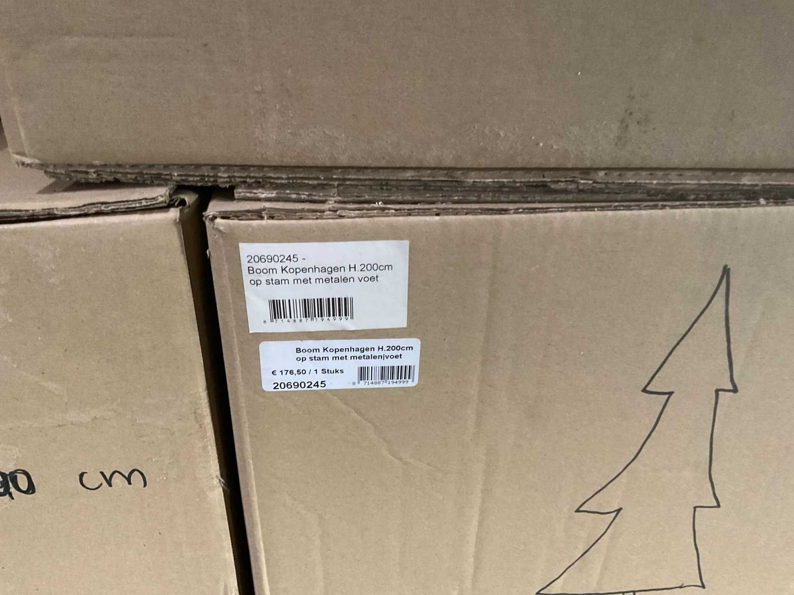 2 pallets en inhoud van bovenliggende plank in stelling, kunst kerstbomen, inclusief pallets, stelling niet inbegrepen