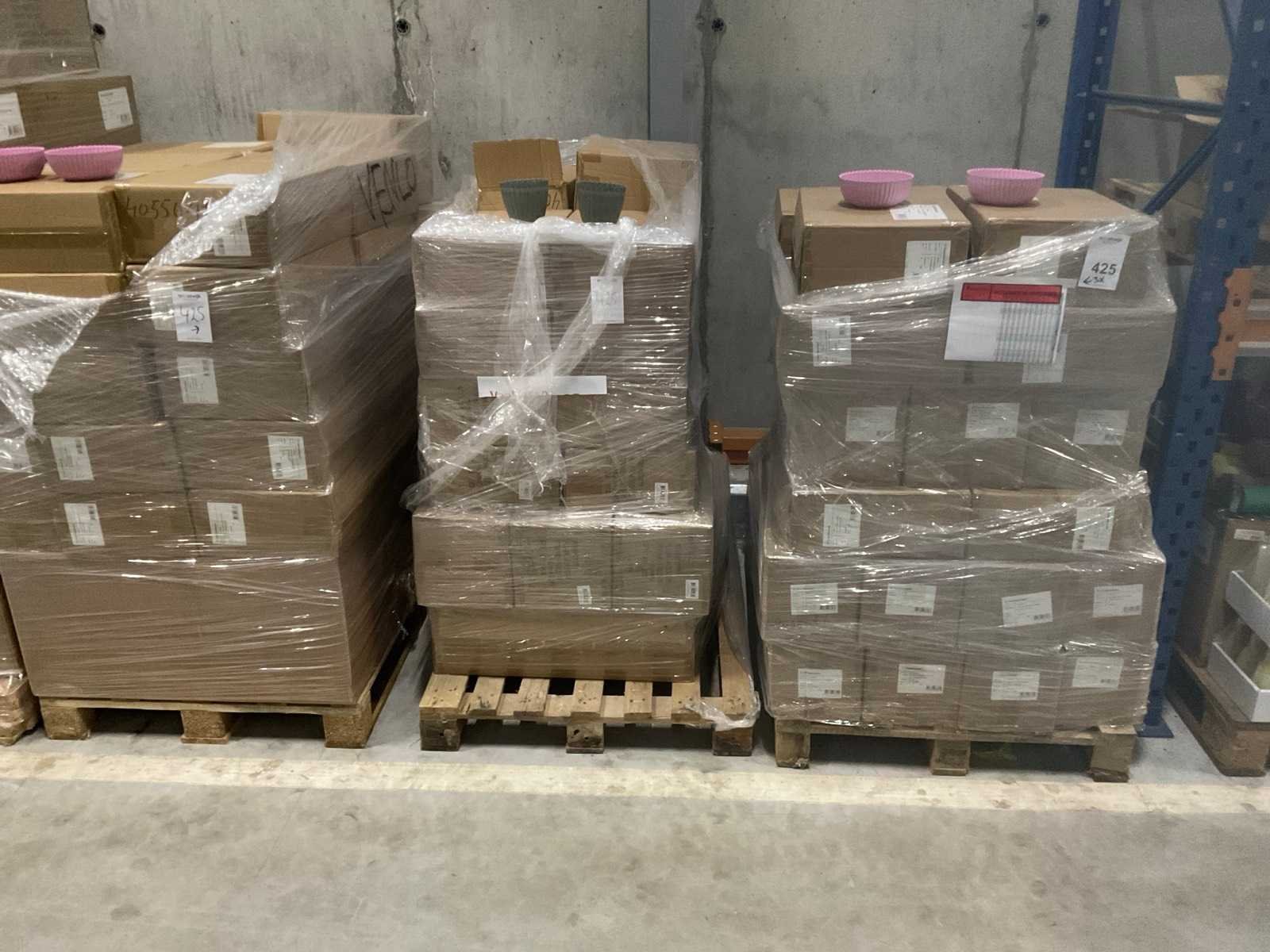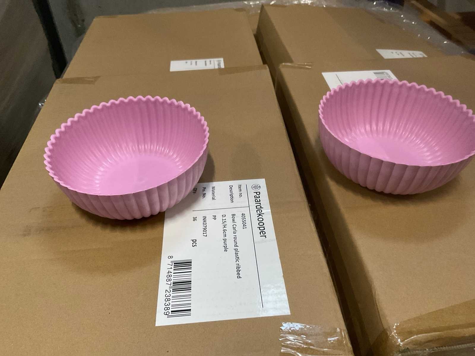 3 pallets, o.a. bowl Carla round ribbed purple, inclusief pallets