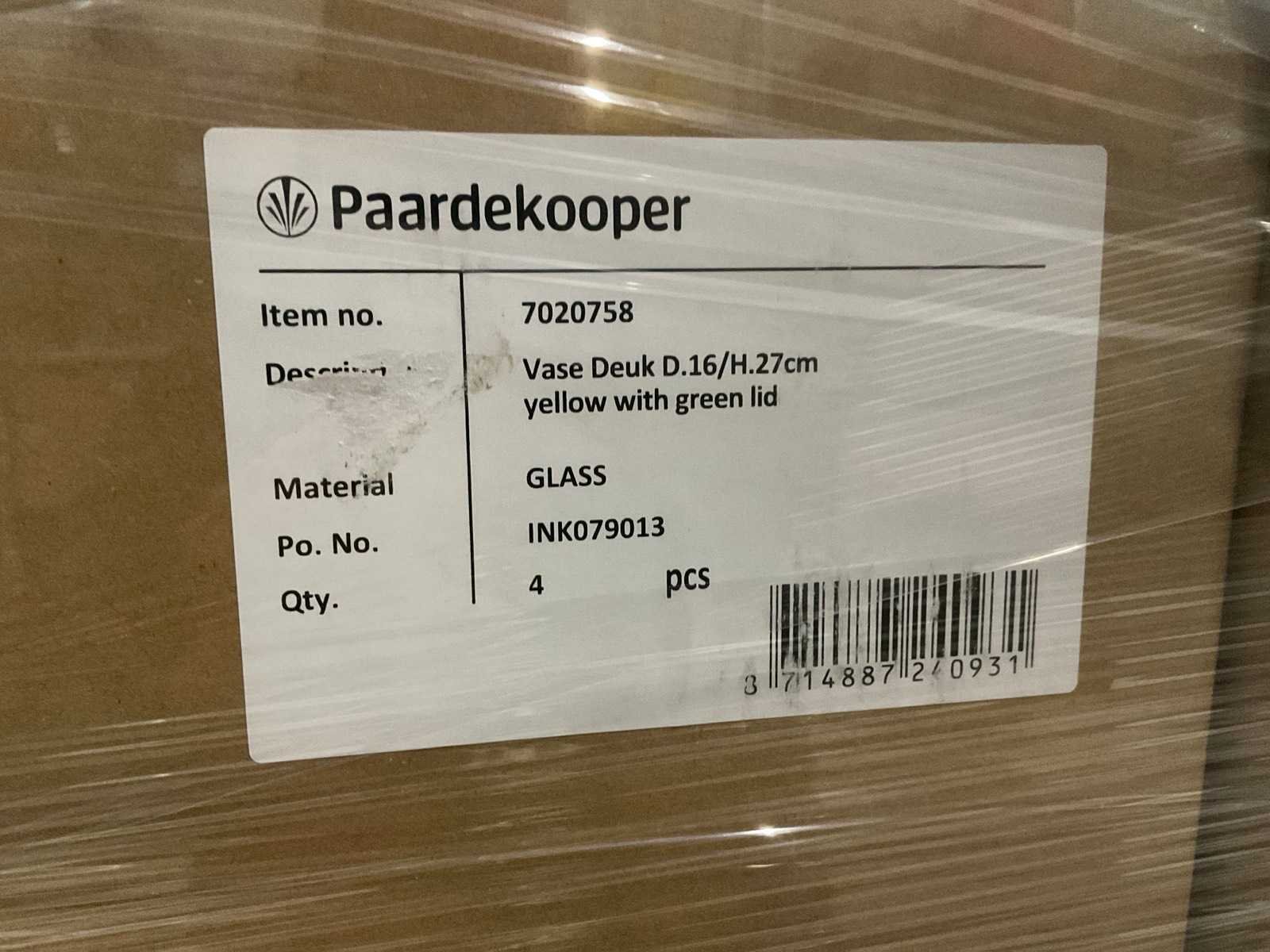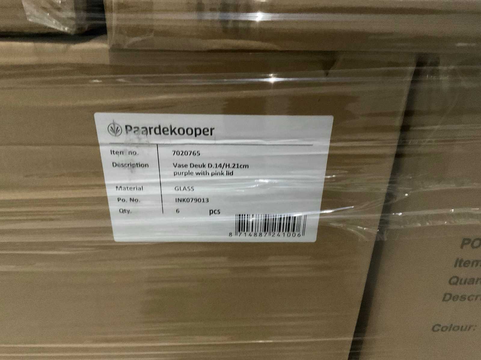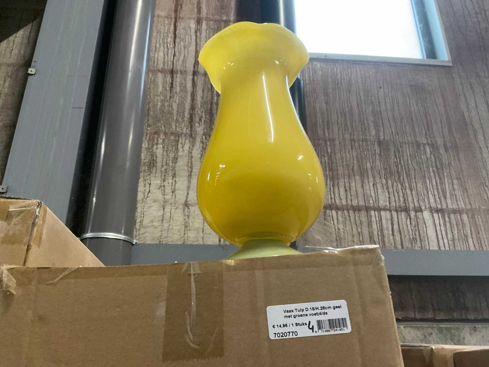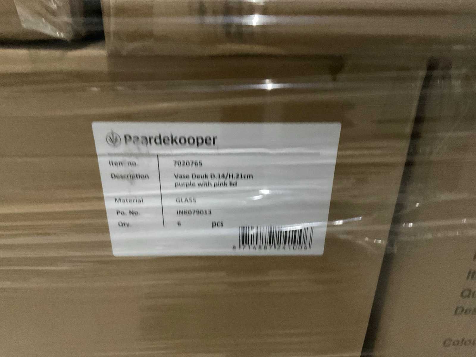 3 pallets , o.a. aardewerk en glazen vazen, diverse kleuren, inclusief pallets