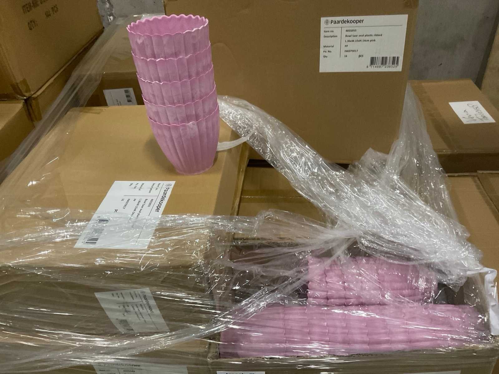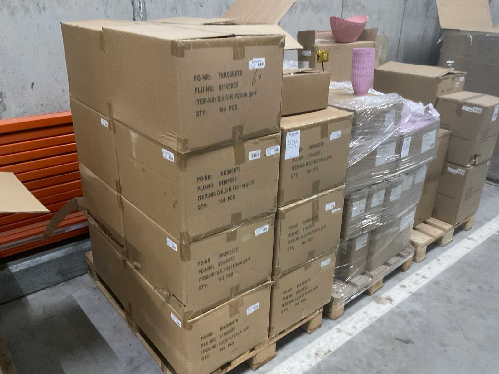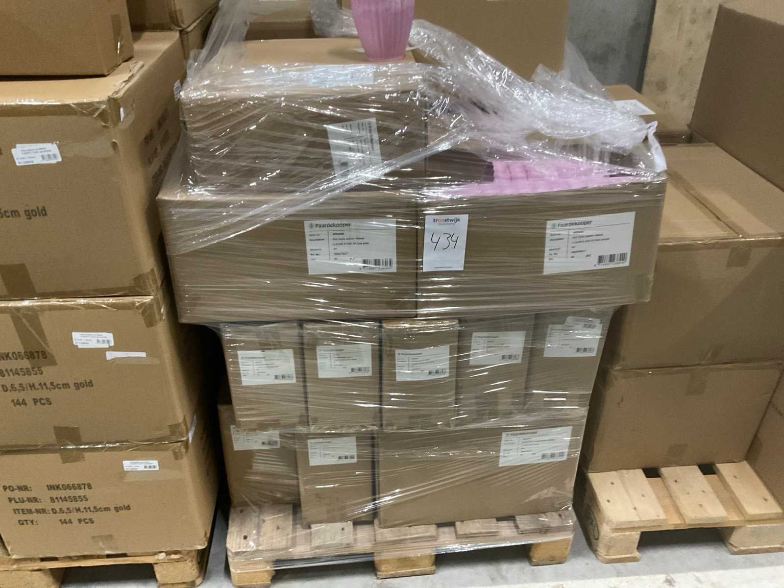 3 pallets, o.a. waxineglas op steker en bowl Saar en pot Carla, inclusief pallets