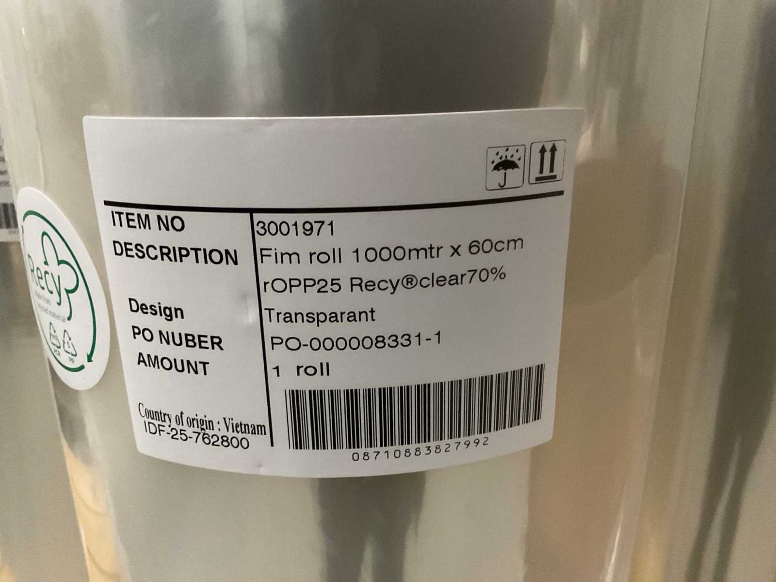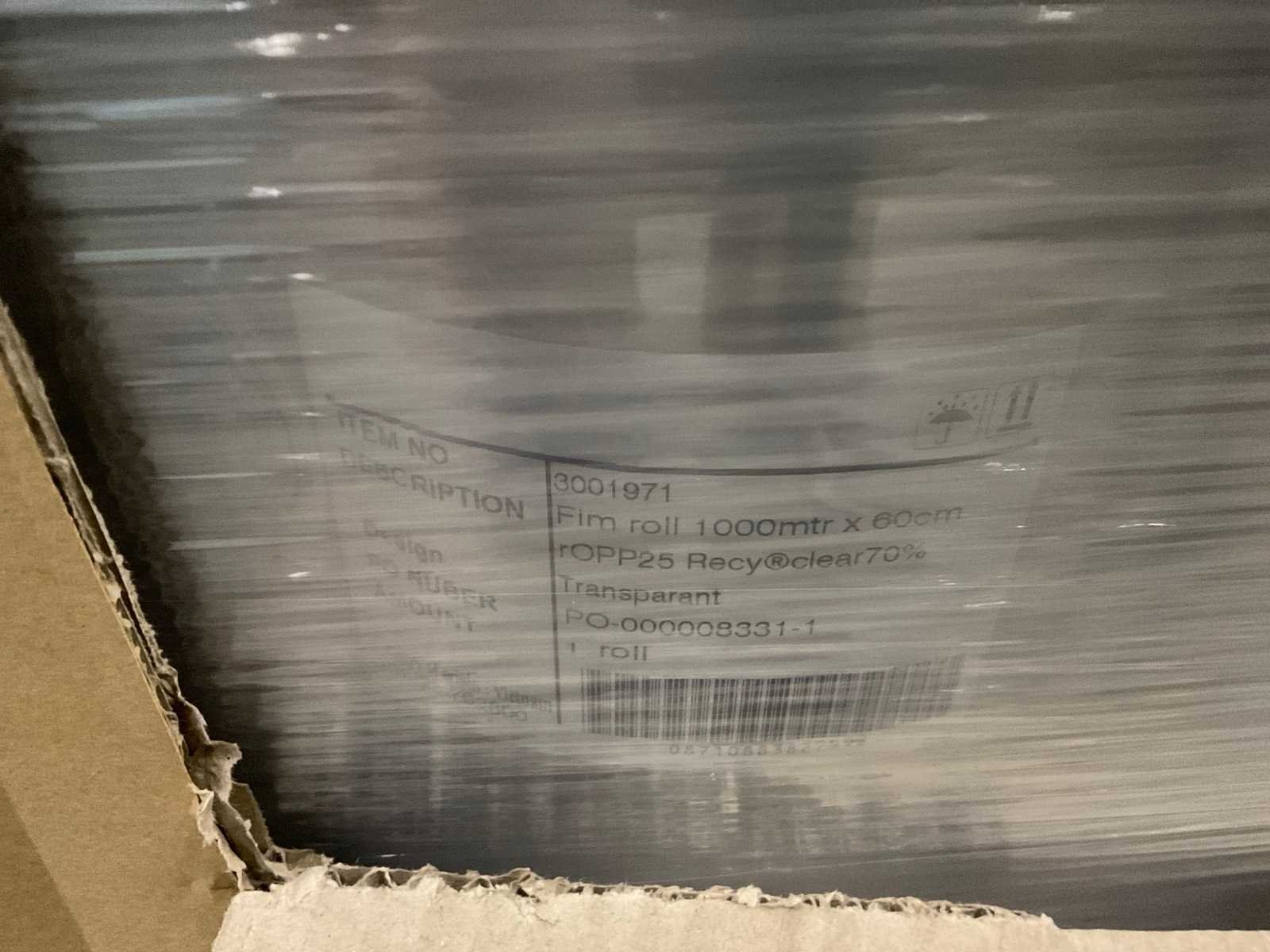 2 pallets , ca. 50 rol, transparante folie rOPP25, 1000m x 60 cm per rol, inclusief pallets