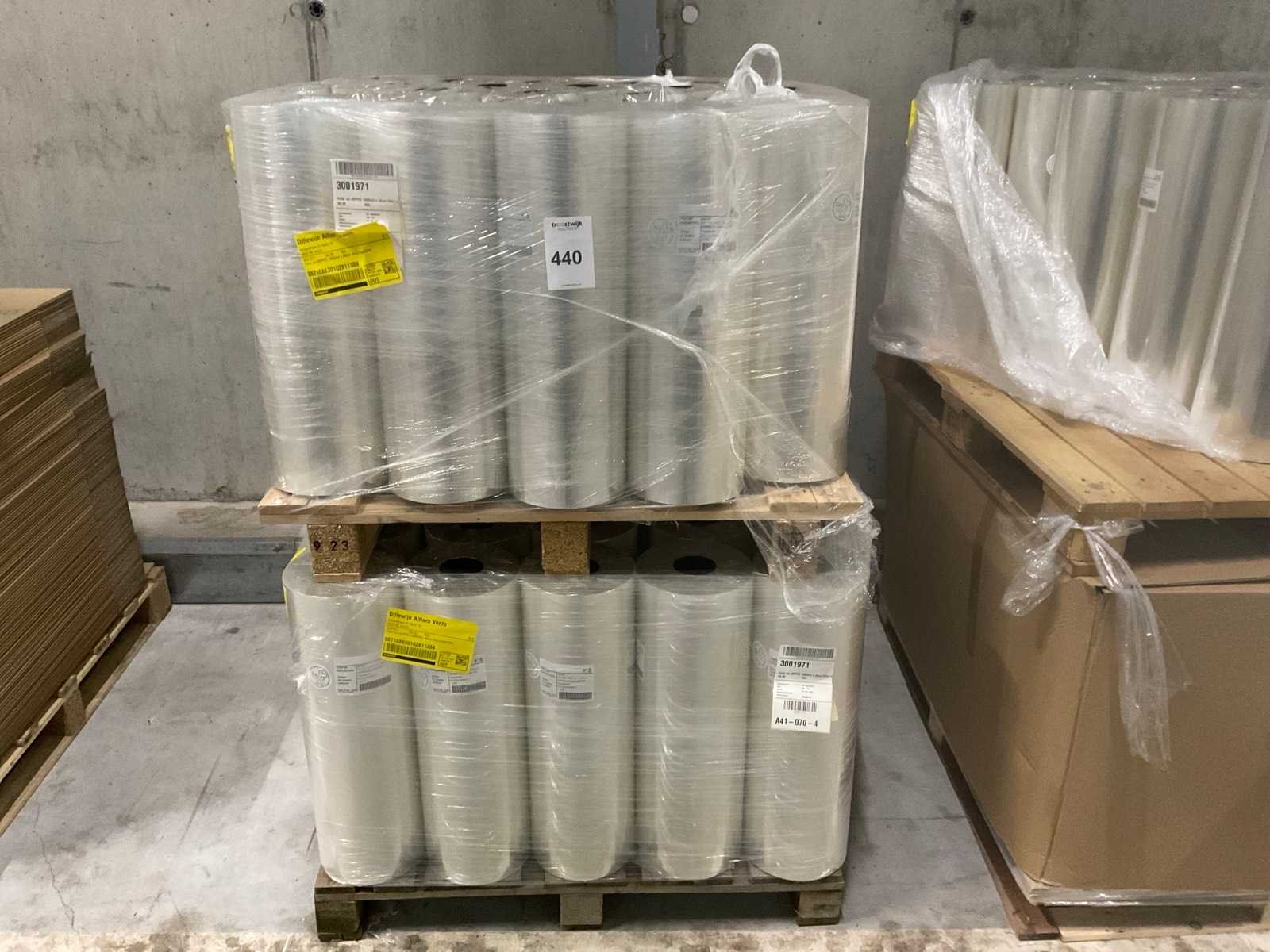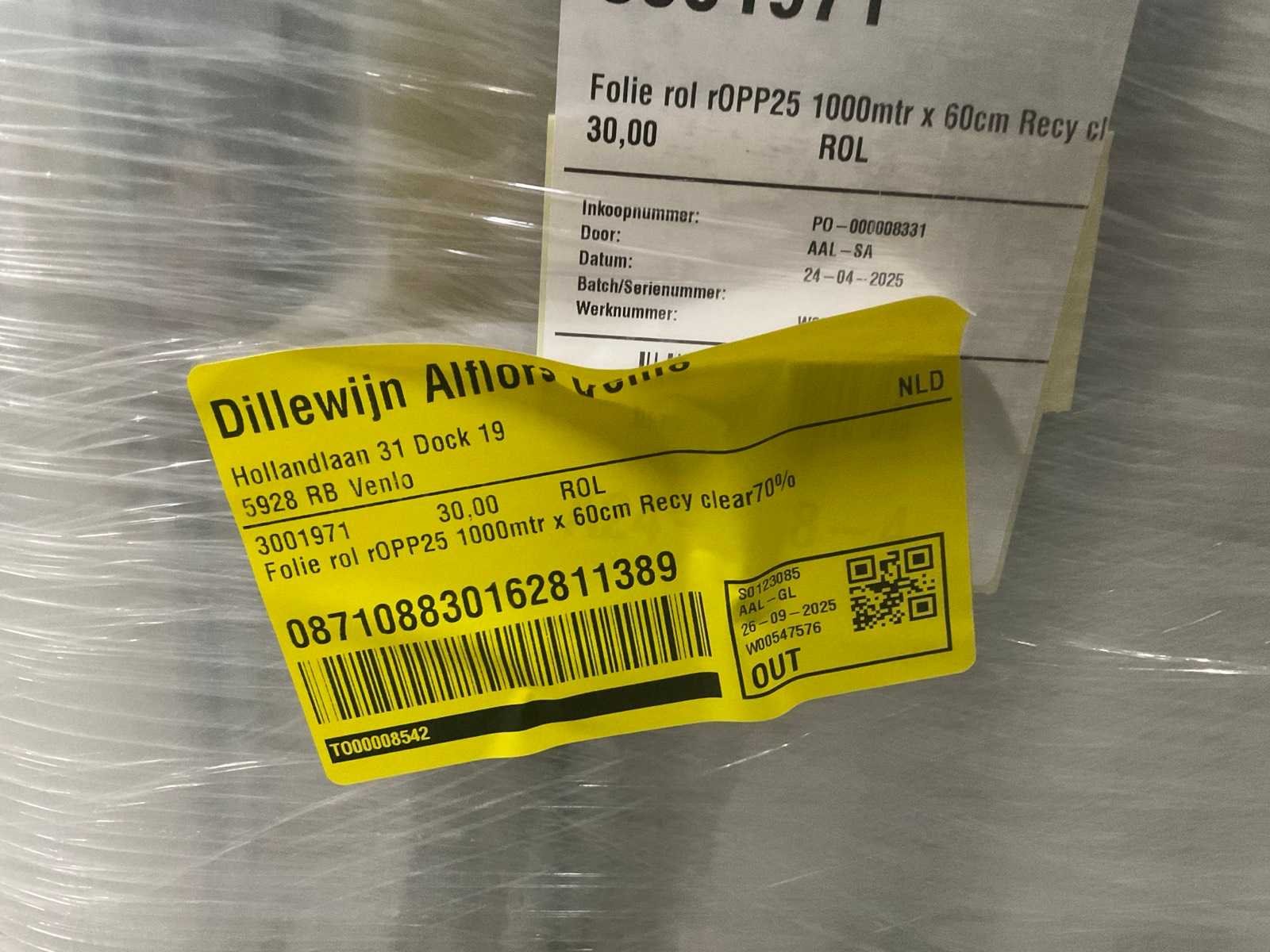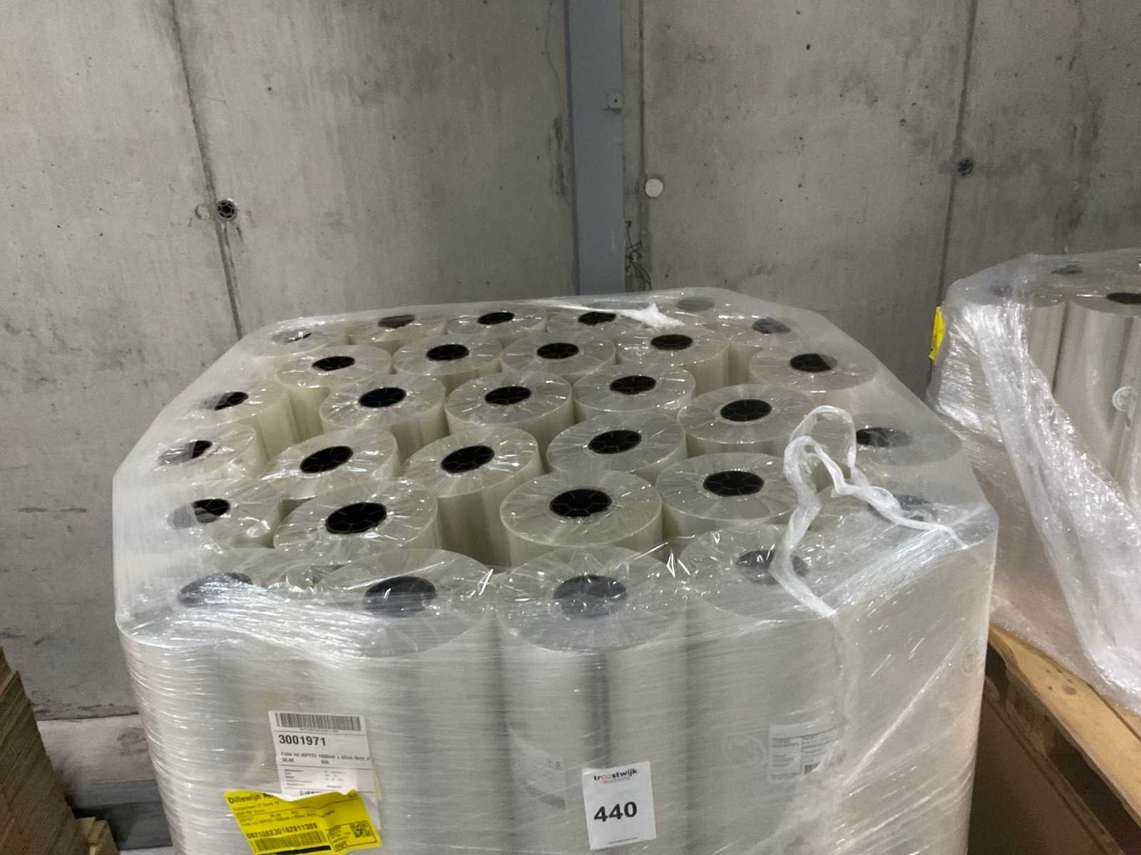 2 pallets , ca. 60 rol, transparante folie rOPP25, 1000m x 60 cm per rol, inclusief pallets