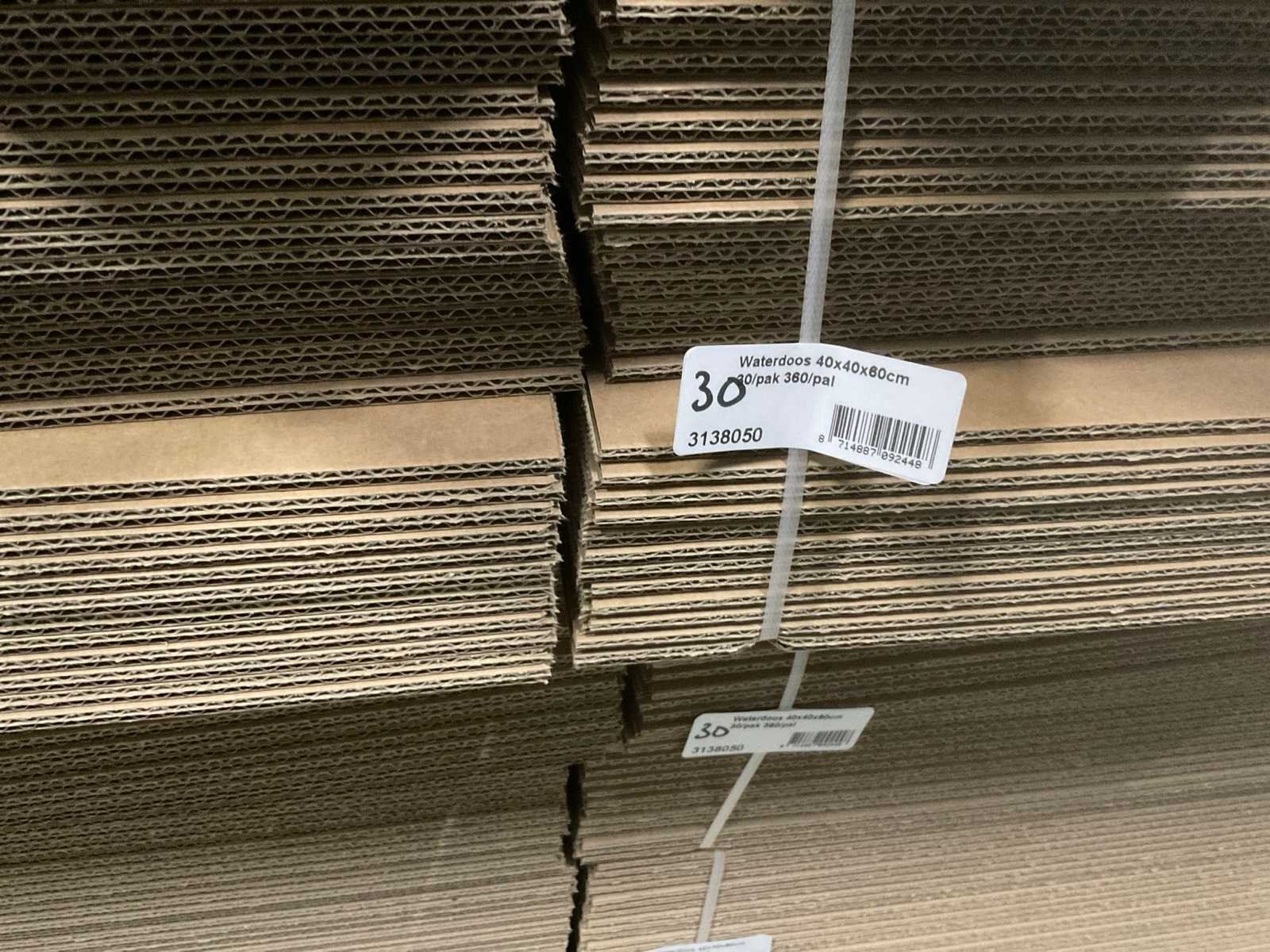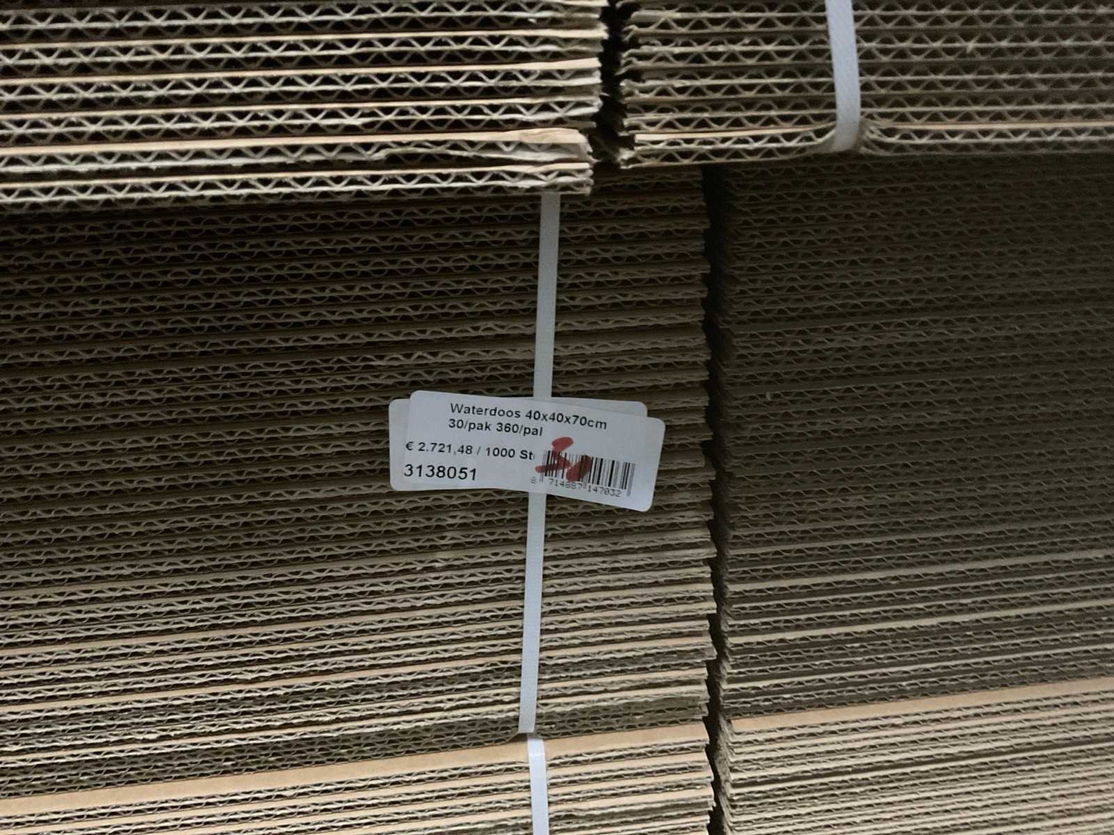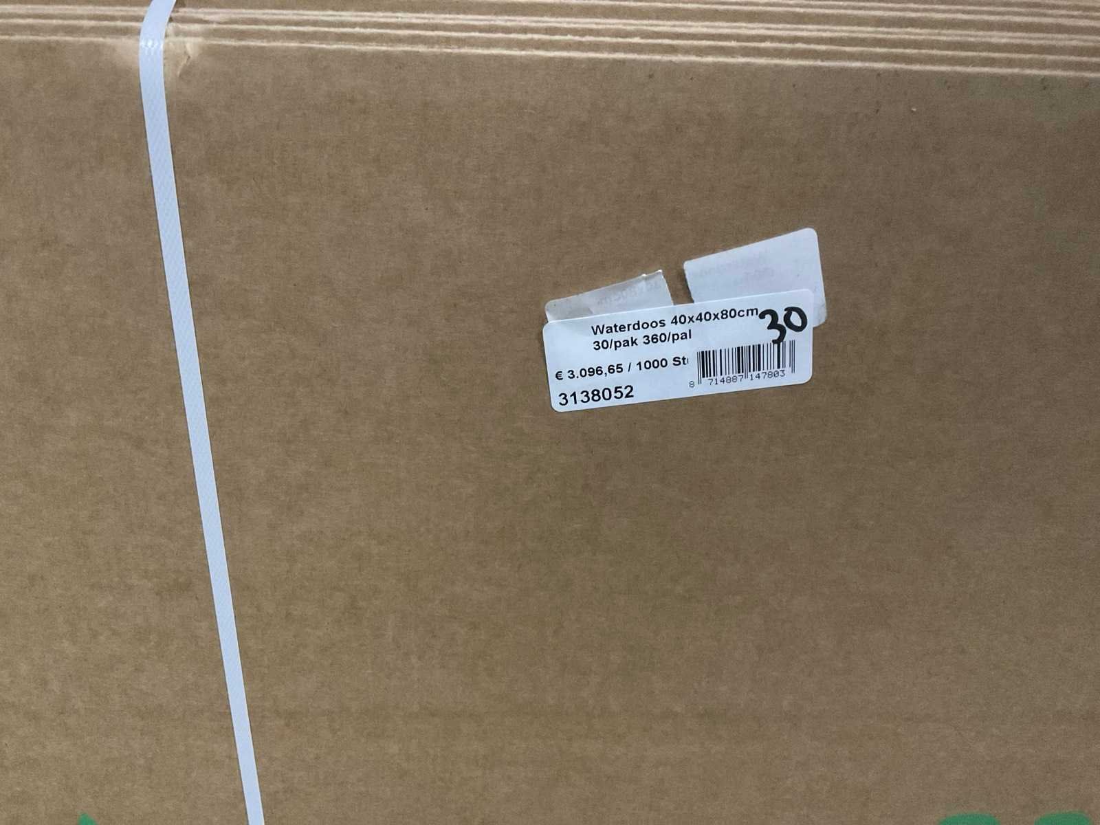 3 pallets, diverse afmetingen waterdoos, o.a. 40x40x60, 40x40x80, inclusief pallets