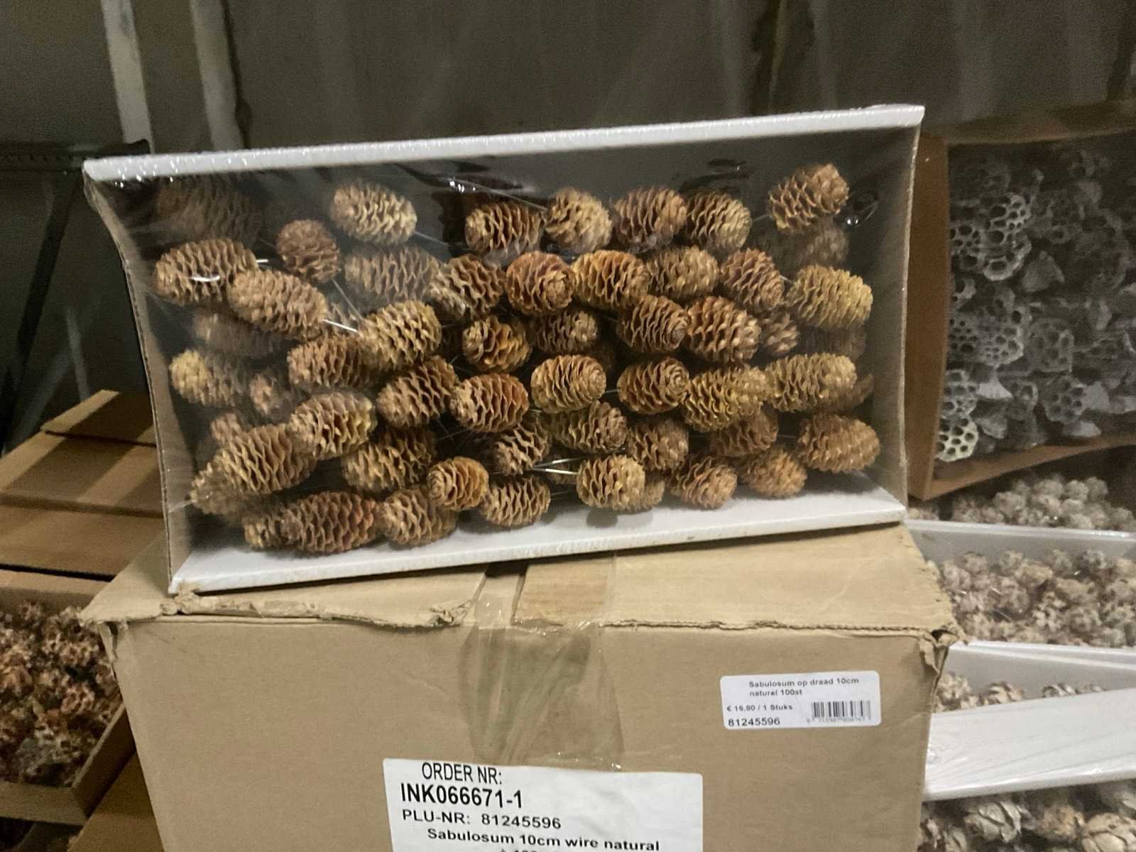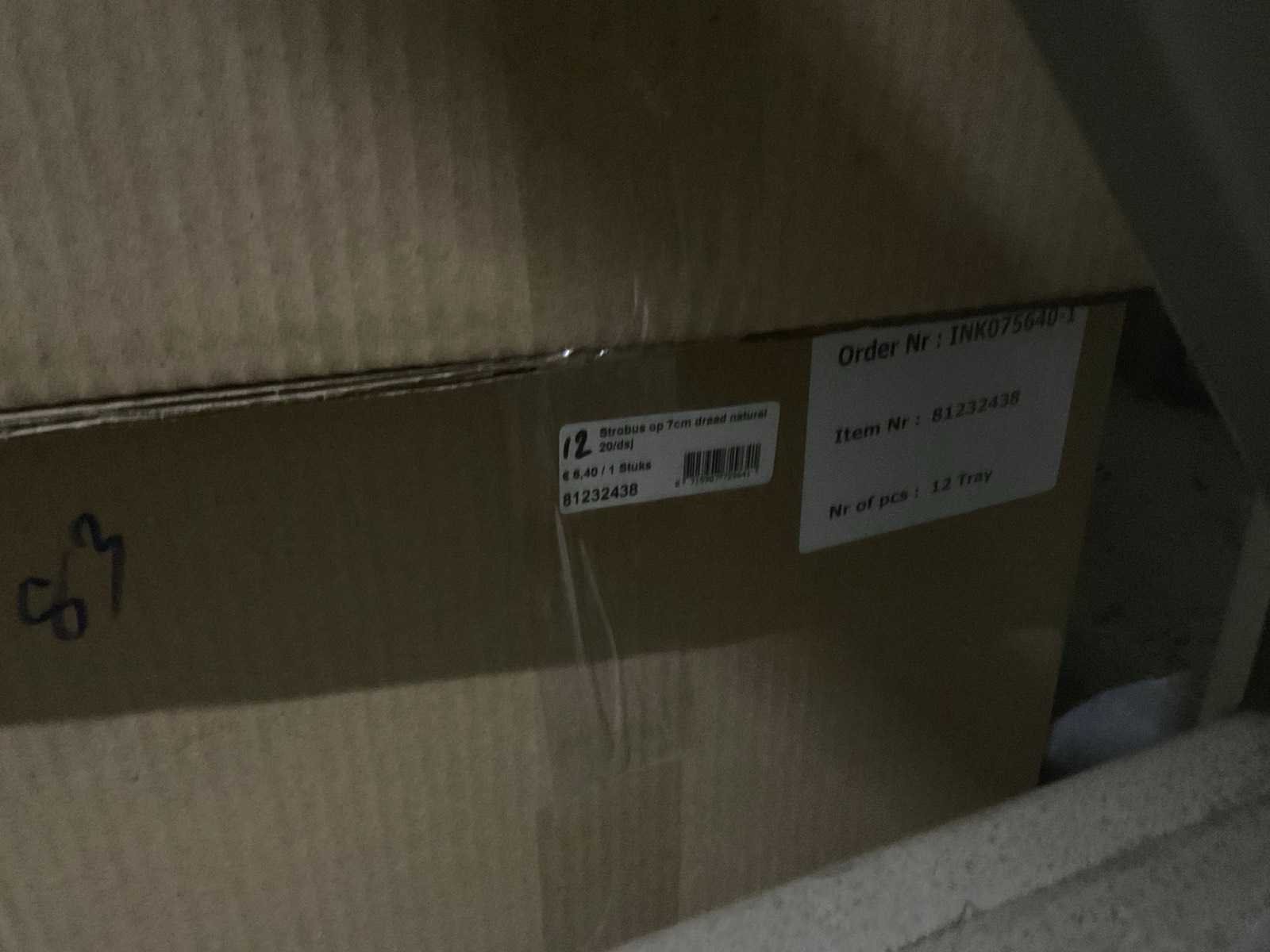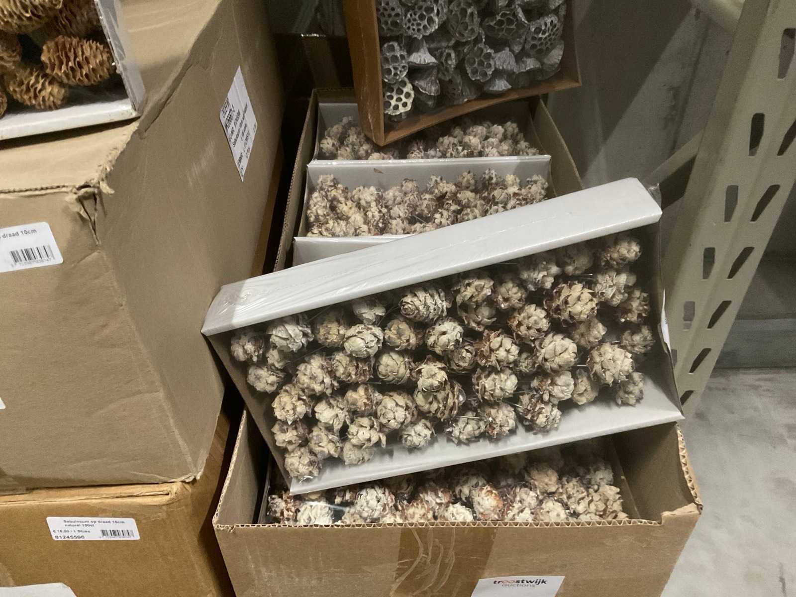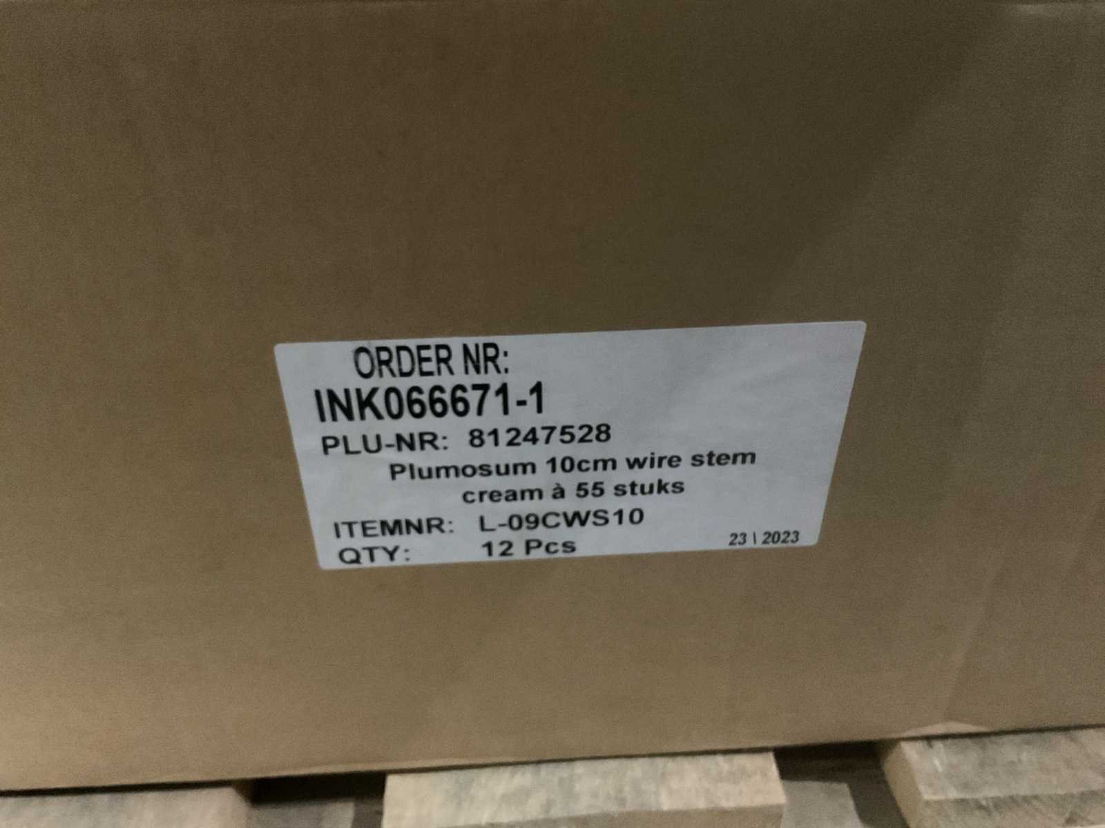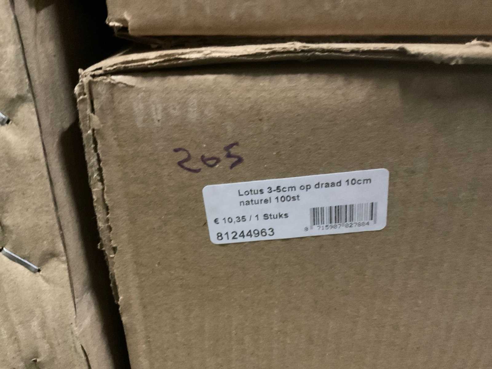 3 pallets, diverse bloemisterij artikelen, o.a. sabulosum op draad, lotus op draad, diverse afmetingen inzet emmers, inclusief pallets