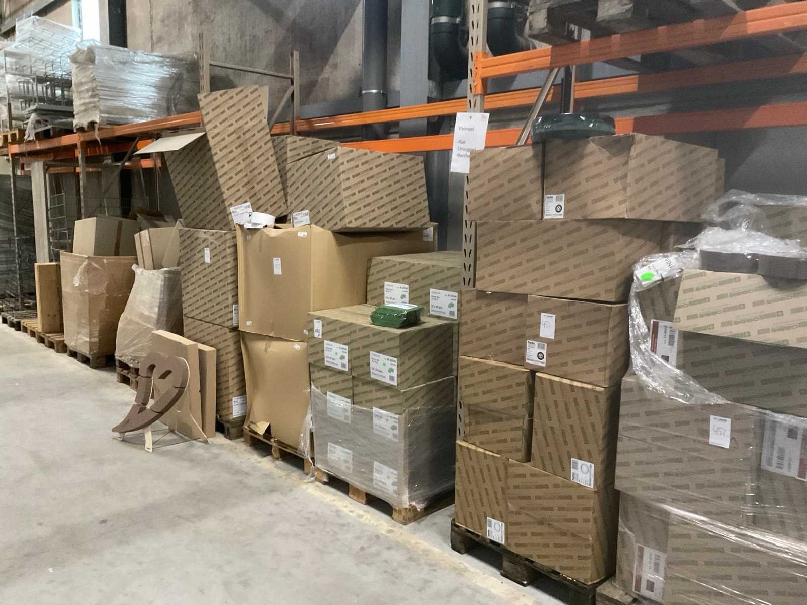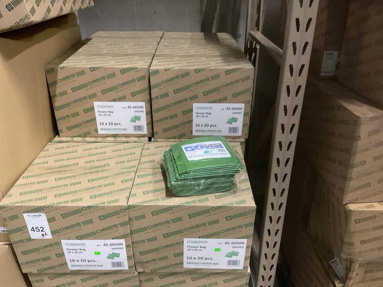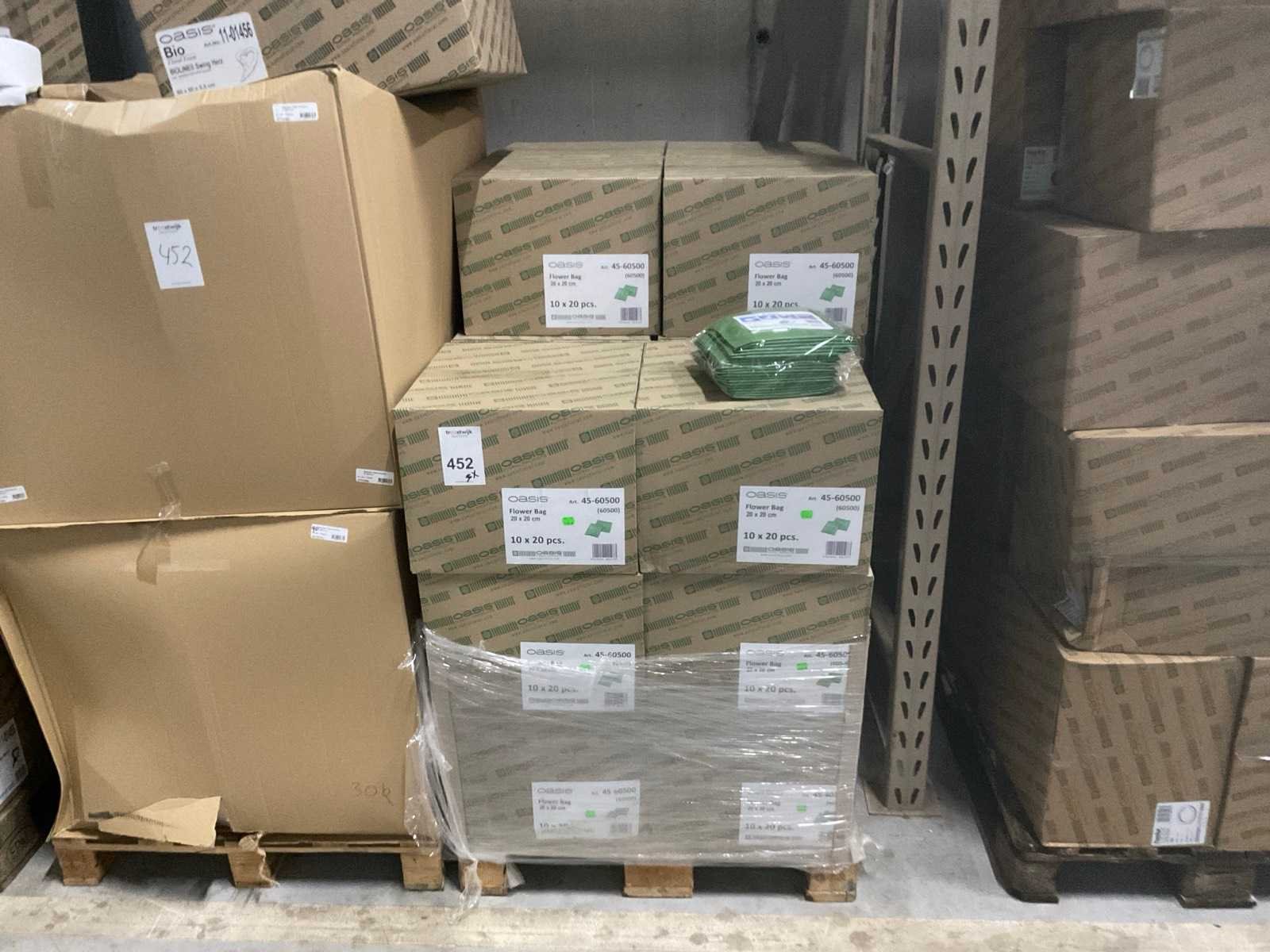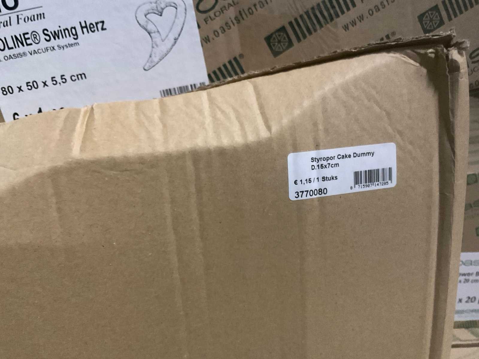 3 pallets, o.a. oasis flower bags, styropor cake dummy’s, oasis huilend hart, inclusief pallets