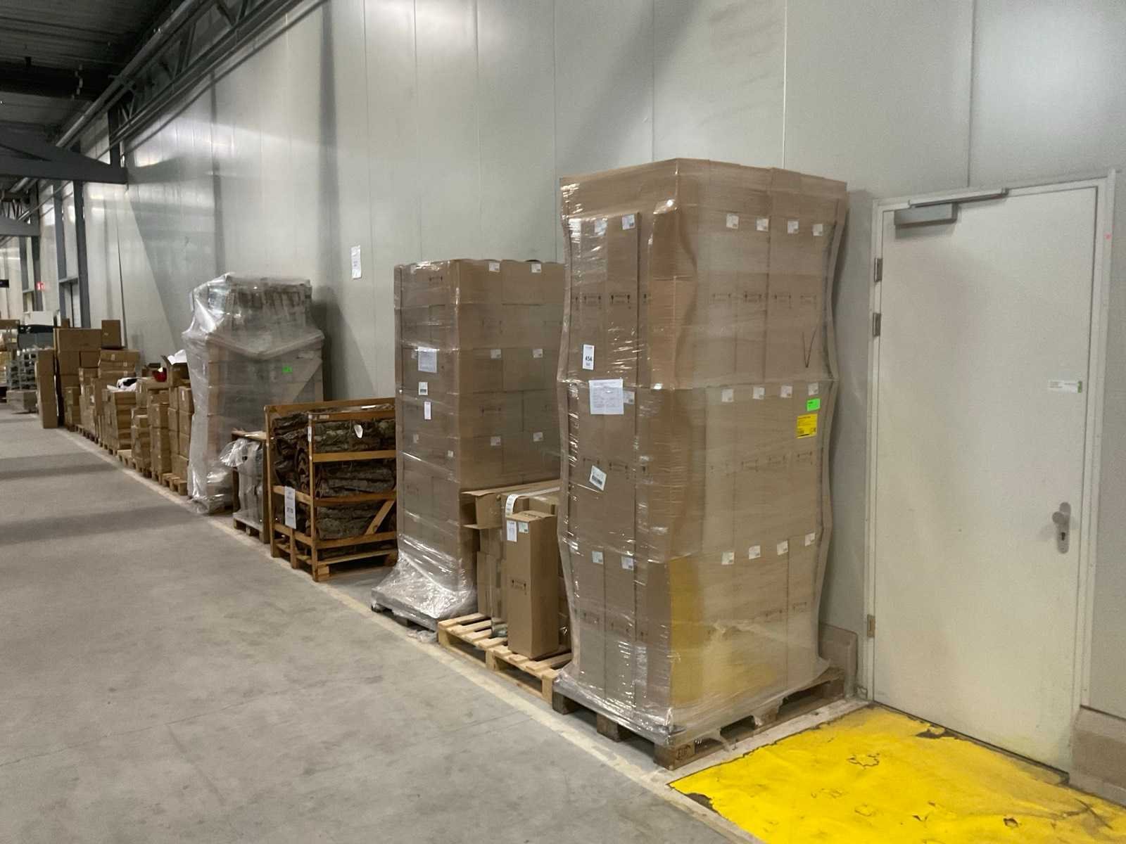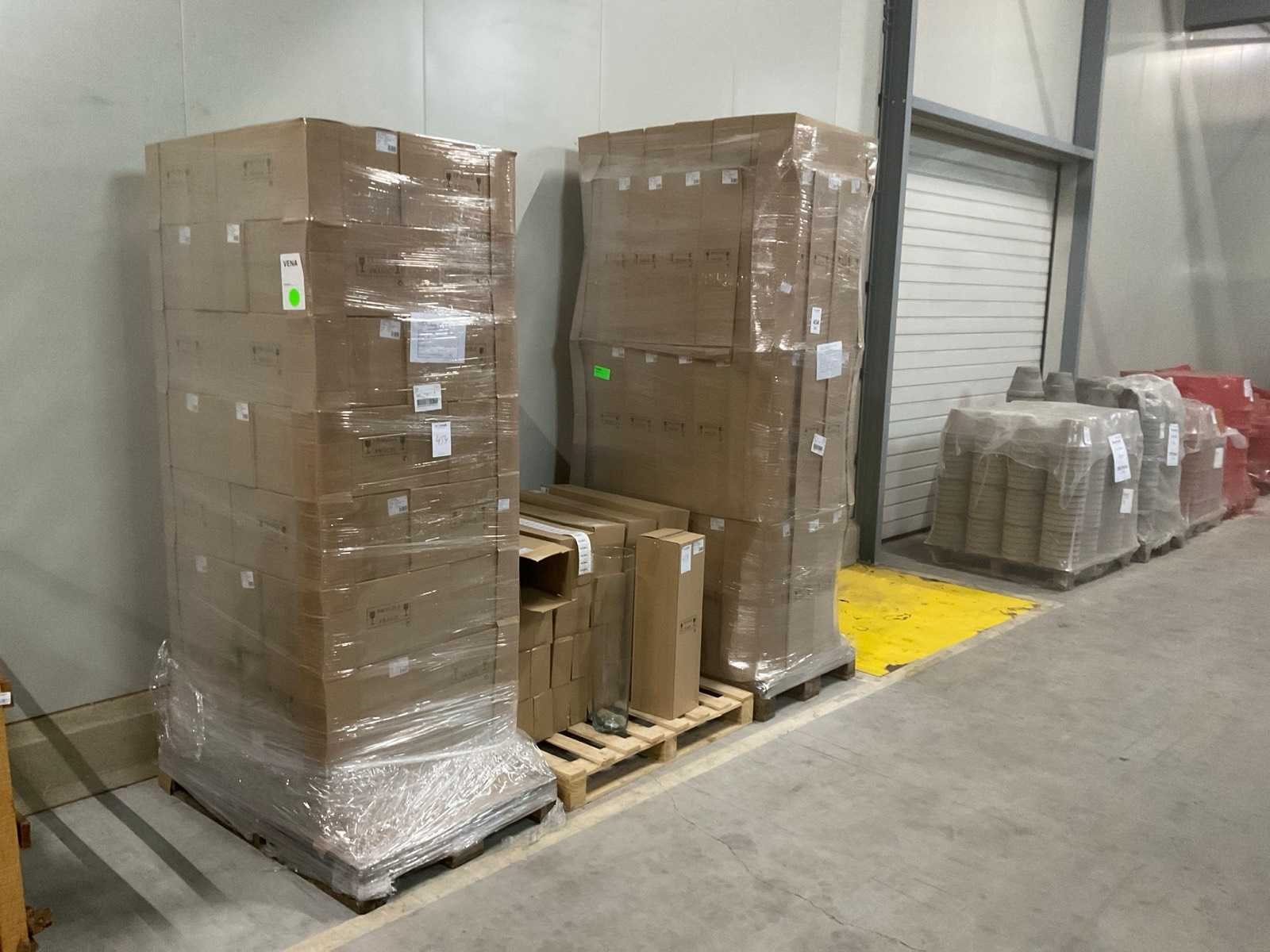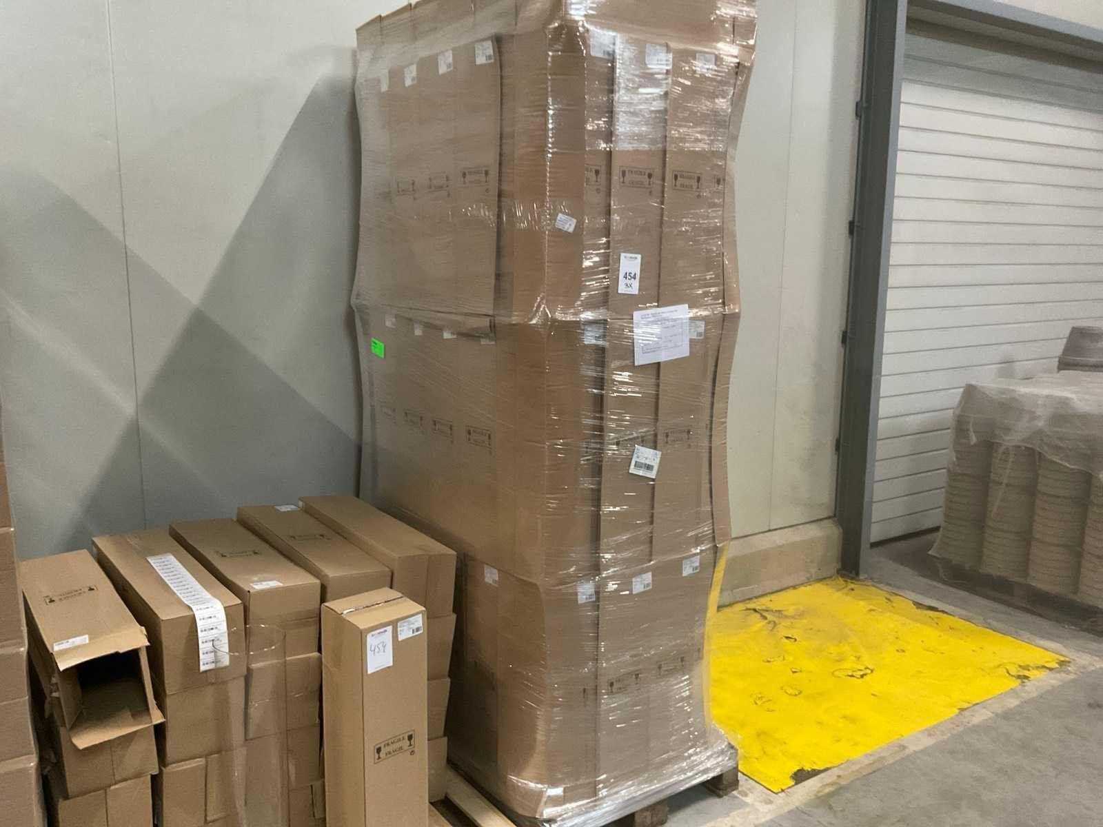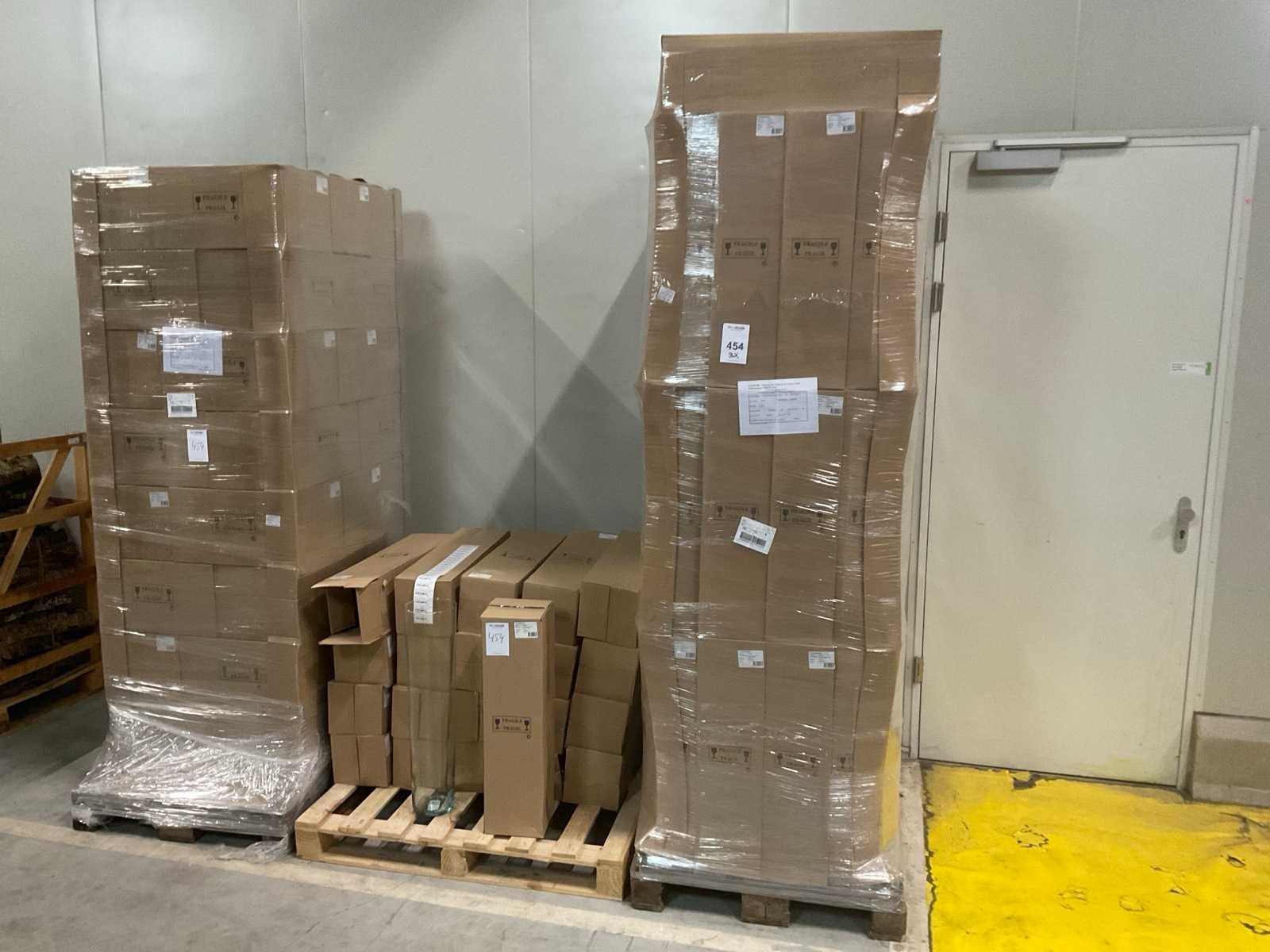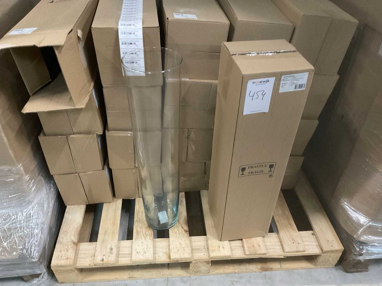 3 pallets, o.a. glazen vazen doorsnee 17cm x 70cm hoog, inclusief pallets