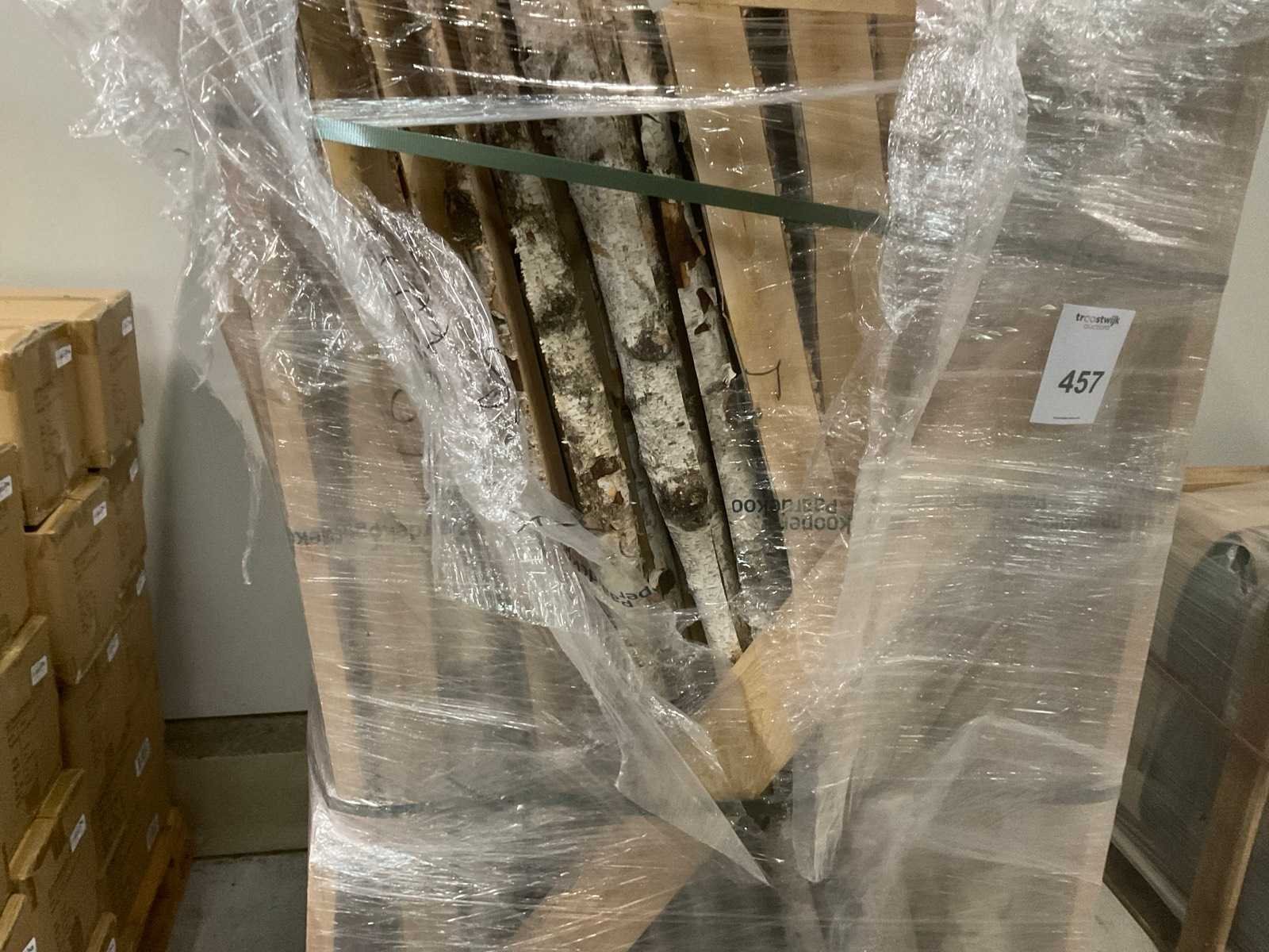 1 pallet halve berken stammen, lengte ca. 200 cm, inclusief pallet
