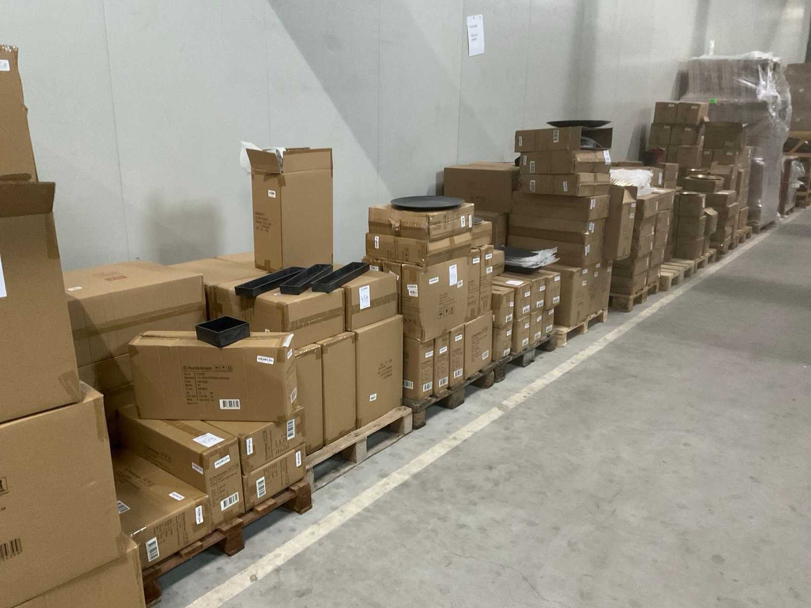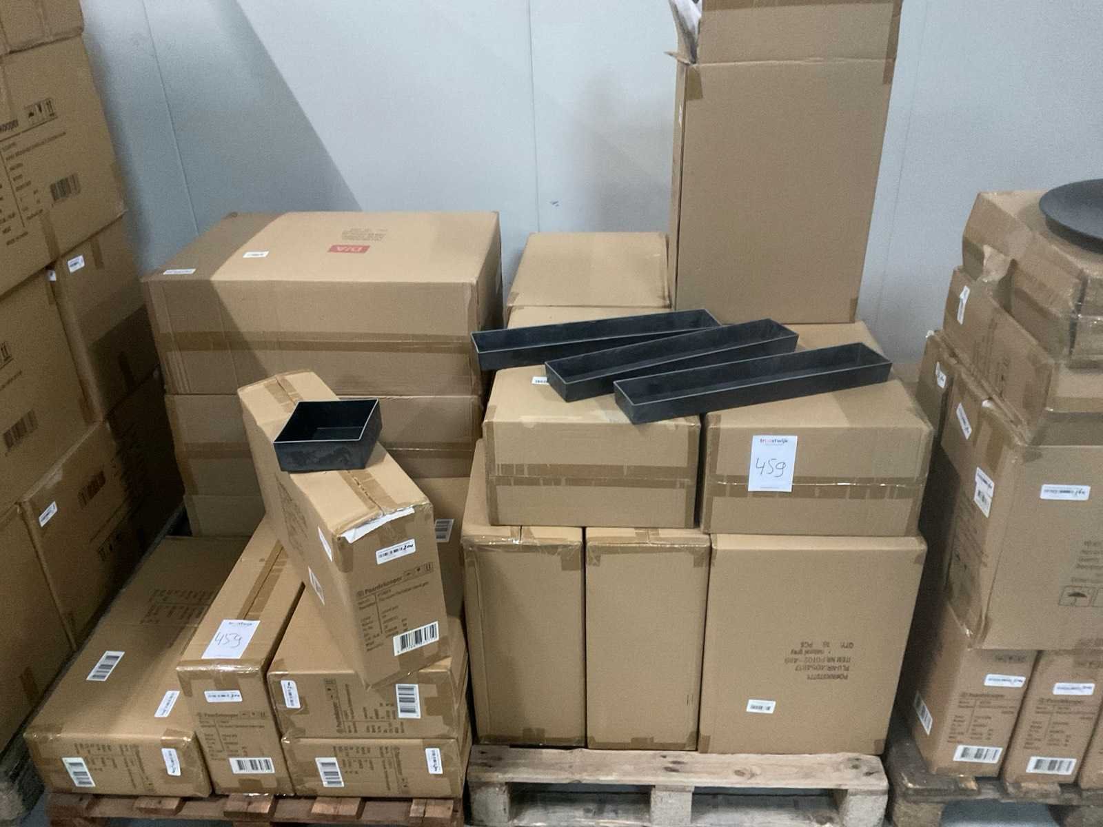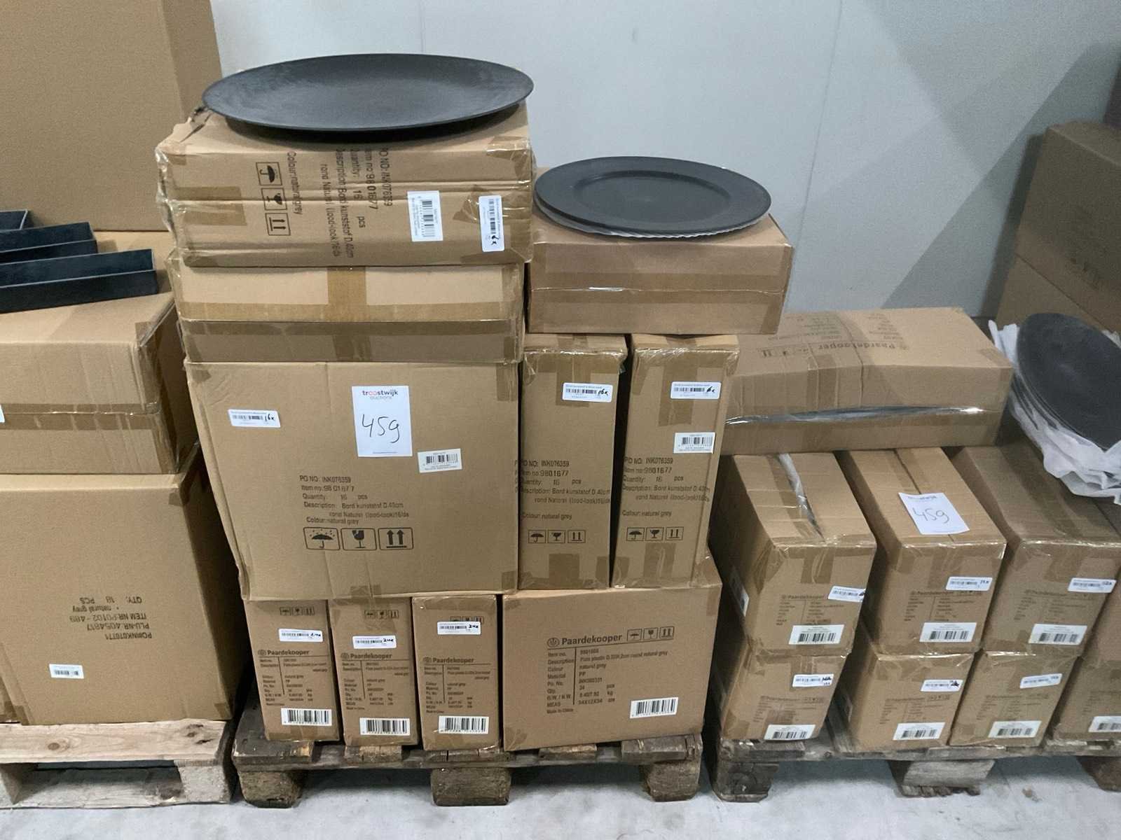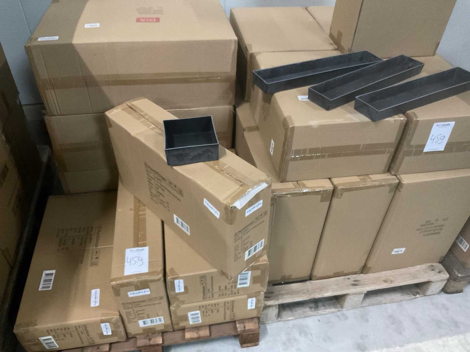 5 pallets, o.a. kunststof schalen, onderborden, tray’s, diverse afmetingen, inclusief pallets