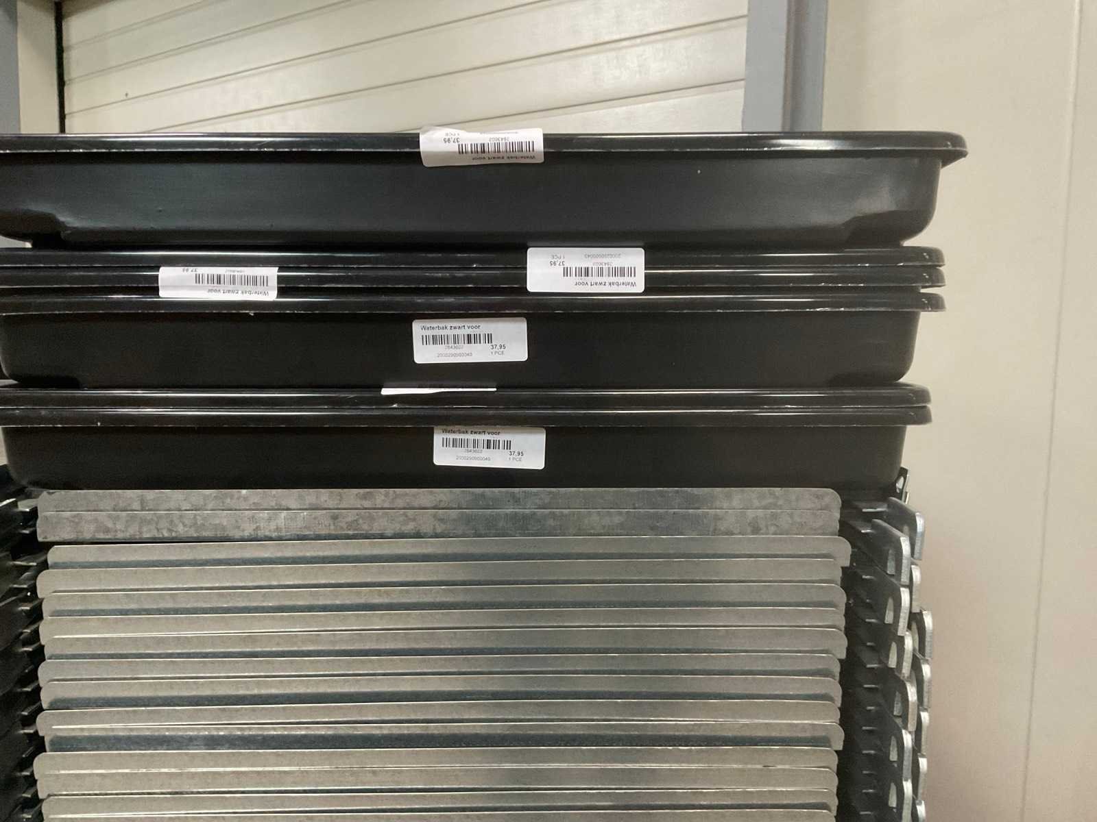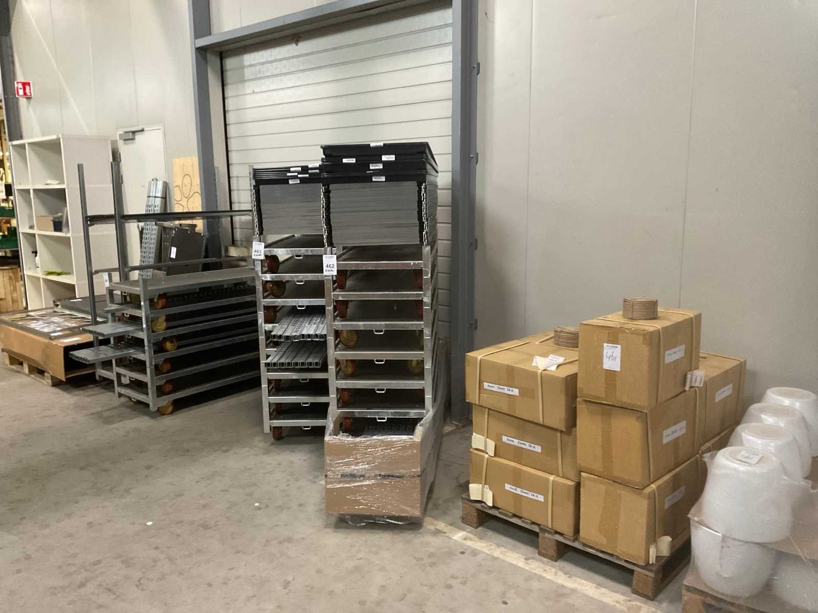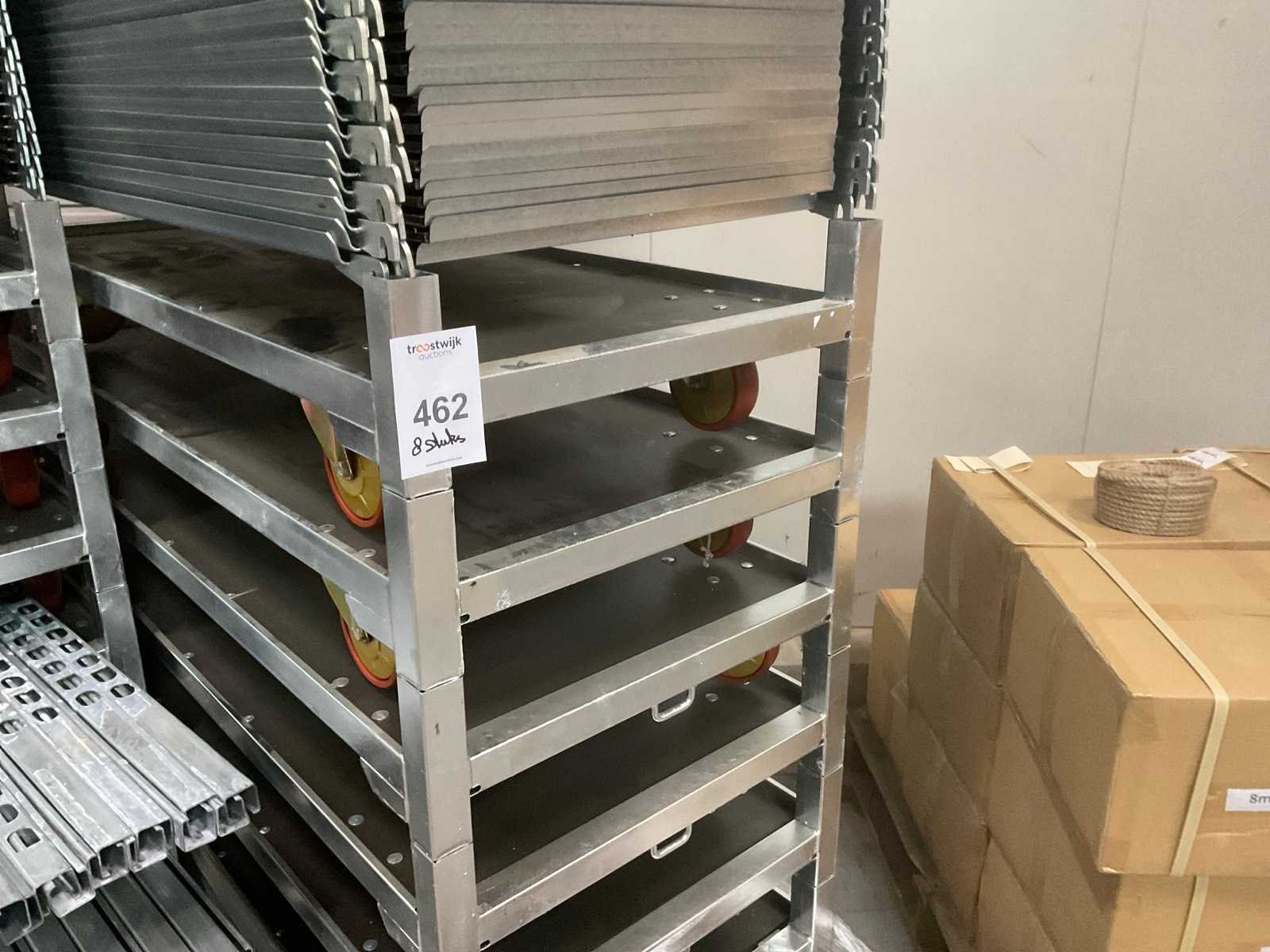 8 stuks Deense kar / bloemenwagen, 32 staanders, 24 legborden en 6 waterbakken zwart