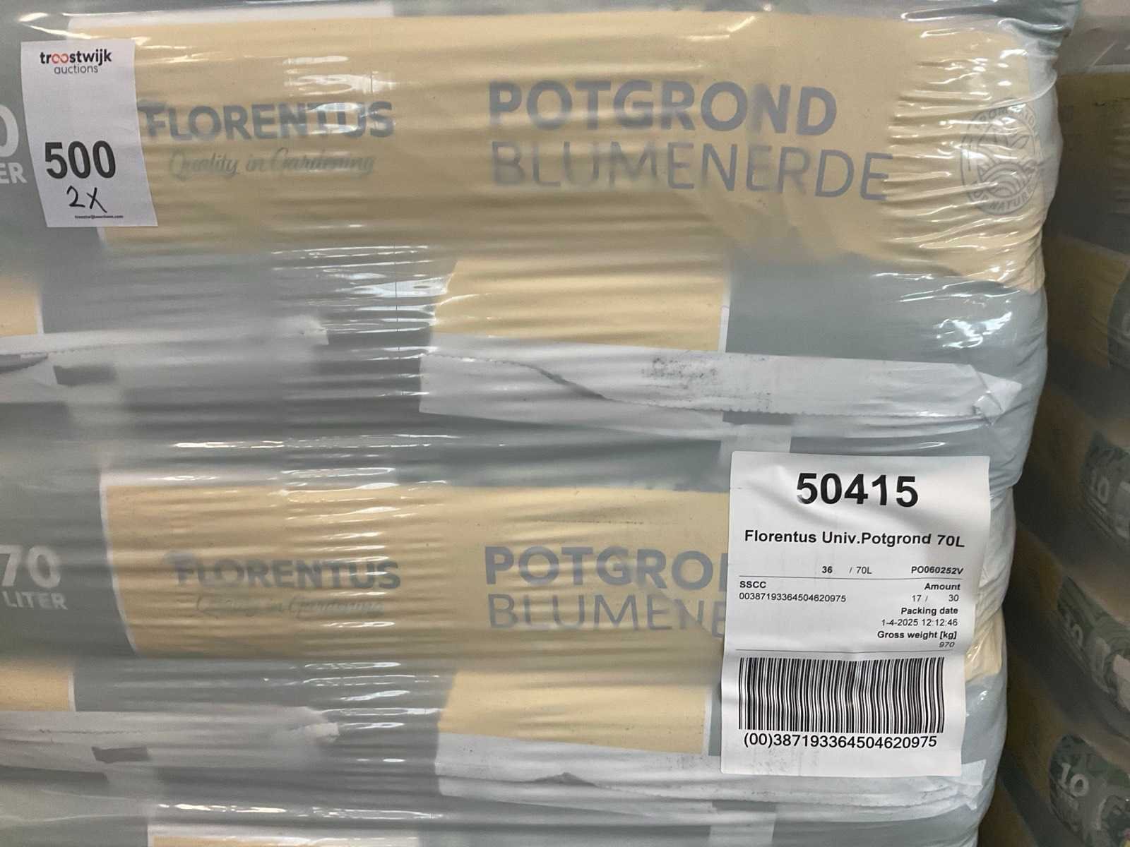 2 pallets potgrond waarvan 1 pallet 36 stuks a 70 liter en 1 pallet 240 stuks a 10 liter. Merk: Florentus Model: Universeel Product type: 70 en 10 liter zakken