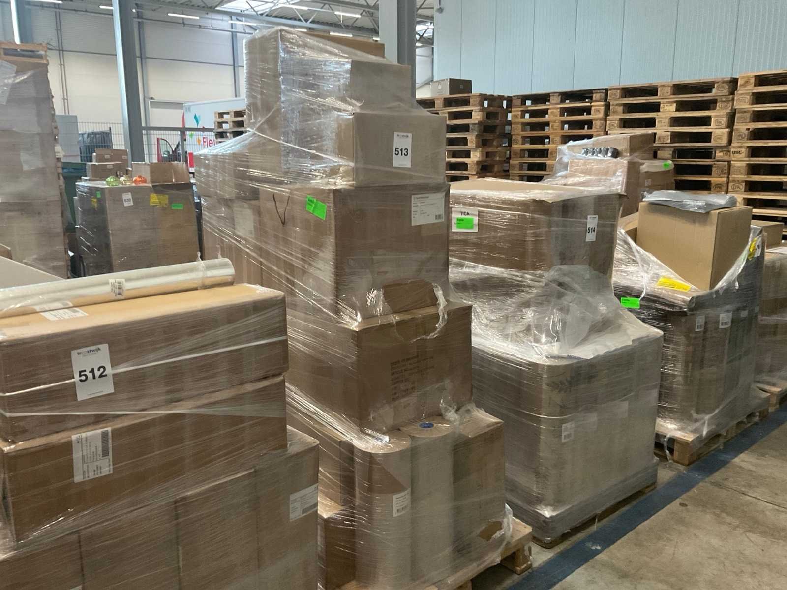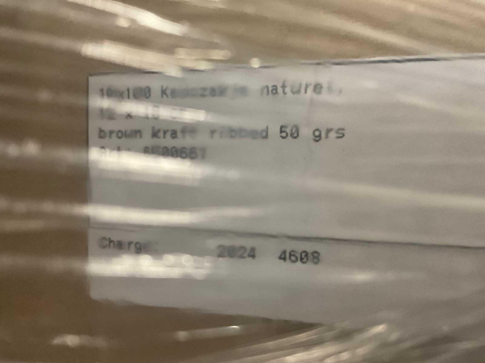 1 pallet decoratie bestaande uit hoedendoos D22xH10cm, bruin, papieren tassen in diverse formaten en kleuren, jute touw, etc, inclusief pallet.