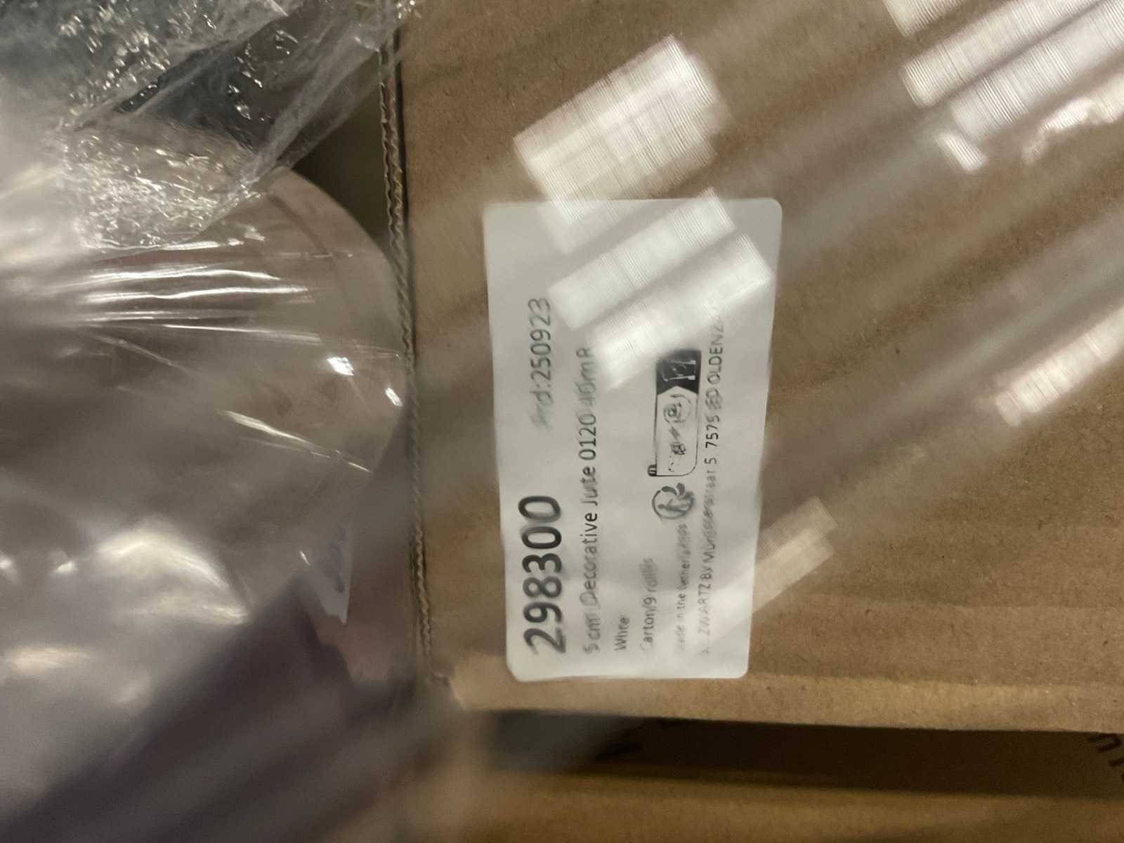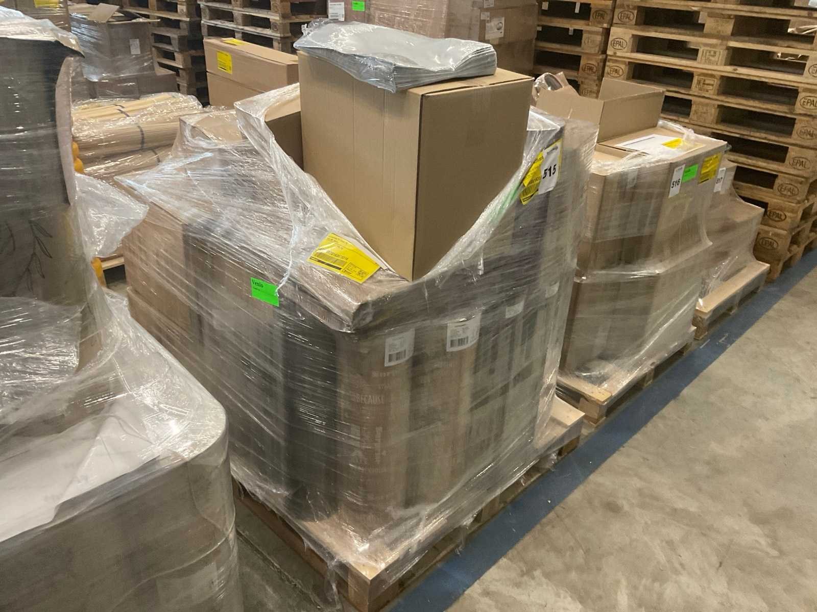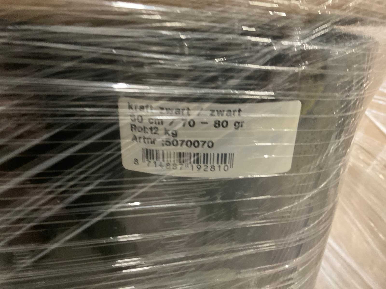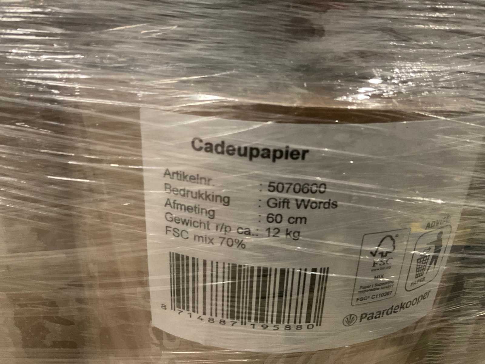 1 pallet bestaande uit rollen verpakkingspapier in diverse kwaliteiten, kleuren en lengtes, papieren zakken, schalen etc,inclusief pallet.