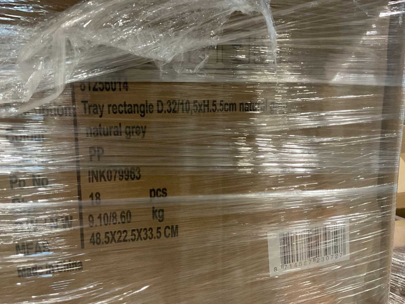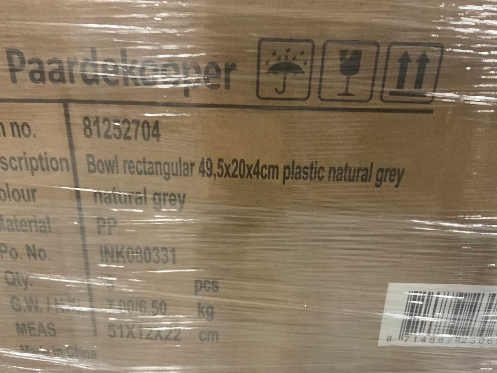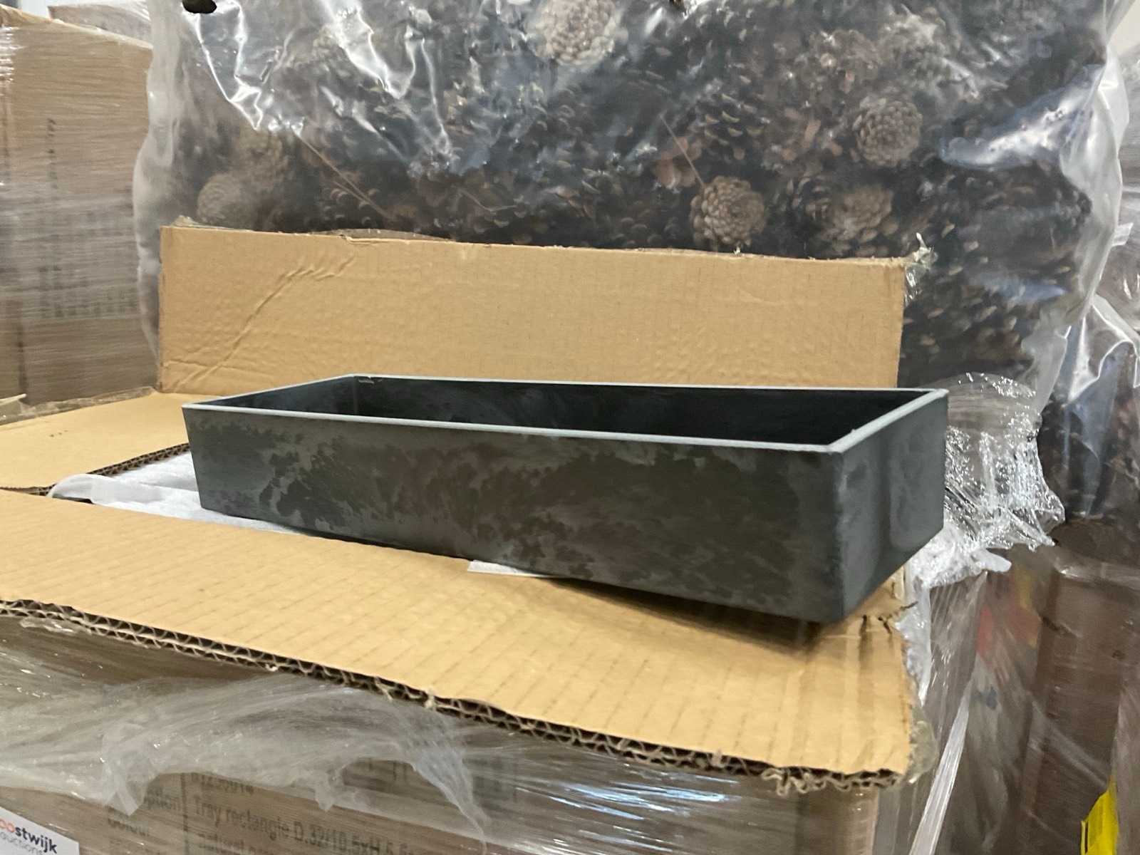1 pallet plantenbakken in diverse maten, kleur natural grey, kunststof, o.a. rectrangle 32x10x5, bowl rectangular 49x20x4 cm, etc, inclusief pallet.