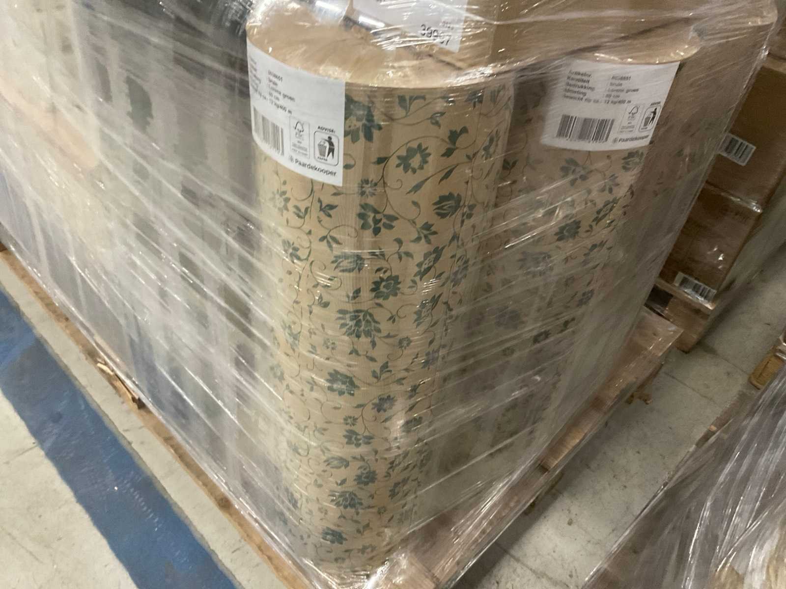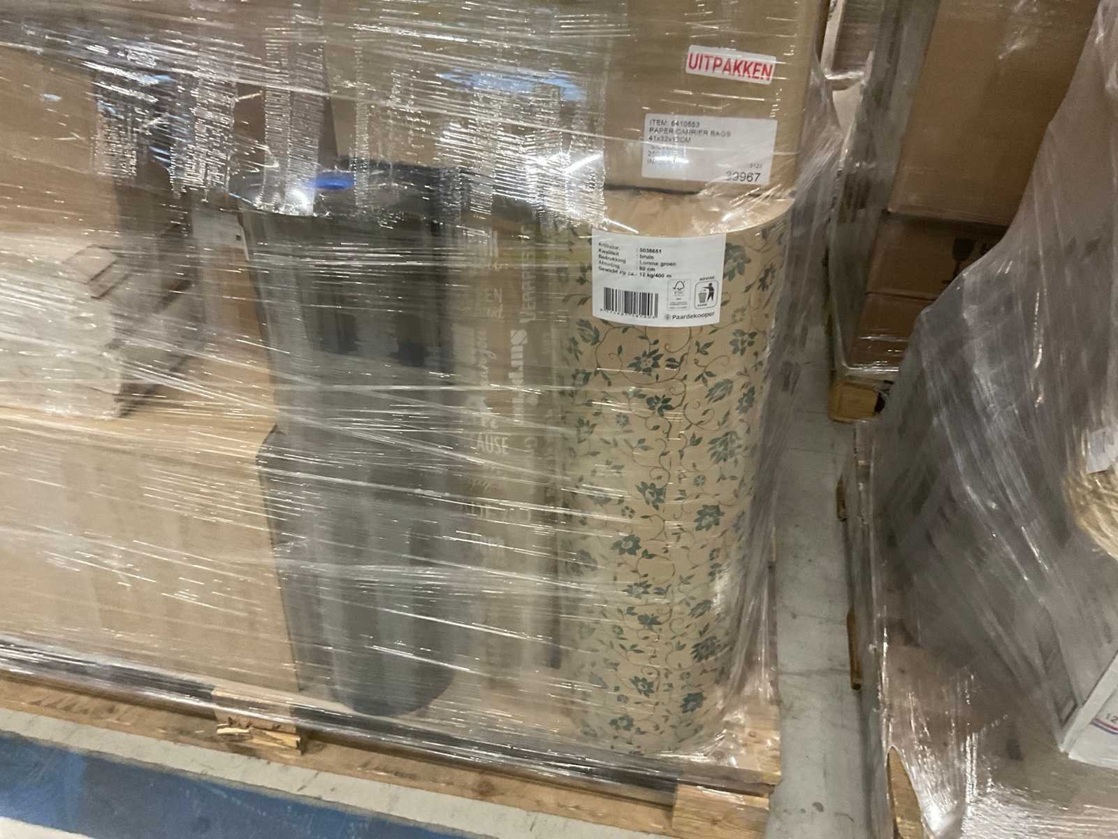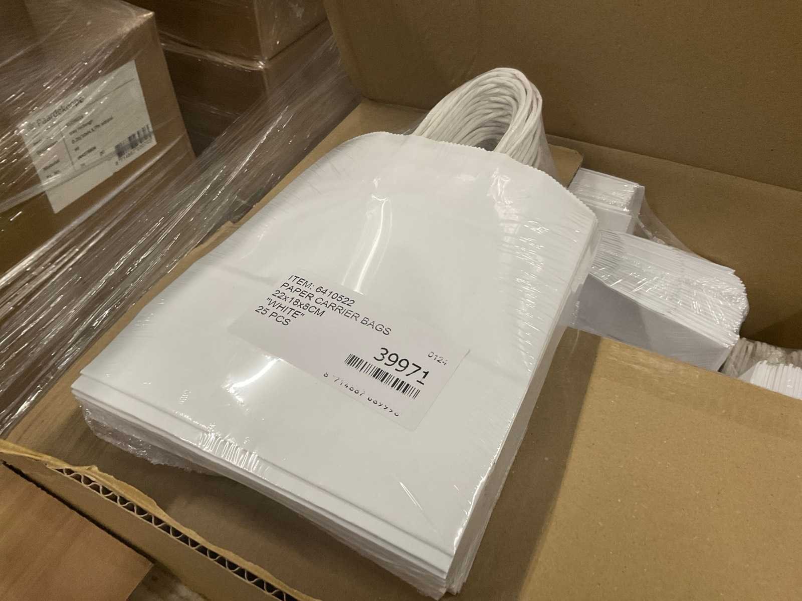1 pallet met o.a. tassen, white, 22x18x8 cm, krullint 4,8 mm x 500 m, vilt met jute 15 cm, etc, inclusief pallet.