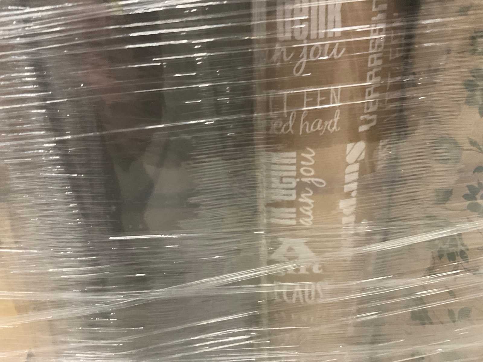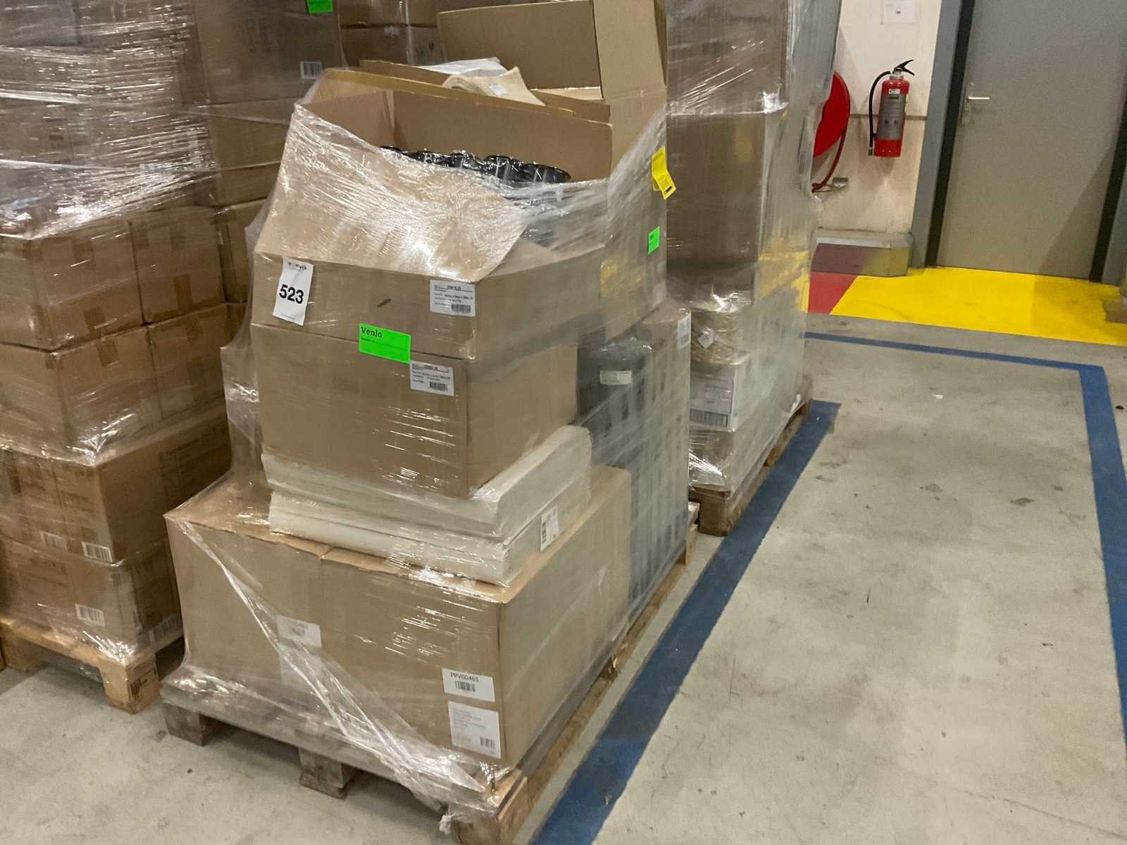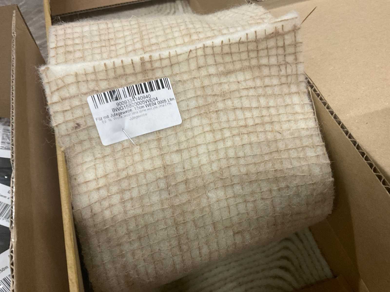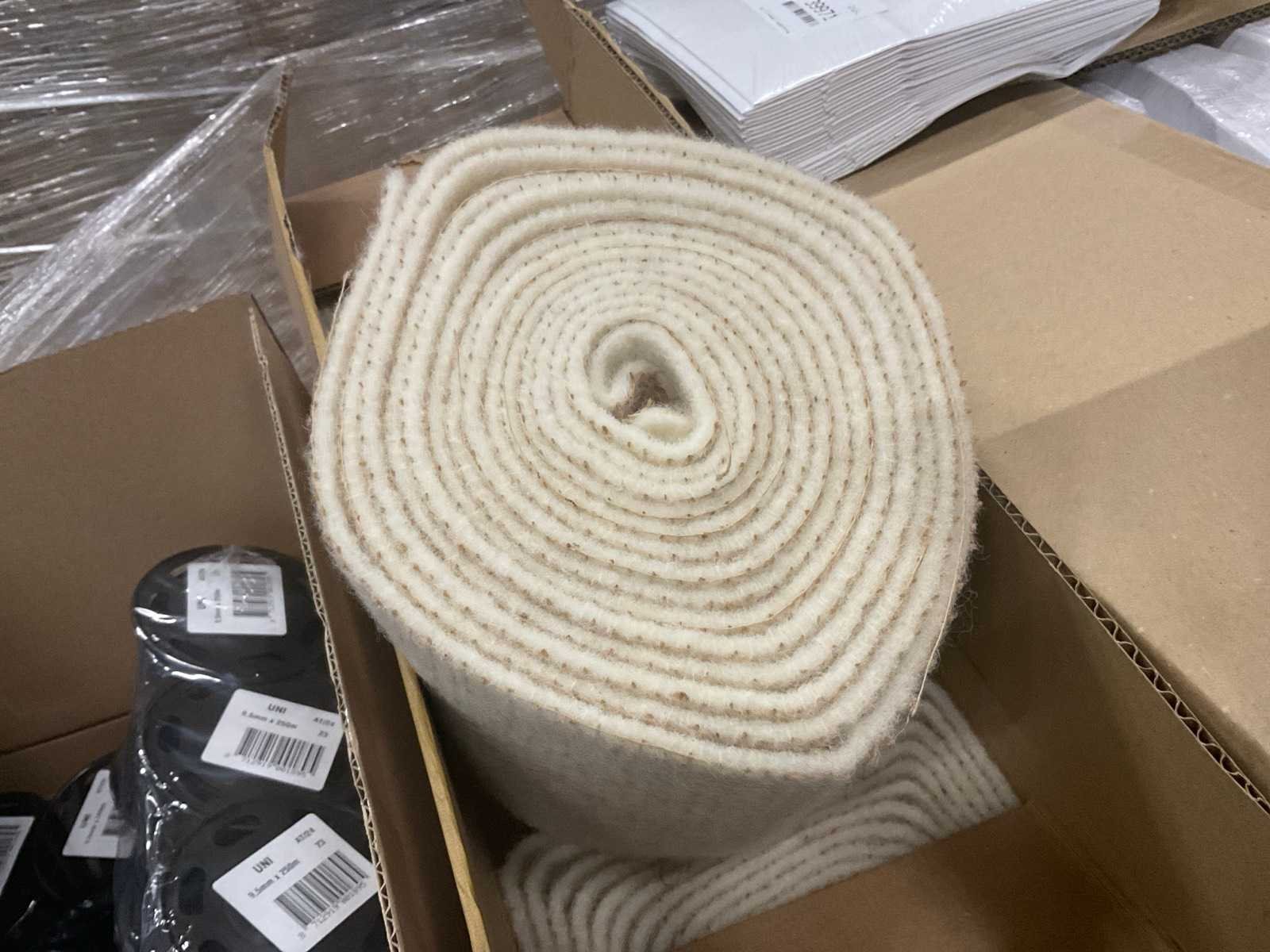 1 pallet met o.a. tassen, white, 22x18x8 cm, krullint 4,8 mm x 500 m, vilt met jute 15 cm, etc, inclusief pallet.