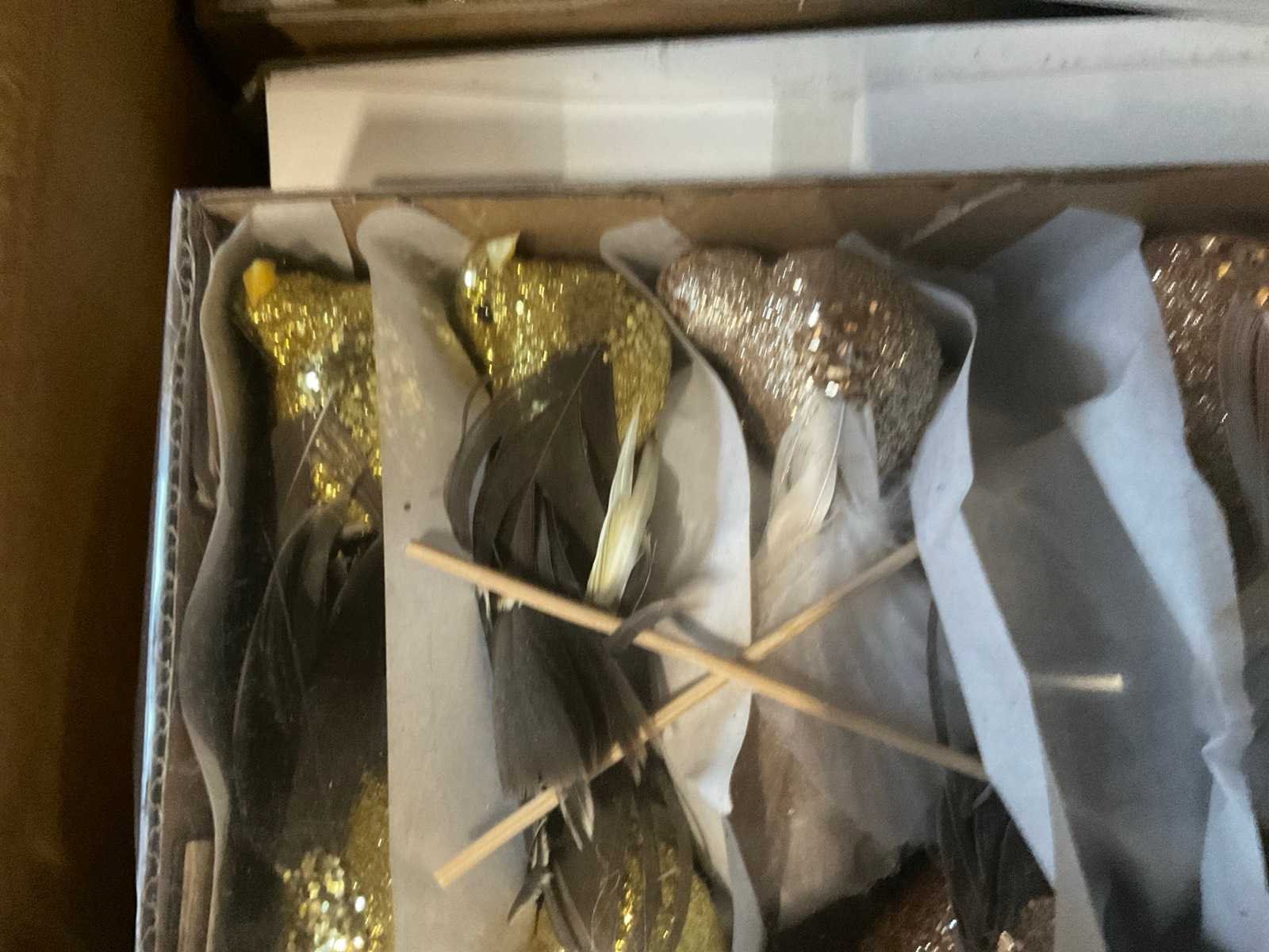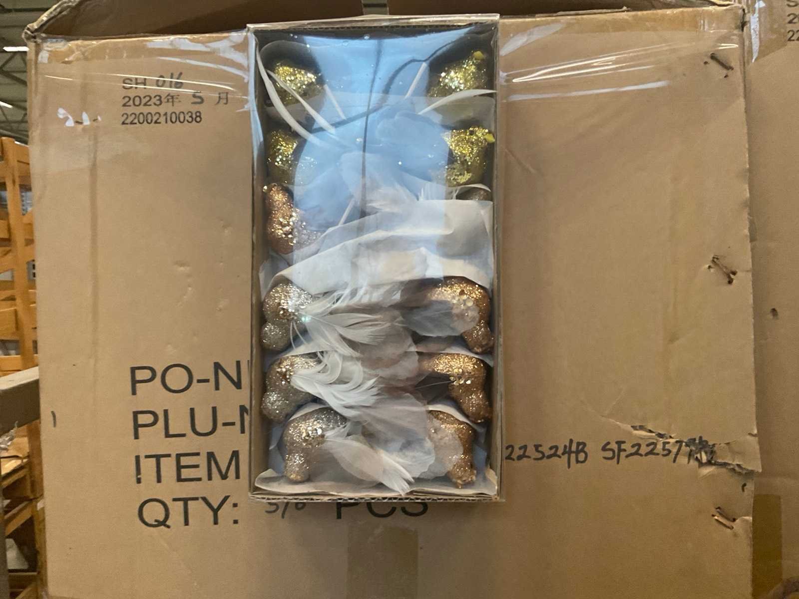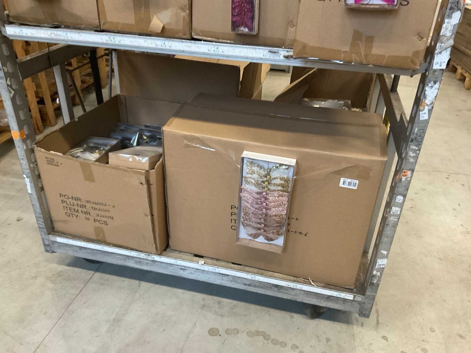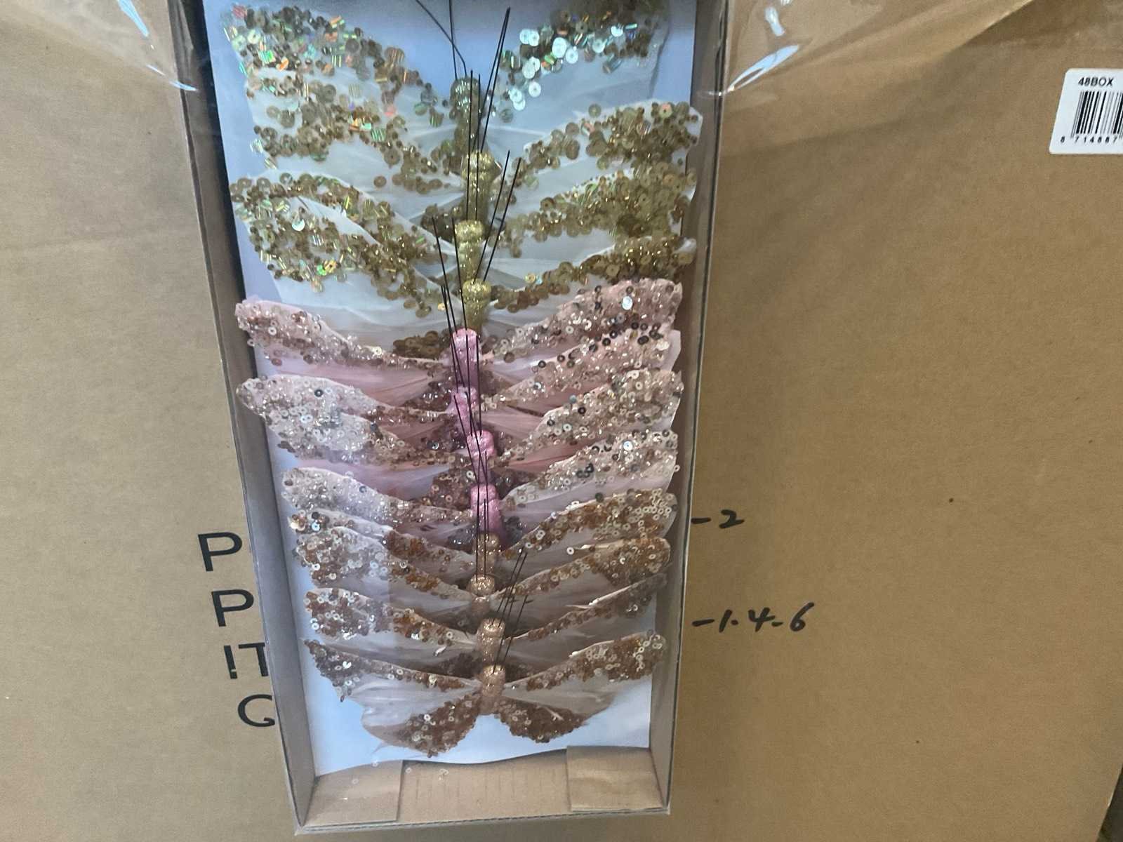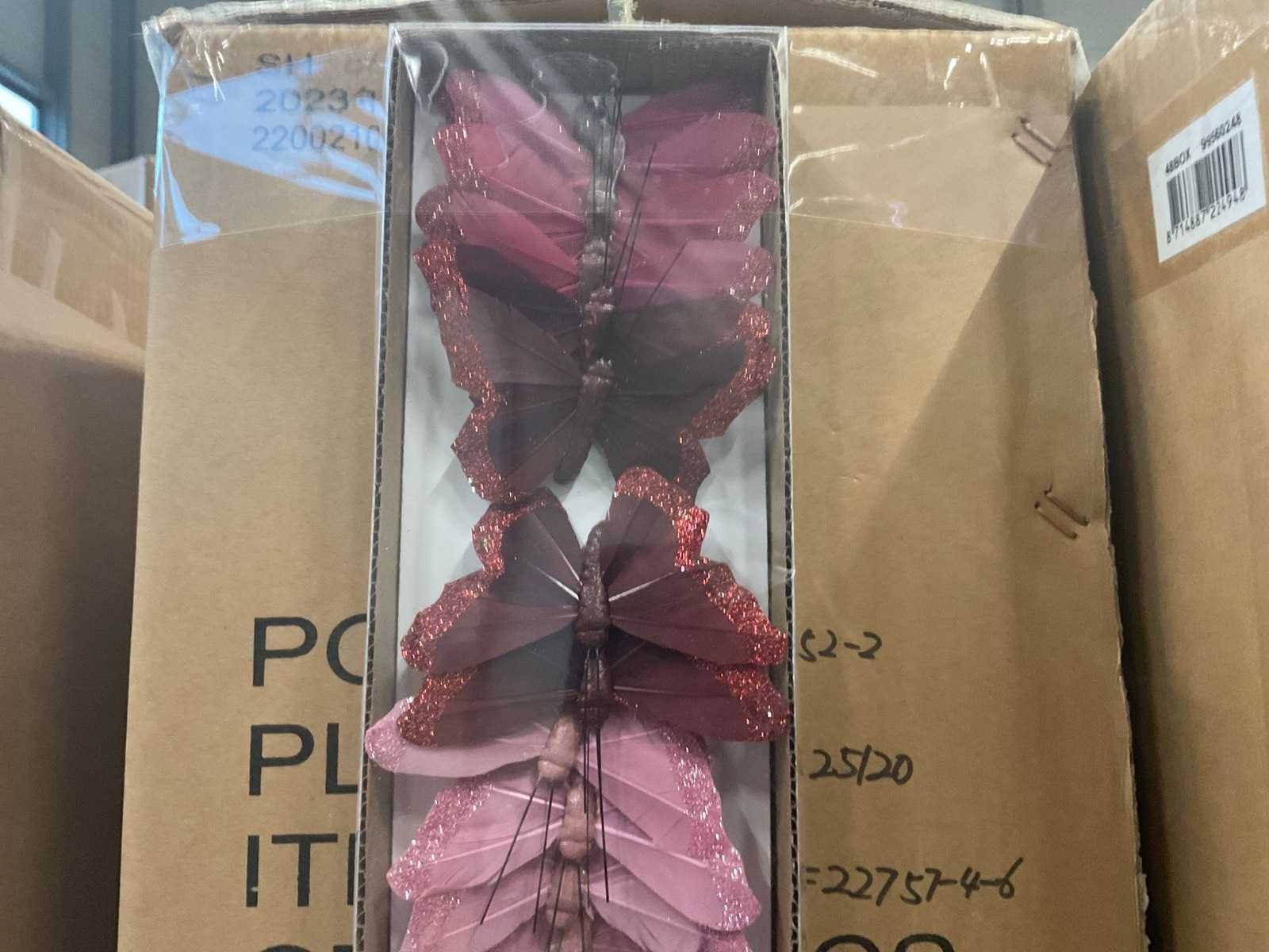 Diverse decoratievlinders in verschillende maten, soorten en kleuren, inclusief diverse andere decoratie stukken zoals instellers, wagen niet inbegrepen.
