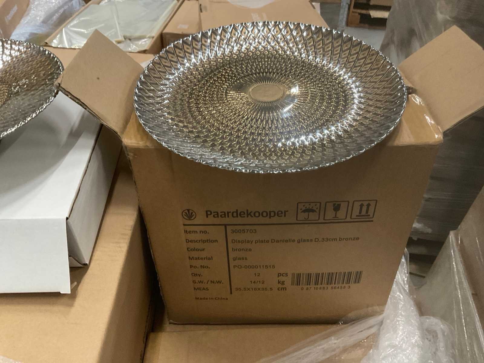1 pallet, diverse afmetingen glazen borden, inclusief pallet