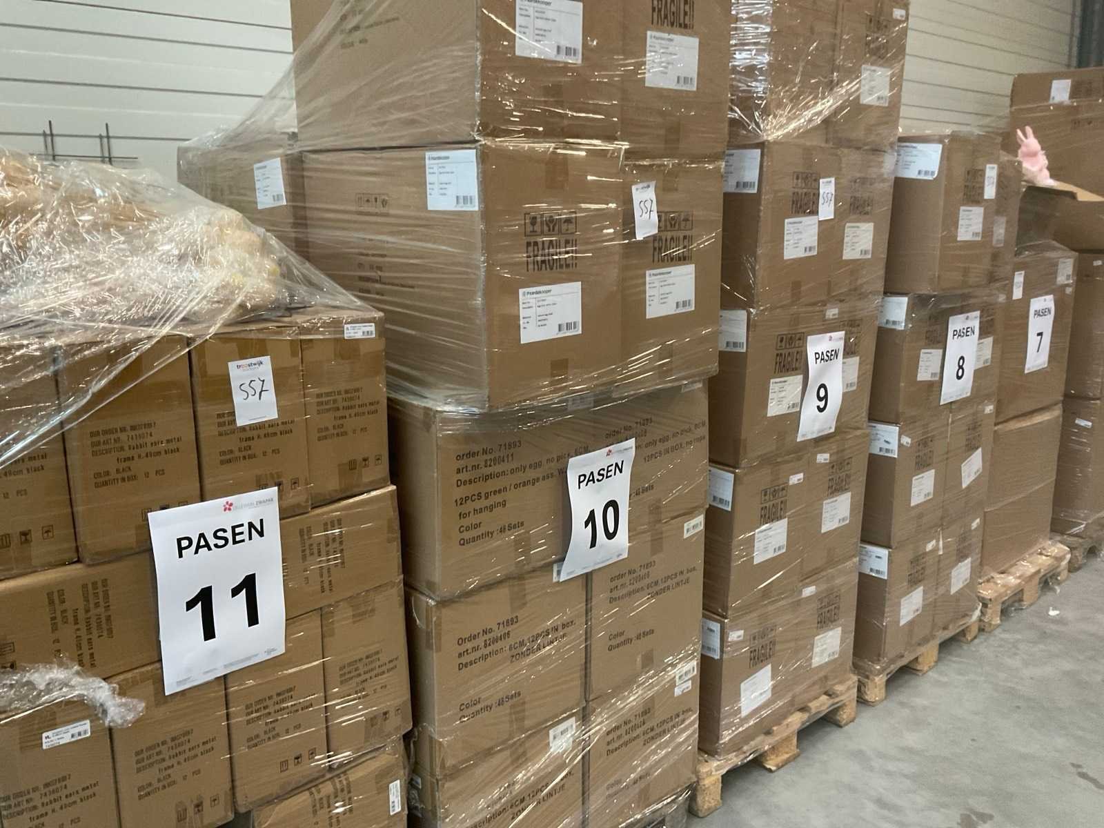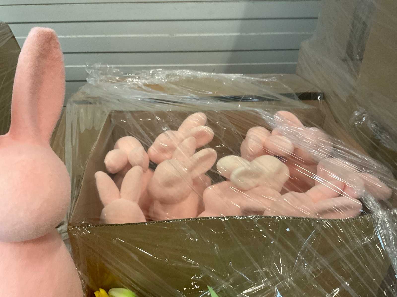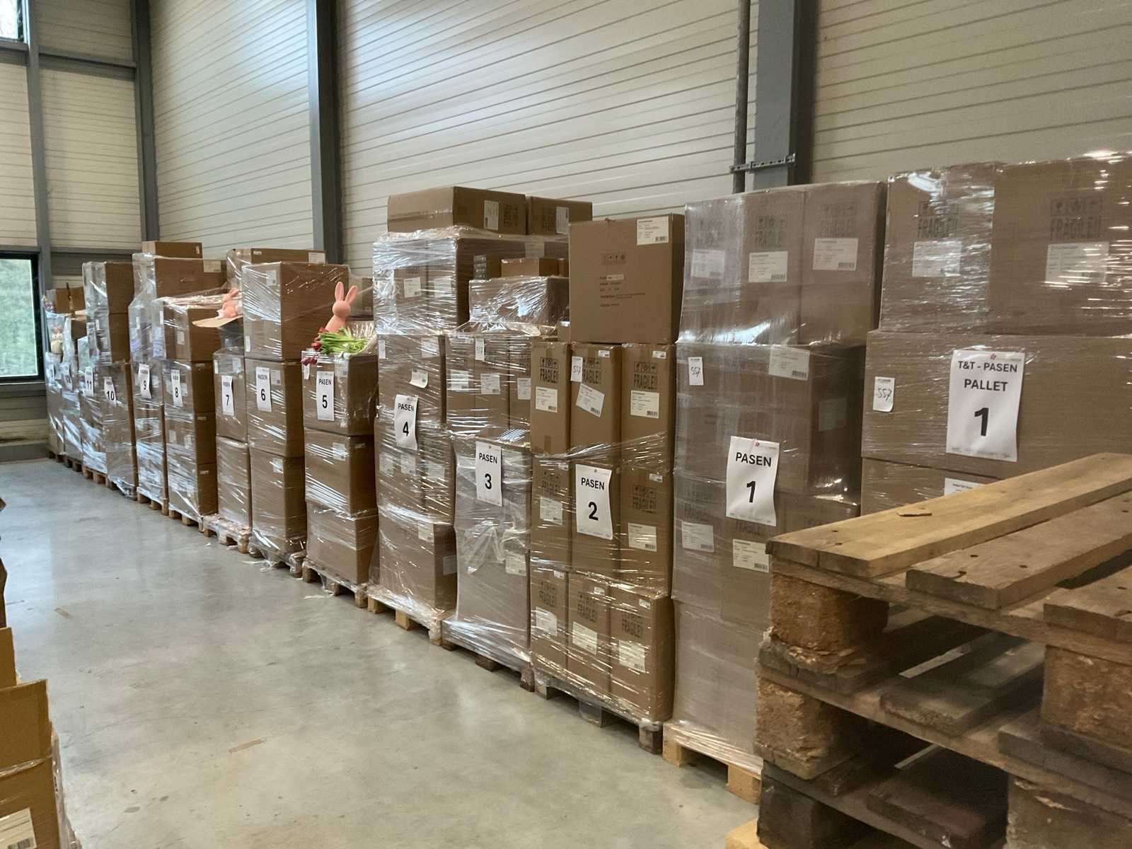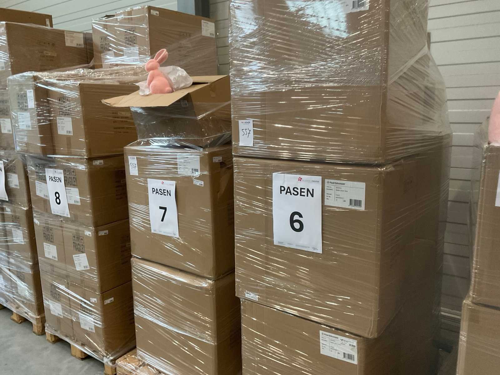 14 pallets, diverse paas artikelen, o.a. decoratie, diverse kleuren paaseieren, paashazen, inclusief pallets