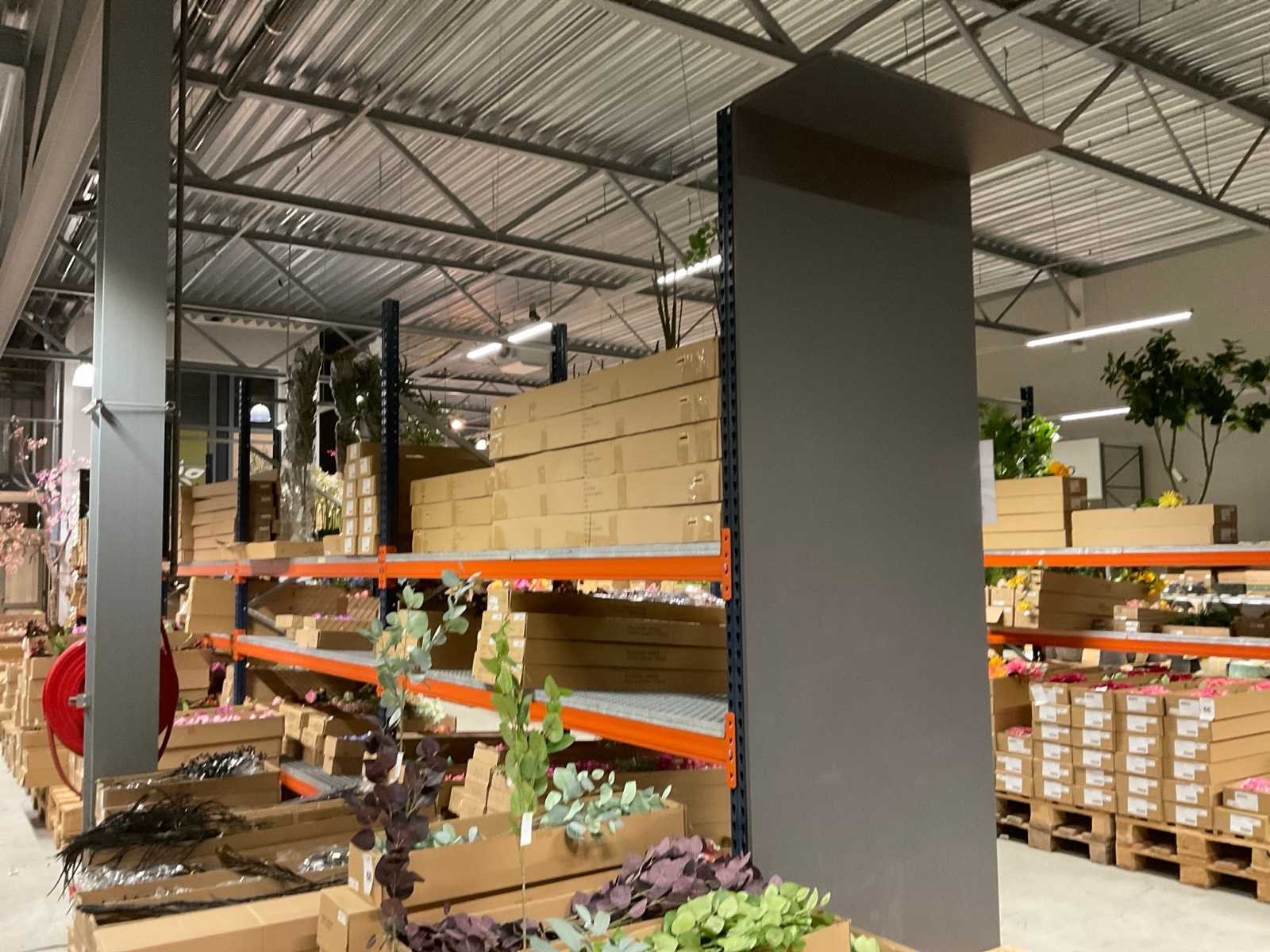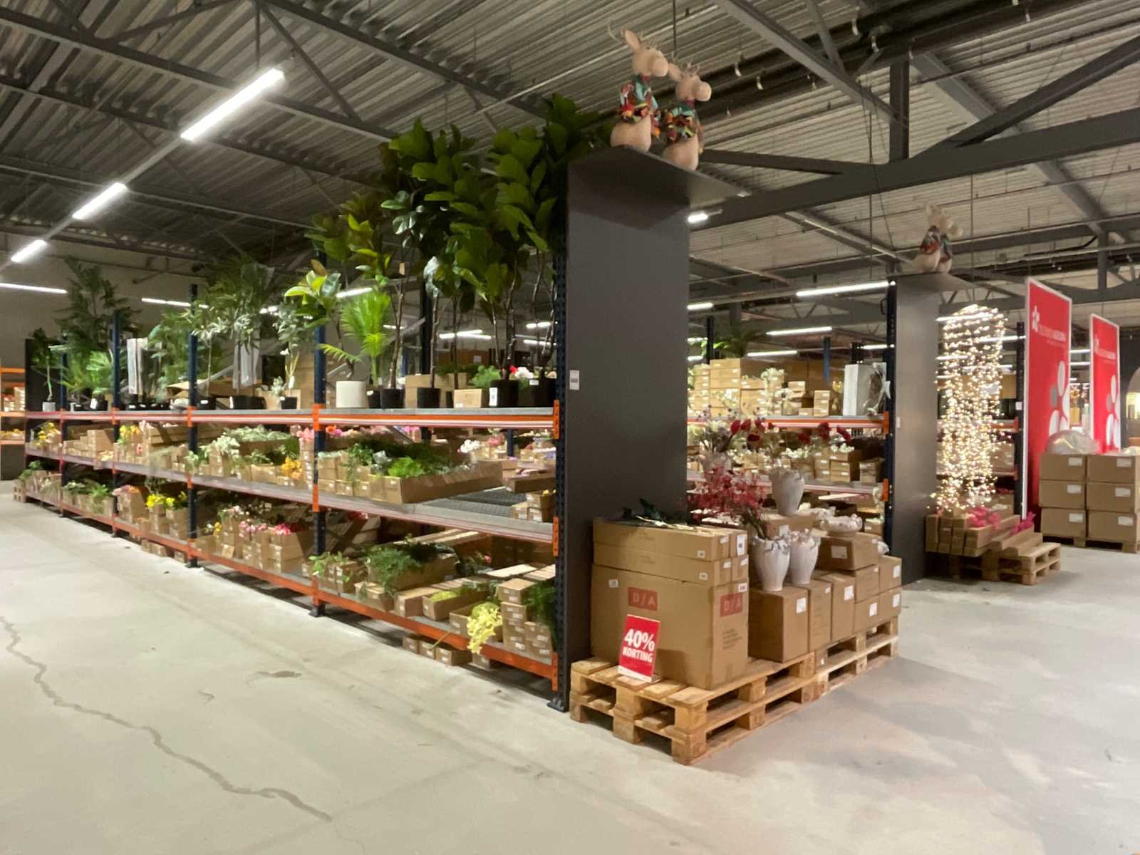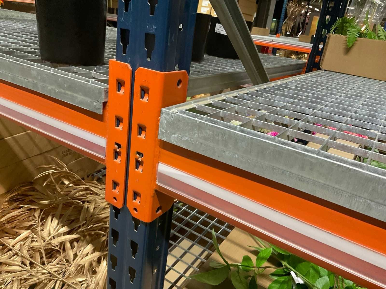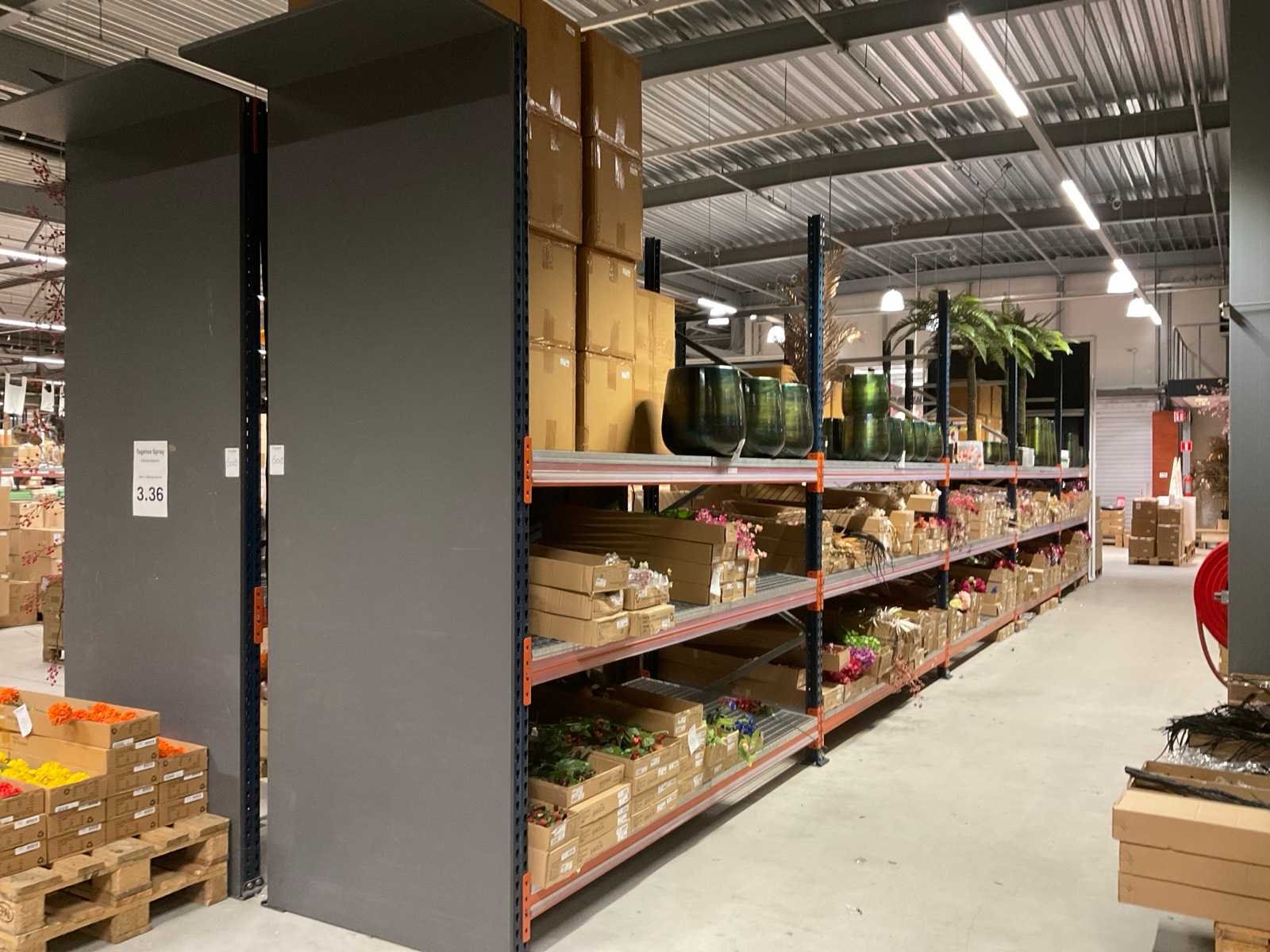 Voorzien van grijze zijpanelen (waarvan 6 stuks voorzien van topblad) metalen rooster legborden Reclameframes met rood doek niet inbegrepen De inhoud van de stellingen is niet inbegrepen. Aantal secties: 5 Sectie afm. b: 2700mm Sectie diepte: 1100mm Sectie afm. h: 3000mm Aantal staanders: 6 Aantal liggers: 30 Aantal legborden: 15 Demontabel: true