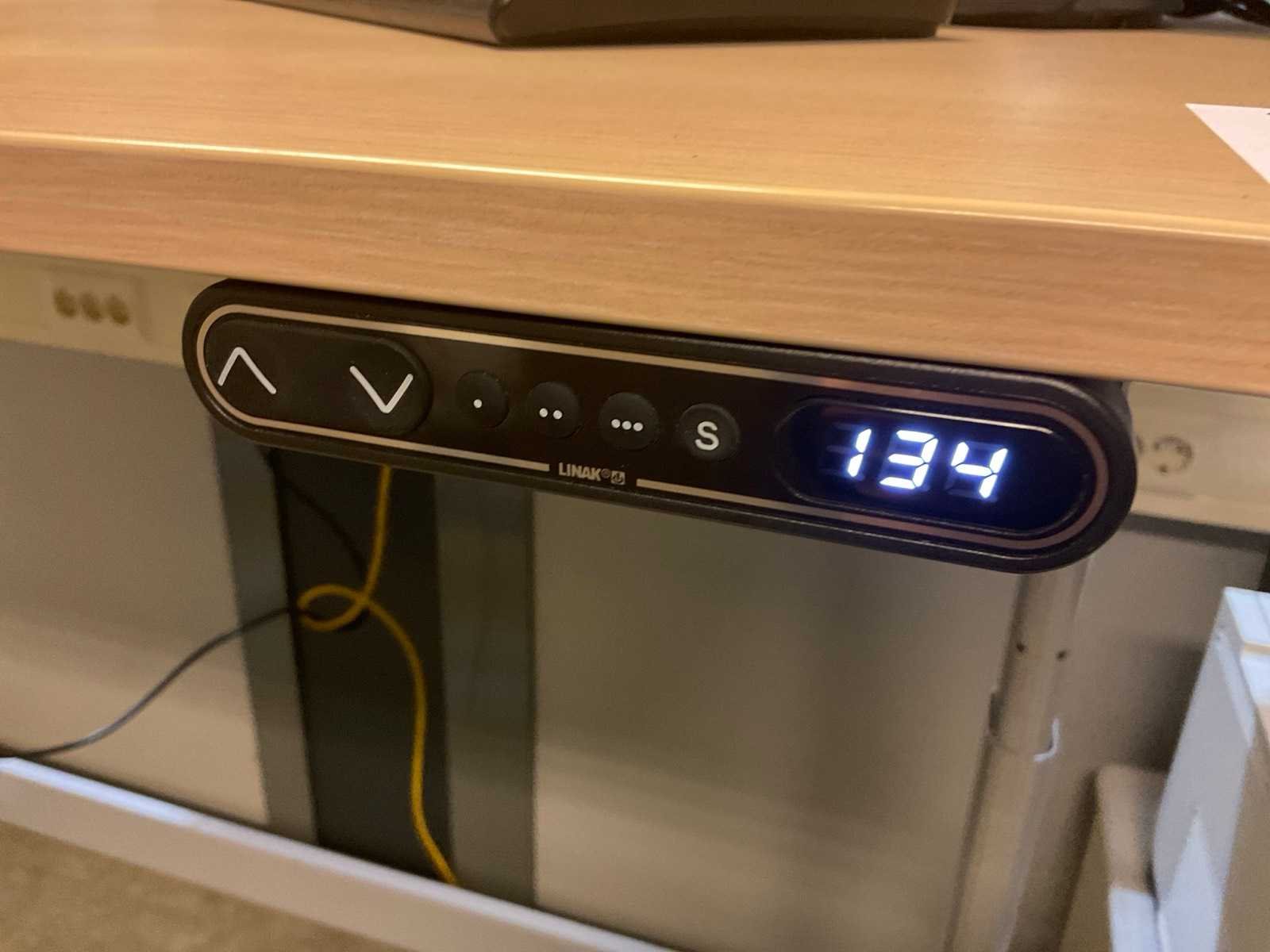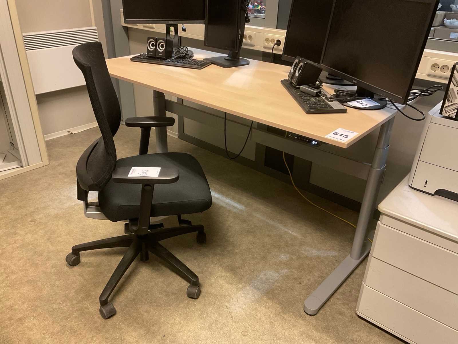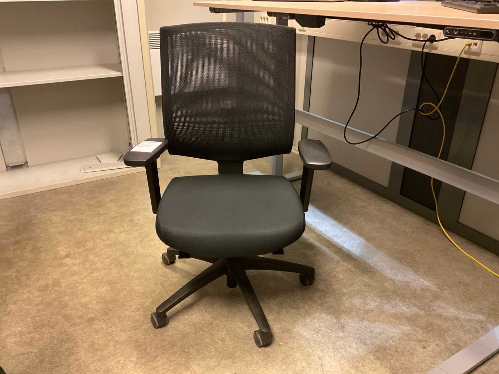 Voorzien van voorkeurstanden, Min hoogte ca. 68 cm Max hoogte ca. cm En bureaustoel voorzien van in hoogte verstelbare armleuningen, netweave rugleuning en zwart gestoffeerde zitting op zwart kunststof voet Monitoren en overige op bureau niet inbegrepen Merk: Klober Zit-sta: true Lengte: 160cm Breedte: 80cm