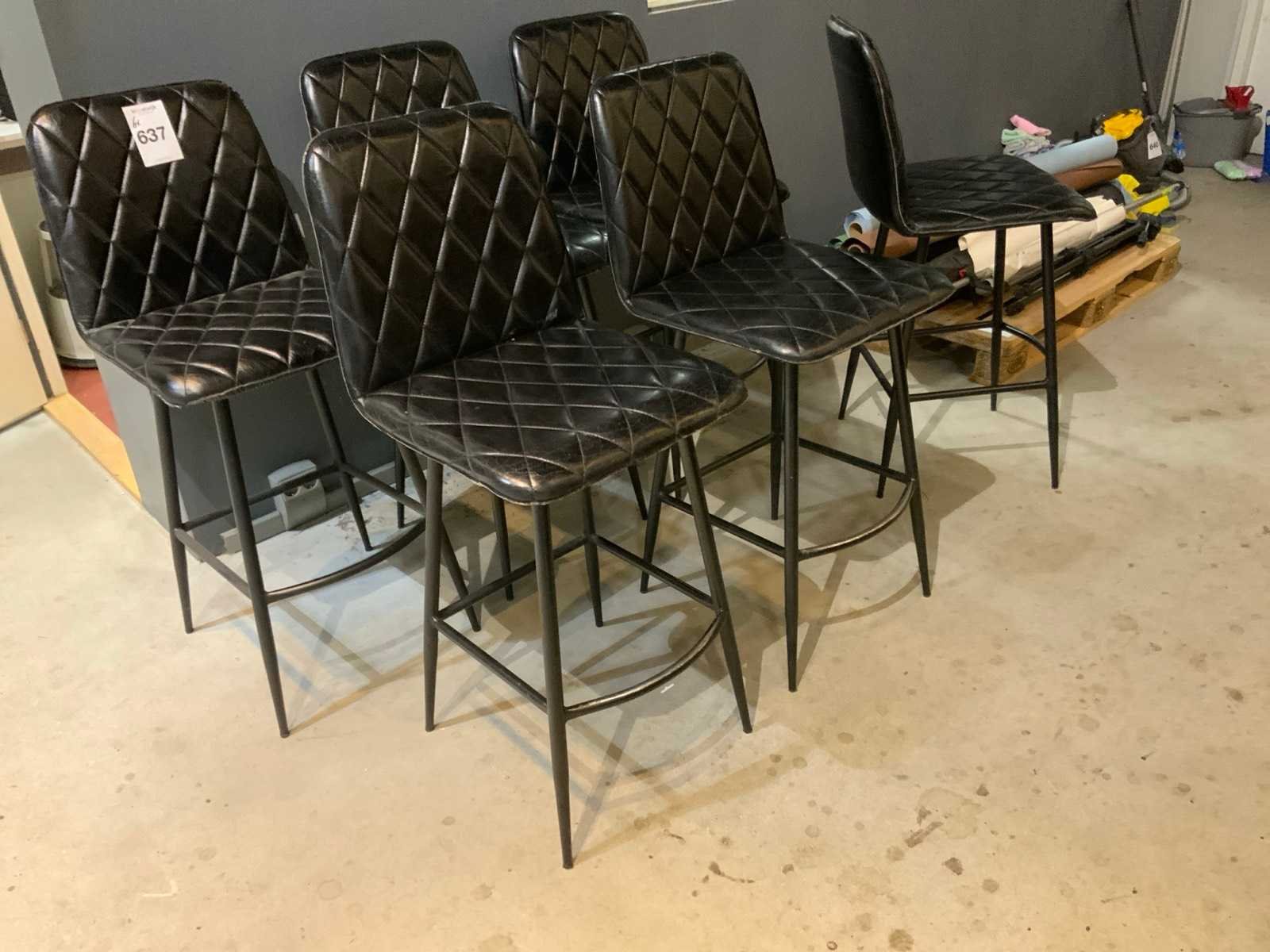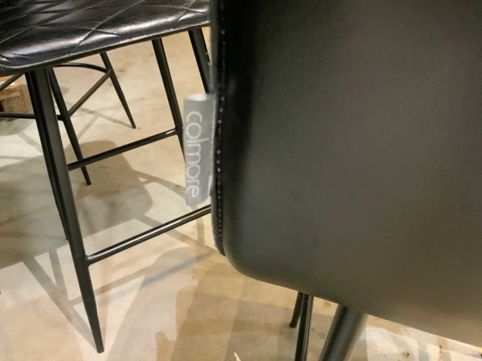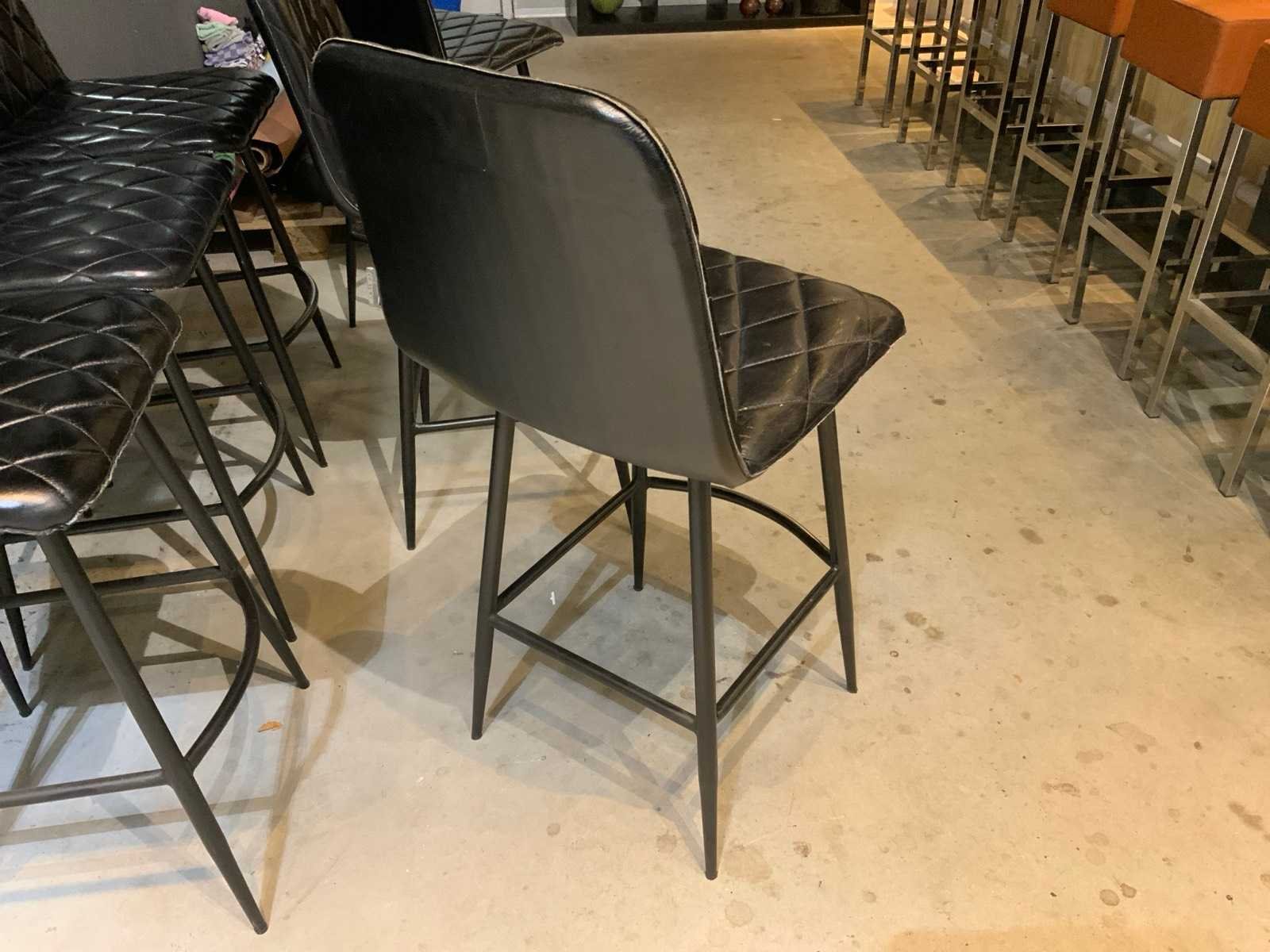 Lederen kruk op metalen onderstel Merk: Colmore Kleur: Zwart Lengte: 50cm Breedte: 47cm Hoogte: 105cm Zithoogte: 70cm