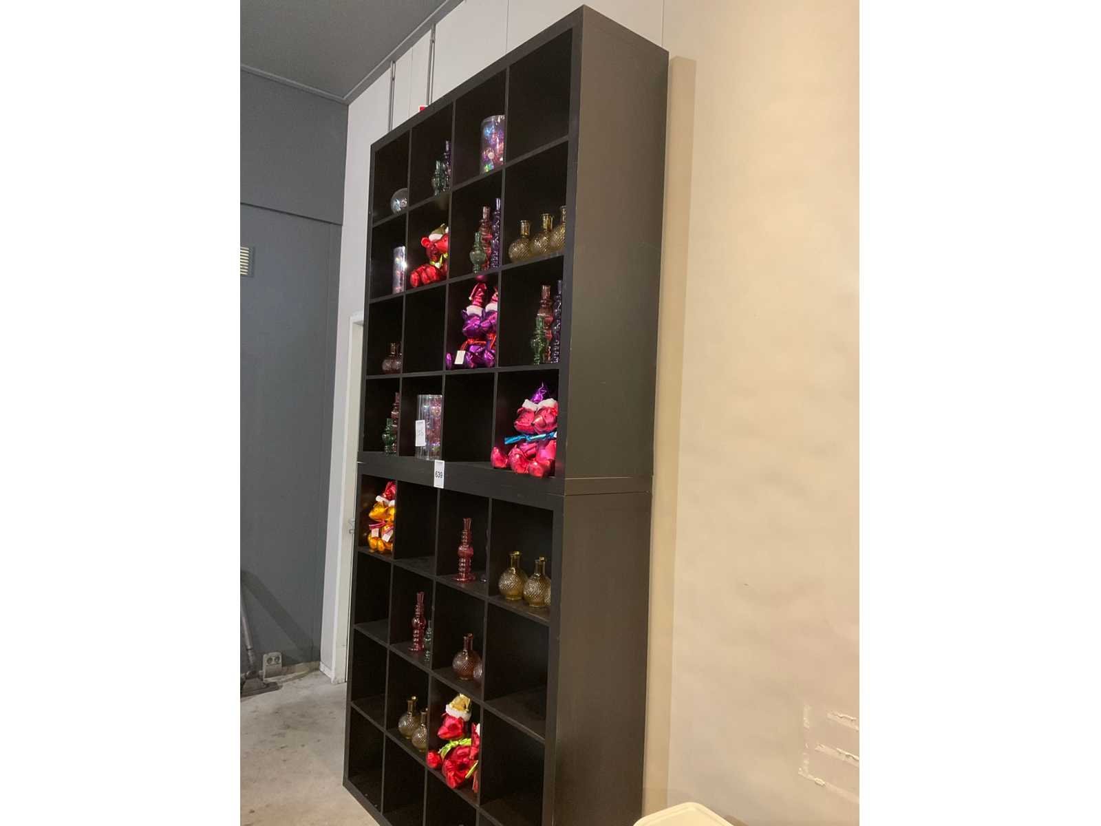 Op elkaar geplaatste 16 vaks kast De inhoud is niet inbegrepen. Lengte: 150cm Breedte: 40cm Hoogte: 150cm