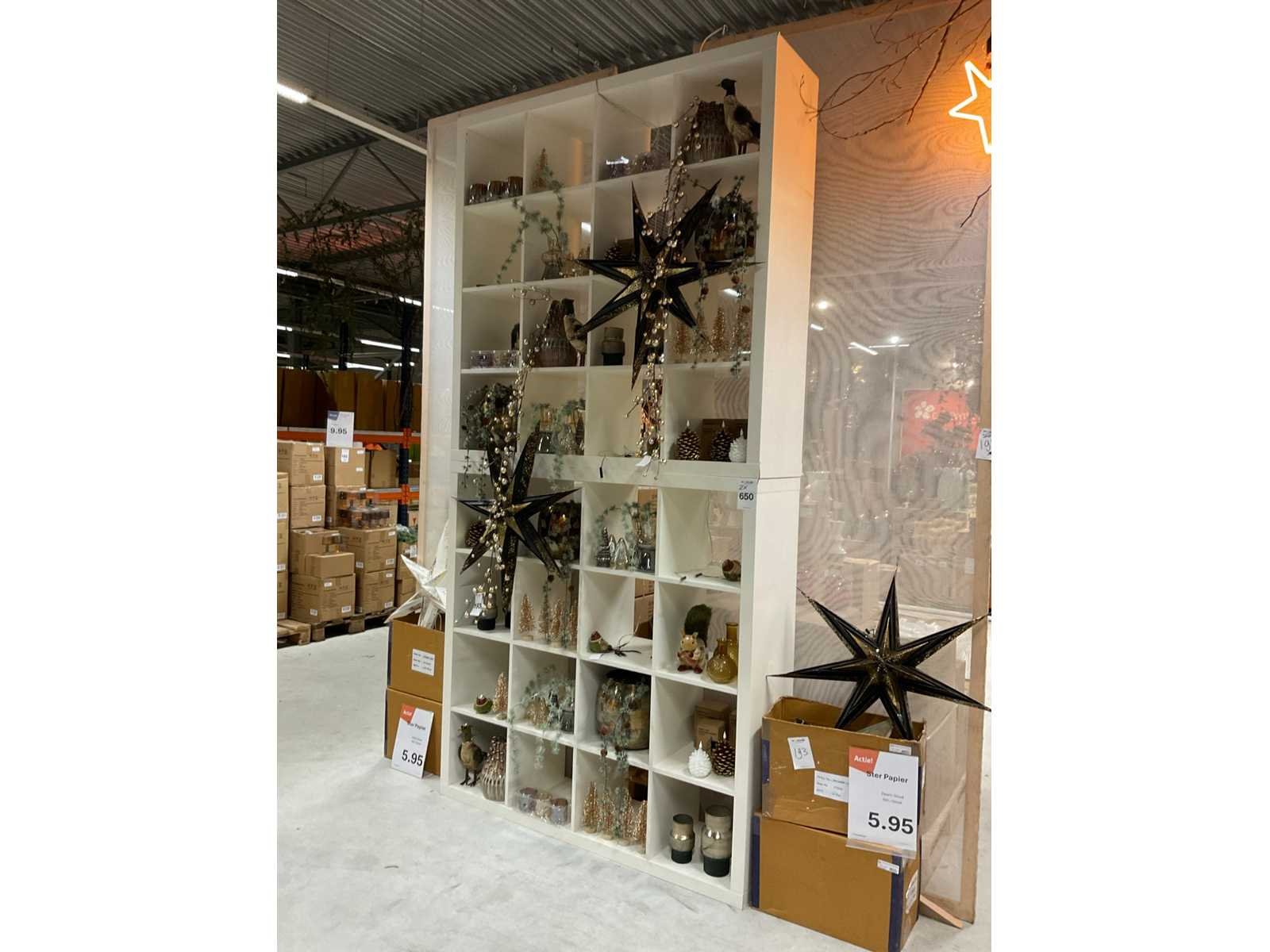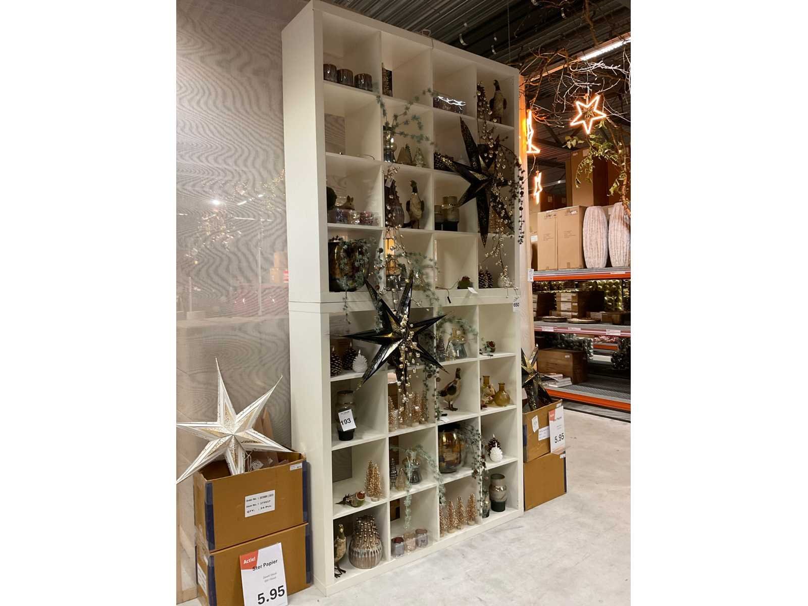 Op elkaar geplaatste 16 vakken kast De inhoud is niet inbegrepen. Lengte: 150cm Breedte: 40cm Hoogte: 150cm