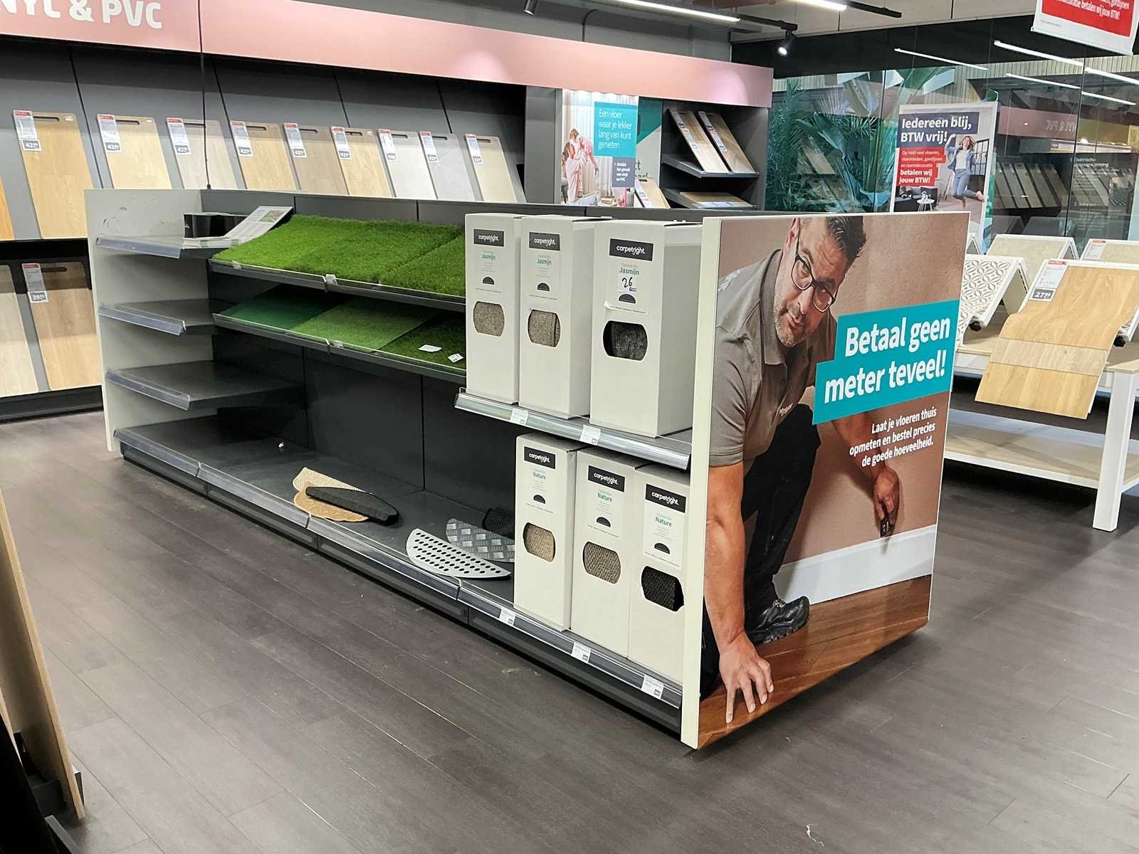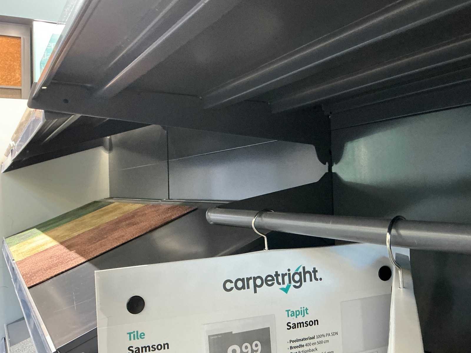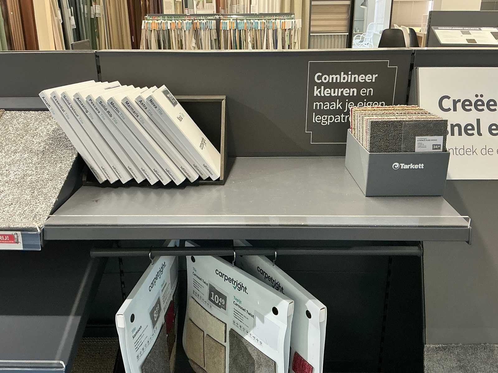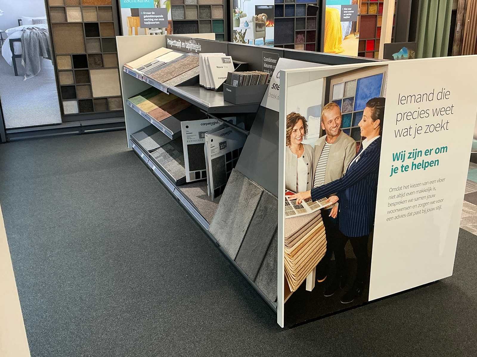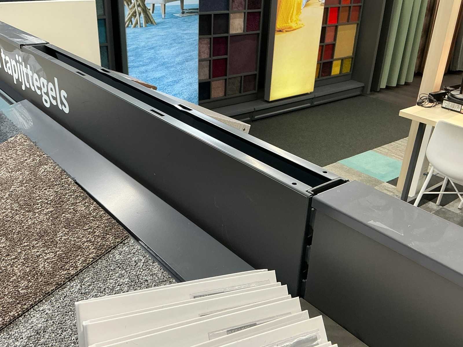 Exclusief stofsamples en boeken Inclusief inhoud. Totale afmeting L: 4100mm Totale afmeting Breedte: 1250mm Totale afmeting Hoogte: 1430mm