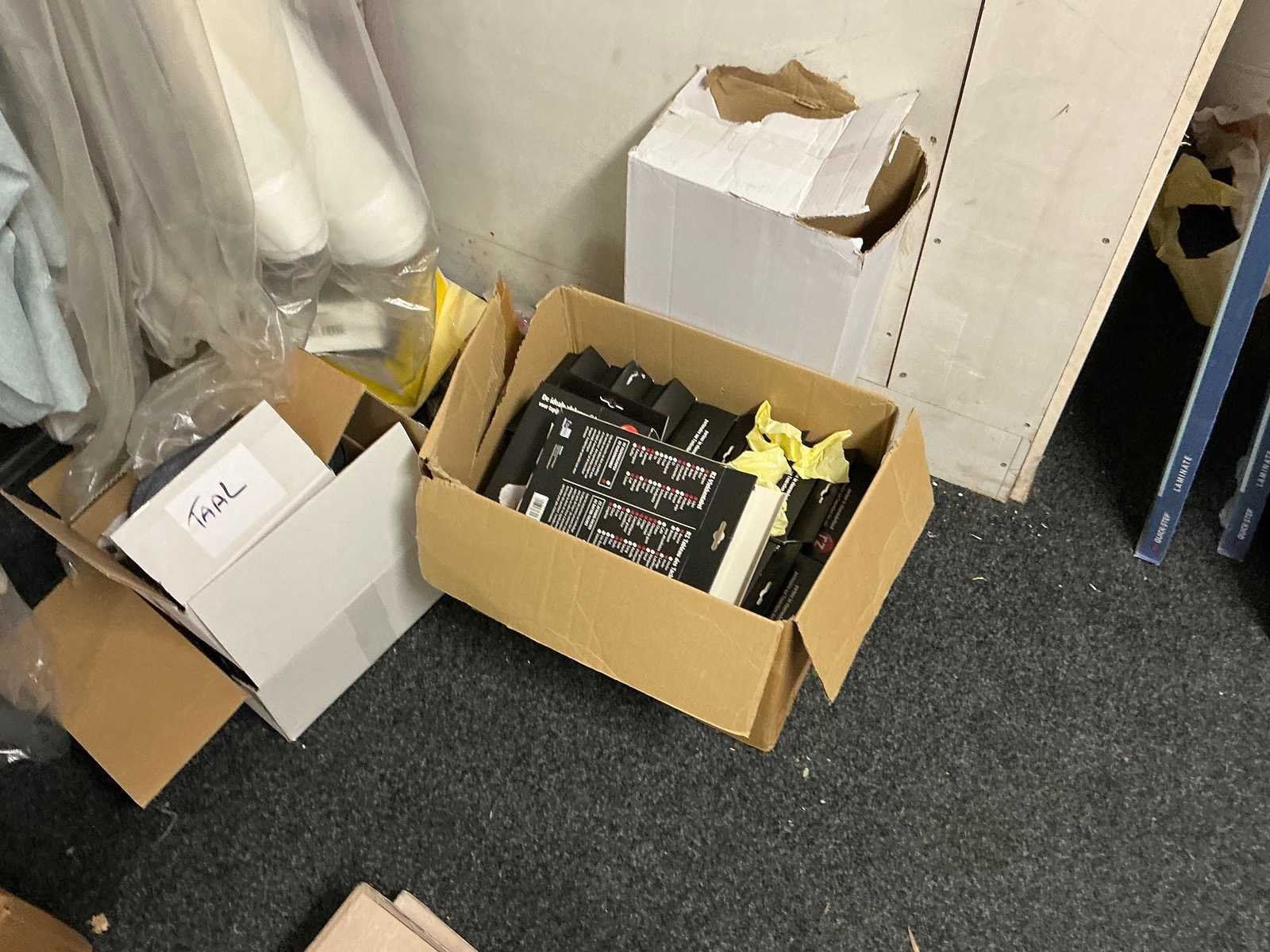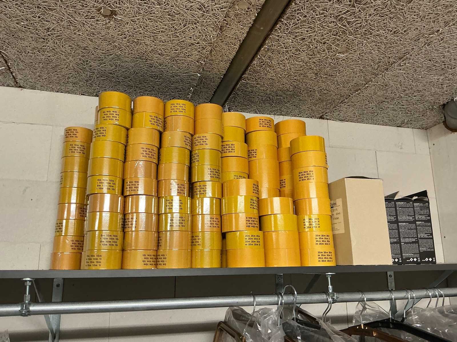 Exclusief kluis, de voorraad op de pallets, administratie, Gordijnen