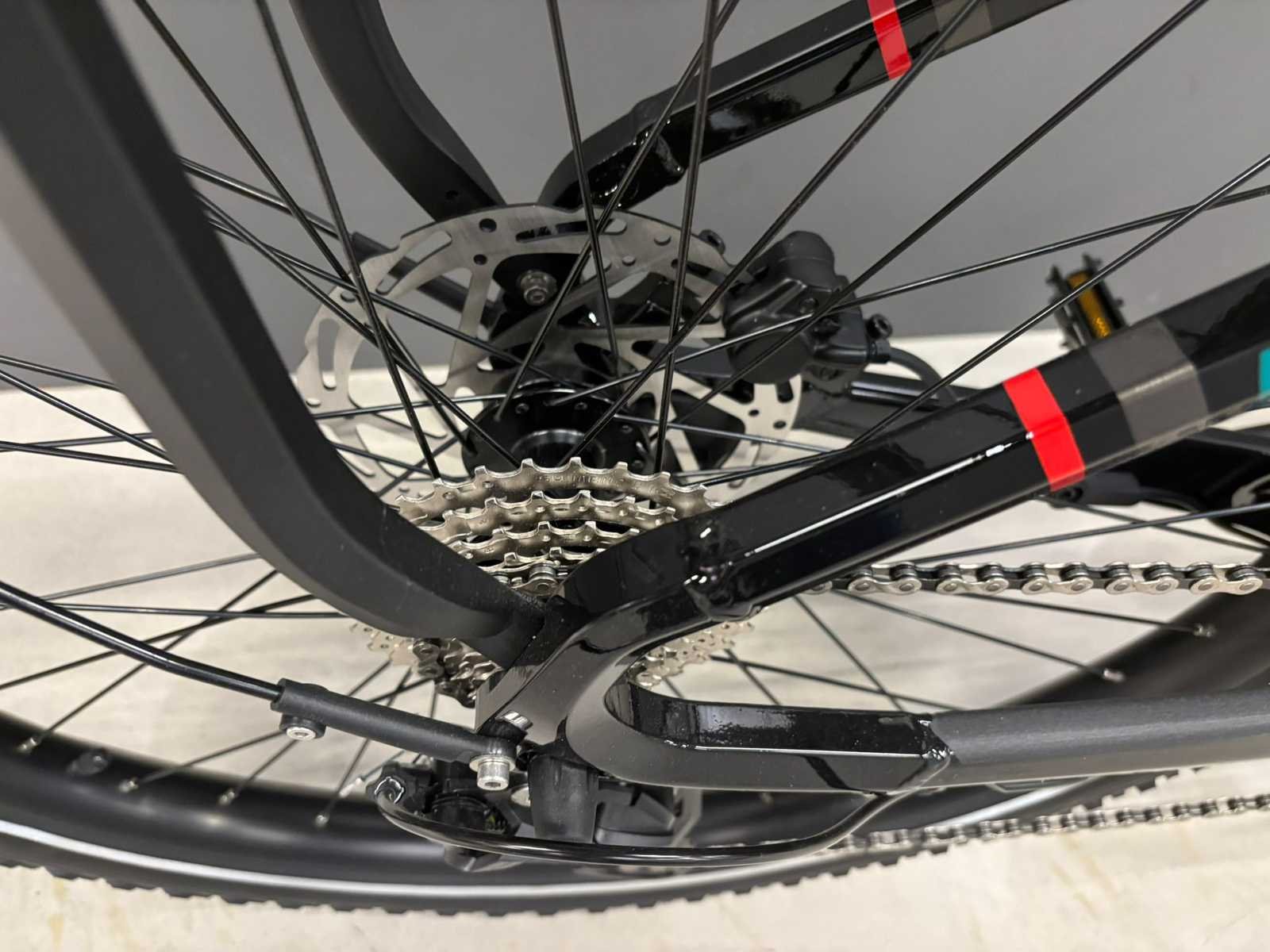 Accu: 48v 720wh uitneembare accu (48 V × 15 Ah); Wielmaat: 27,5 inch; Voorvork: SR Suntour XCM32 Boost 80mm; Verlichting: Spanninga Led; Motor: Middenmotor (iGO Drive RS) met tot 130 Nm; Frame: Aluminium hardtail-frame met interne kabelgeleiding; Voorvork: Verende voorvork met circa 80 mm veerweg; Banden: 27.5” × 2.4” Schwalbe Hurricane banden; Versnellingen: Shimano Deore 9-versnellingen; Accessoires: Verlichting, bagagedrager en spatborden. Ongebruikt in doos Merk: Igo Model: Outland Cabot RS Motorpositie: Midden Ananda 130nm Oplader getest: Nee Accu getest: Nee Remsysteem: Tektro Discbrakes hydraulische schijfremmen Voorvering: true Versnellingen: 9 Framemaat: 55